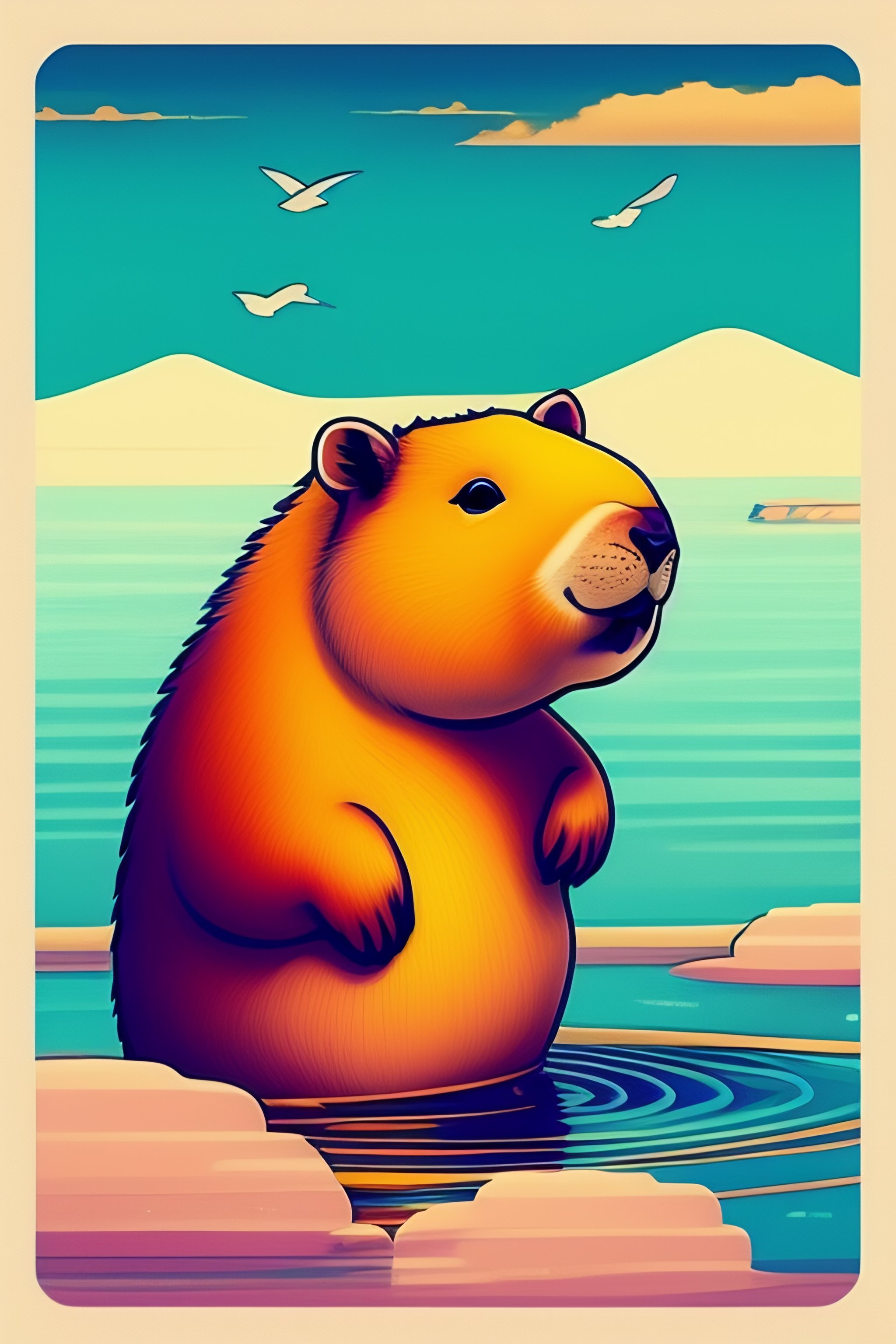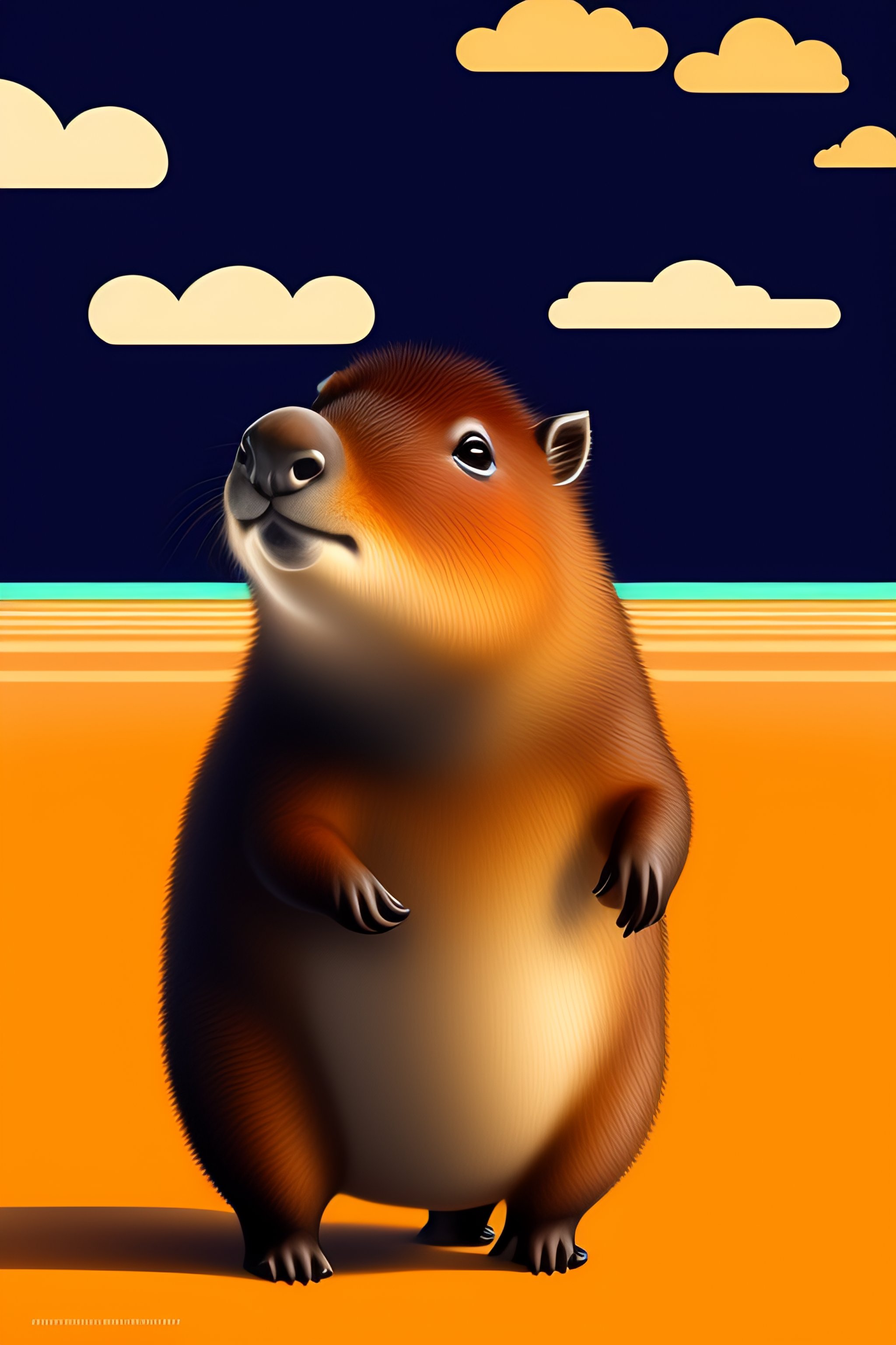 Capybara in japan waving goodbye drawn in the style of anime