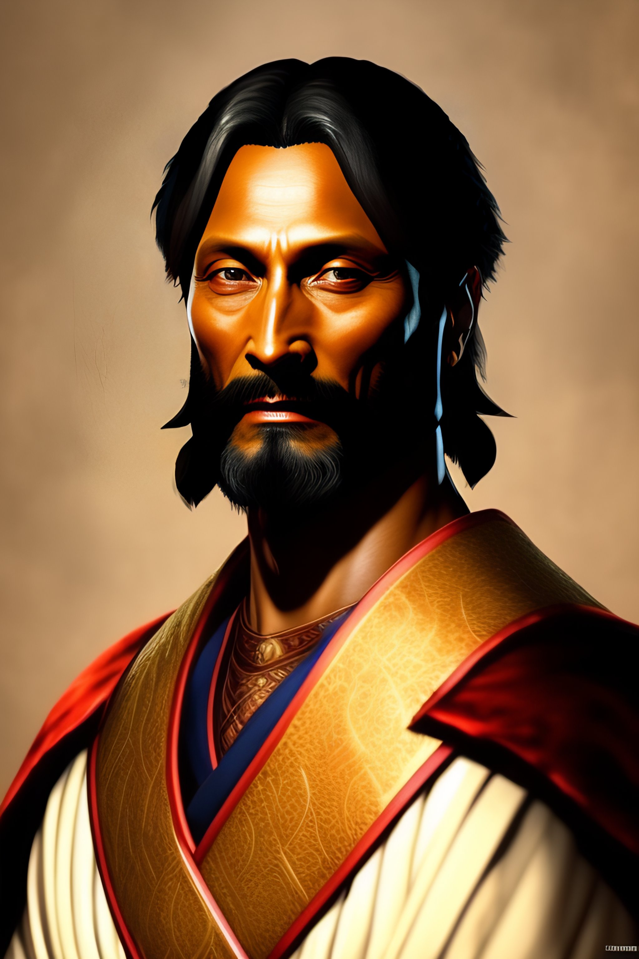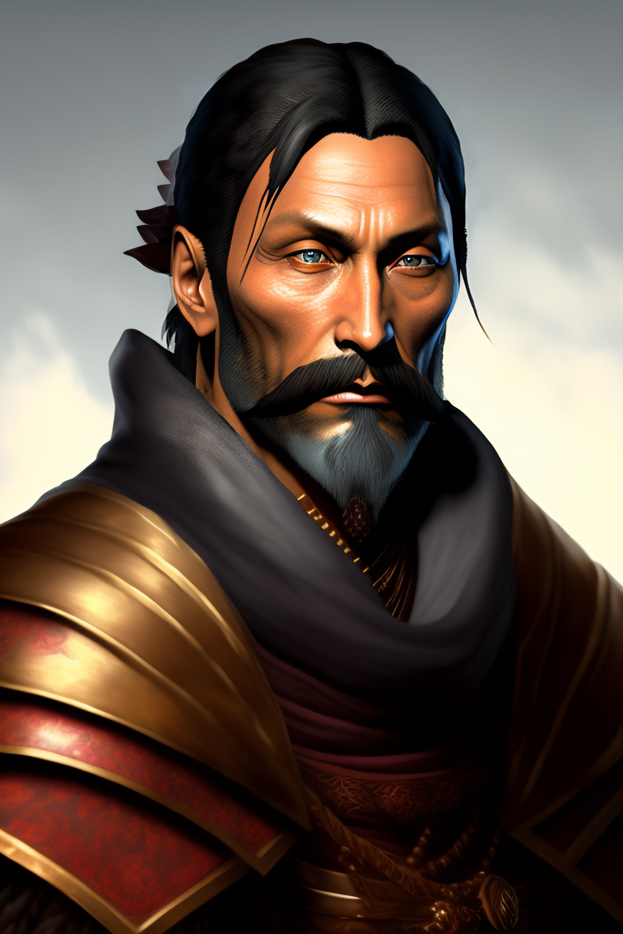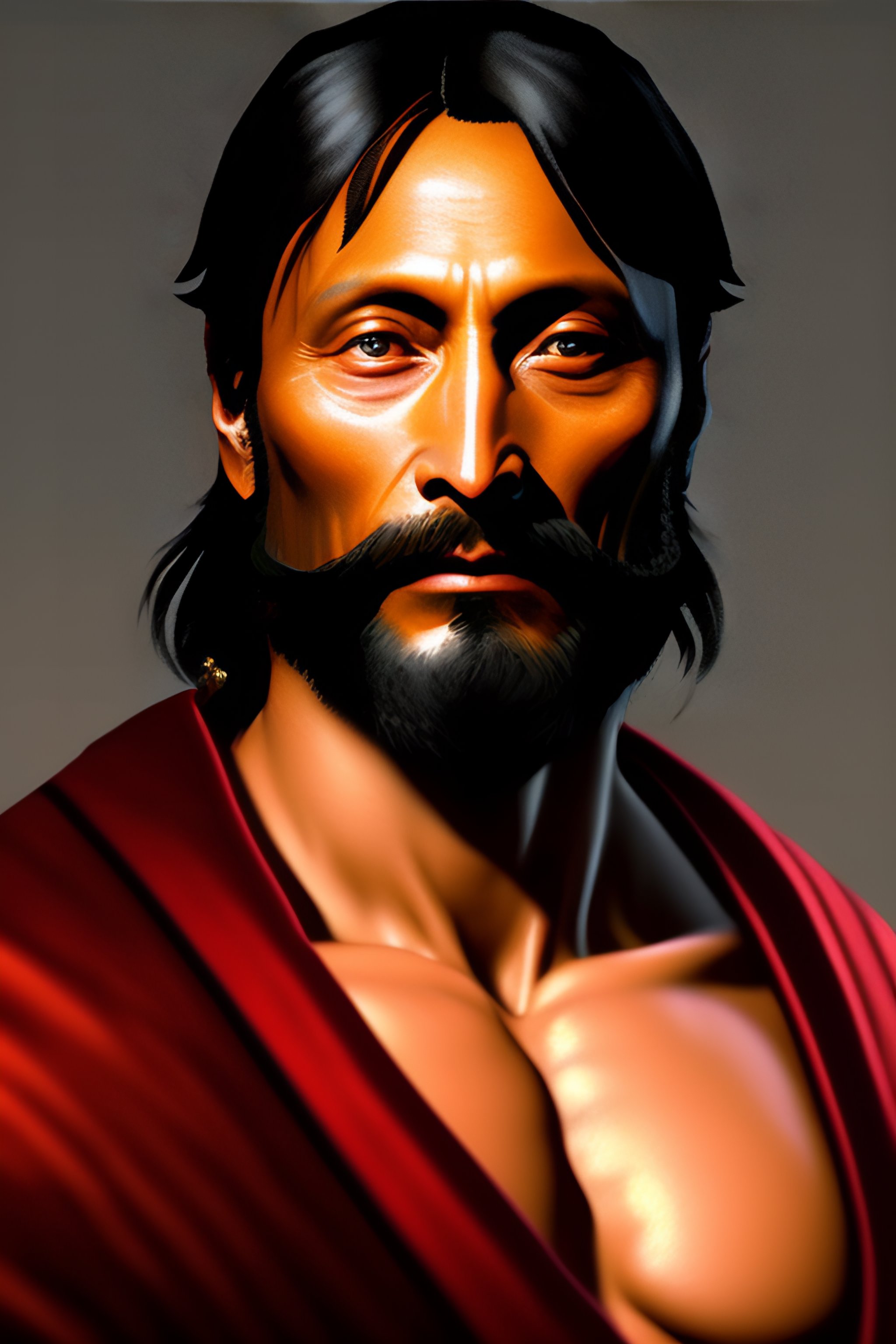 Mads mikkelsen as a kensai in the style of a baldurs gate character portrait