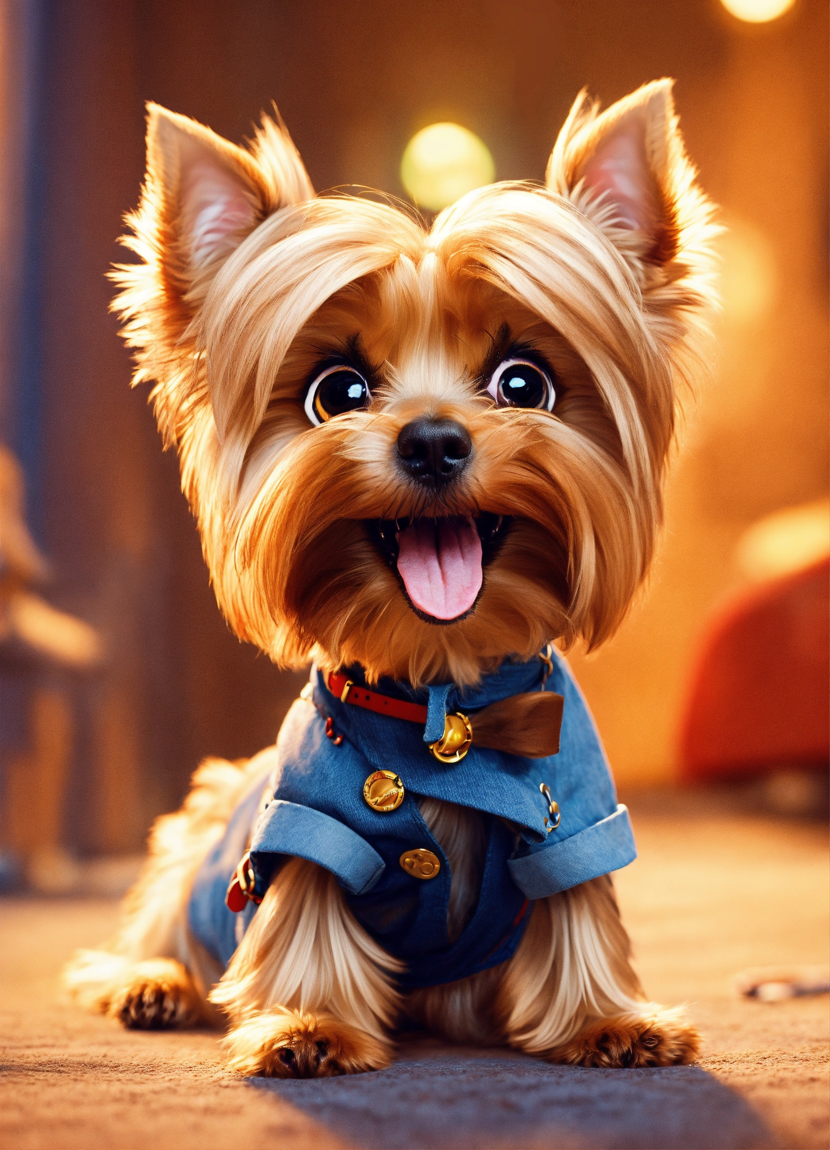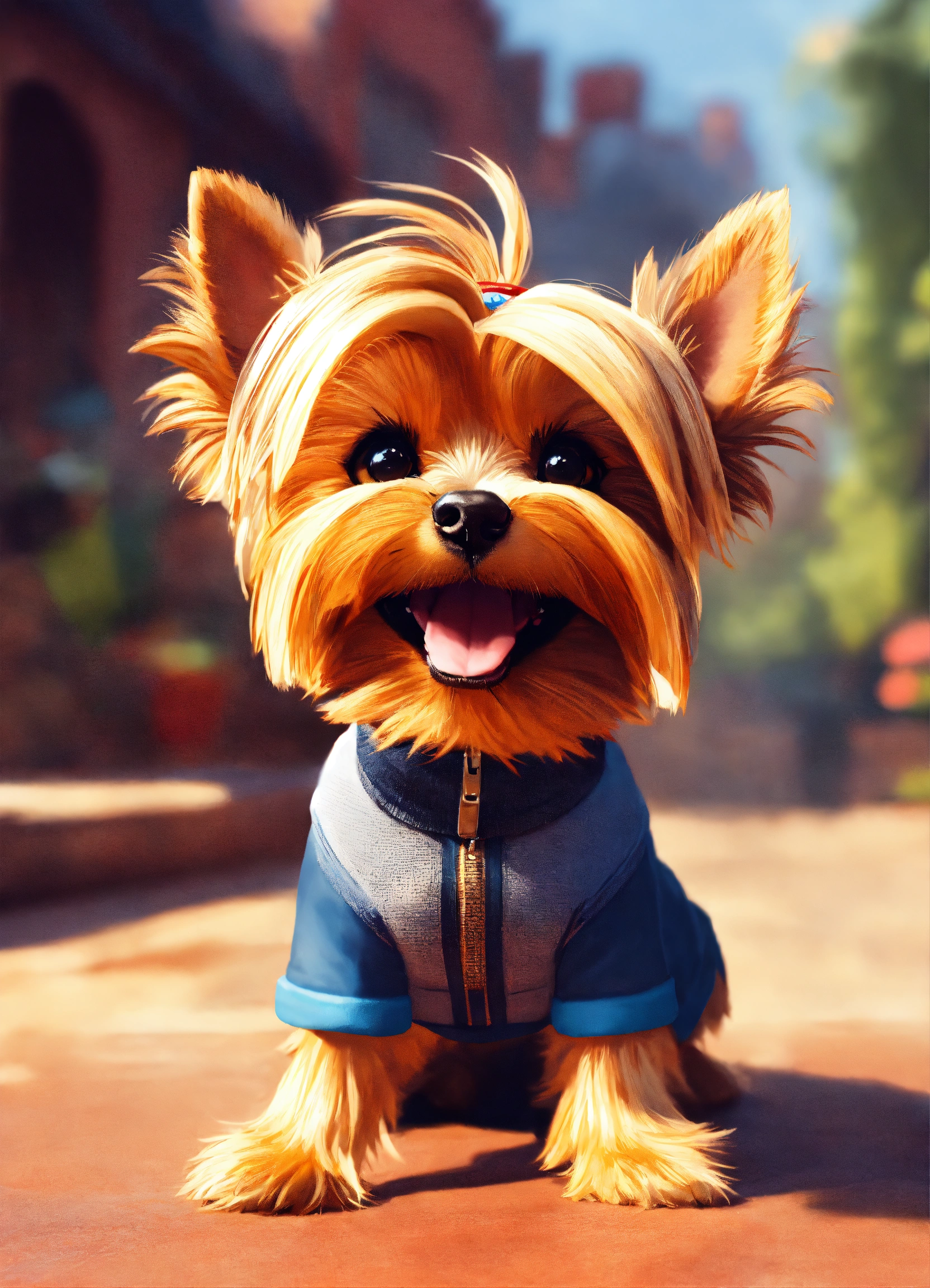 Happy yorkshire terrier dog in pixar disney style