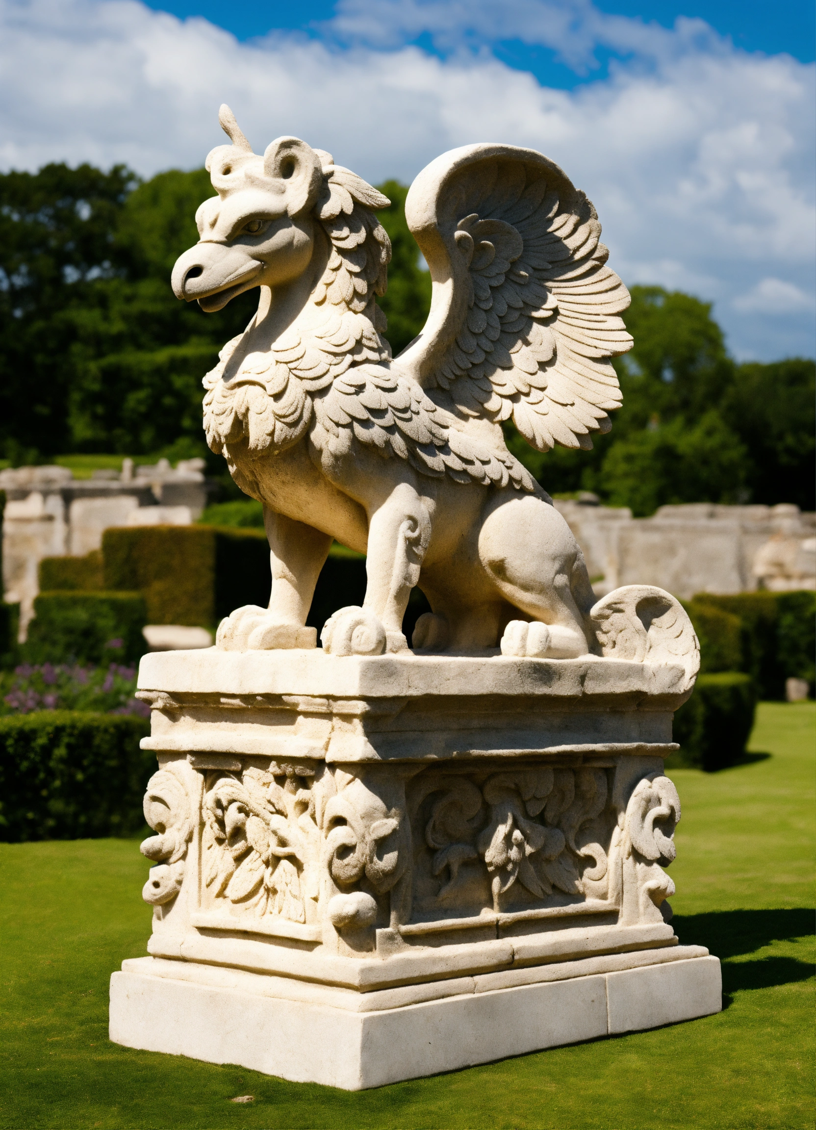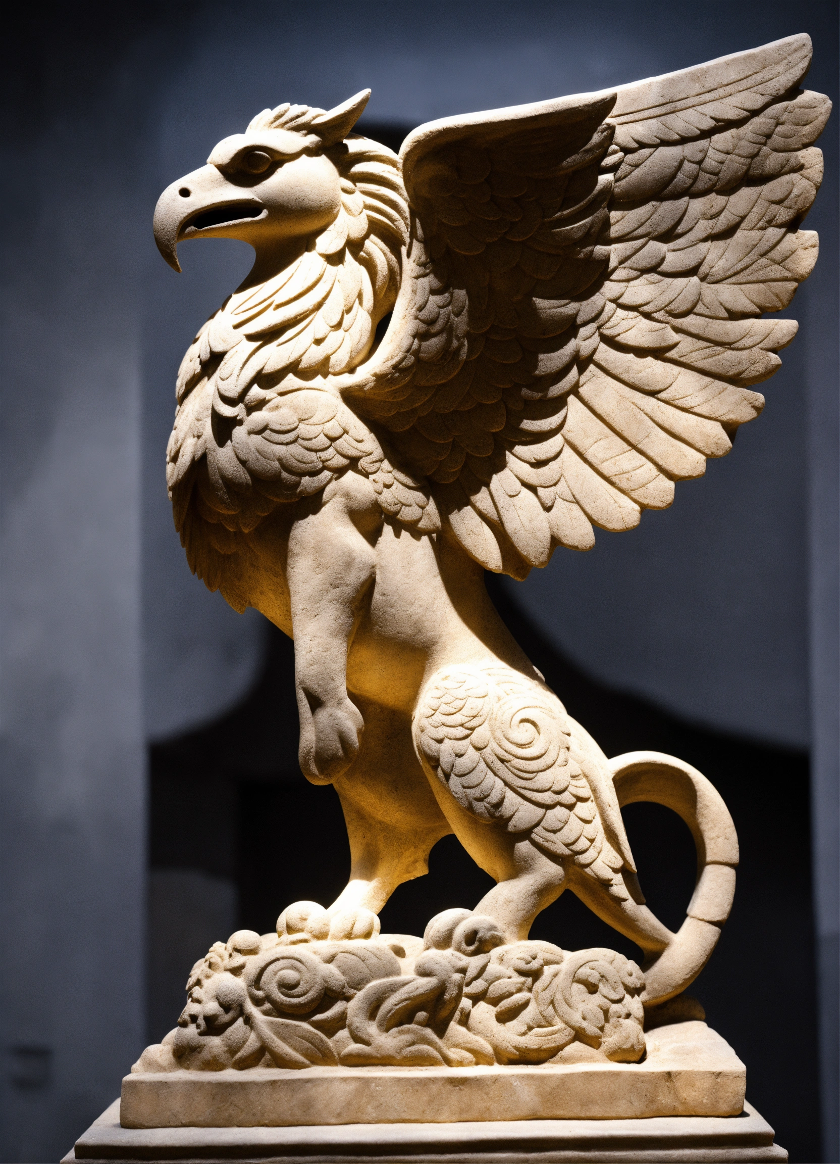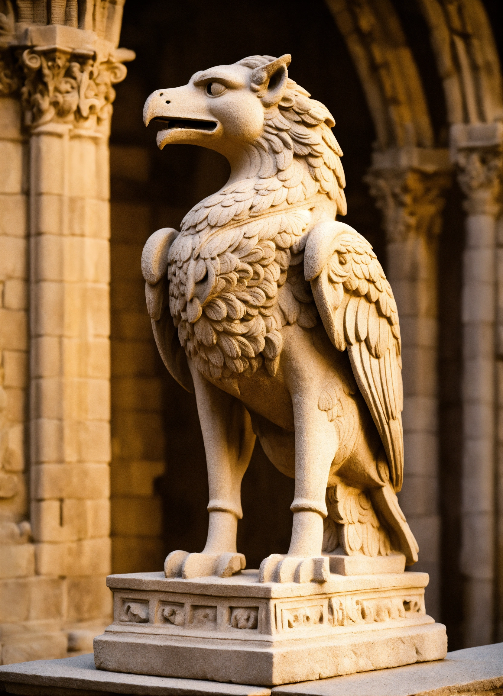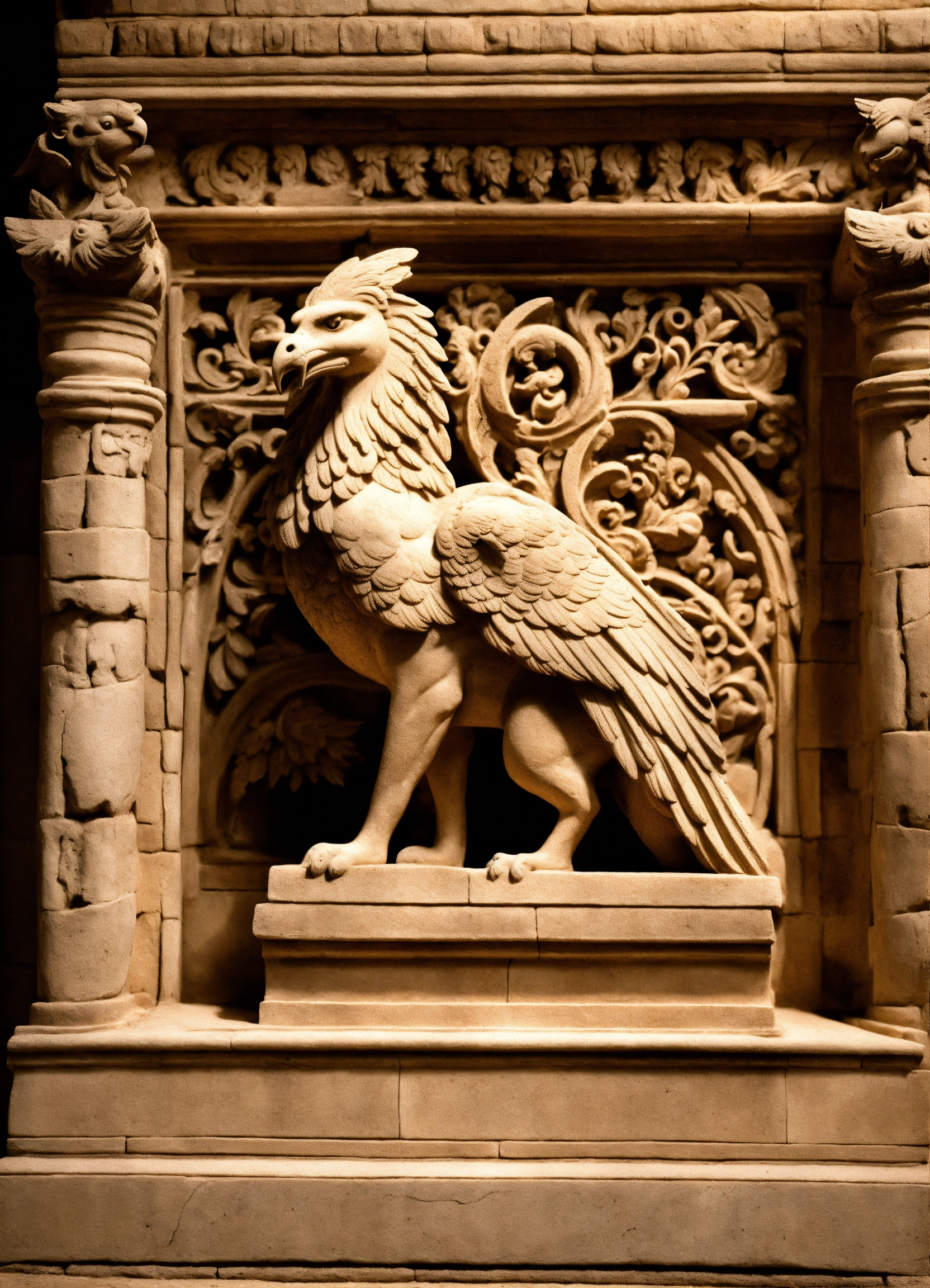 Stone sculpture of a romanesque griffin
