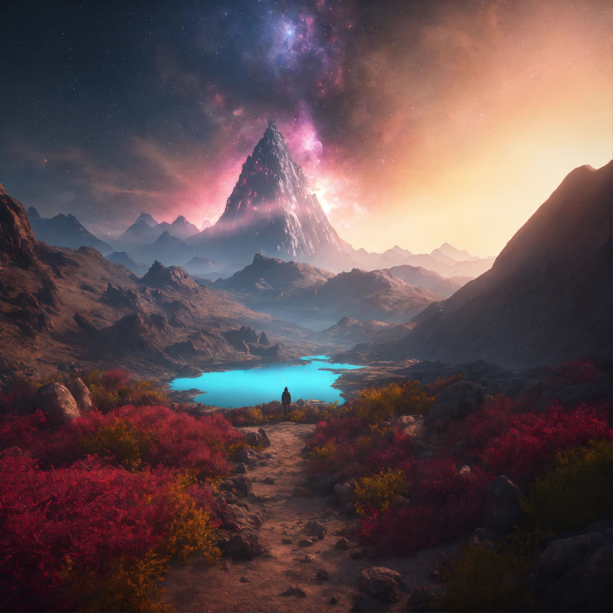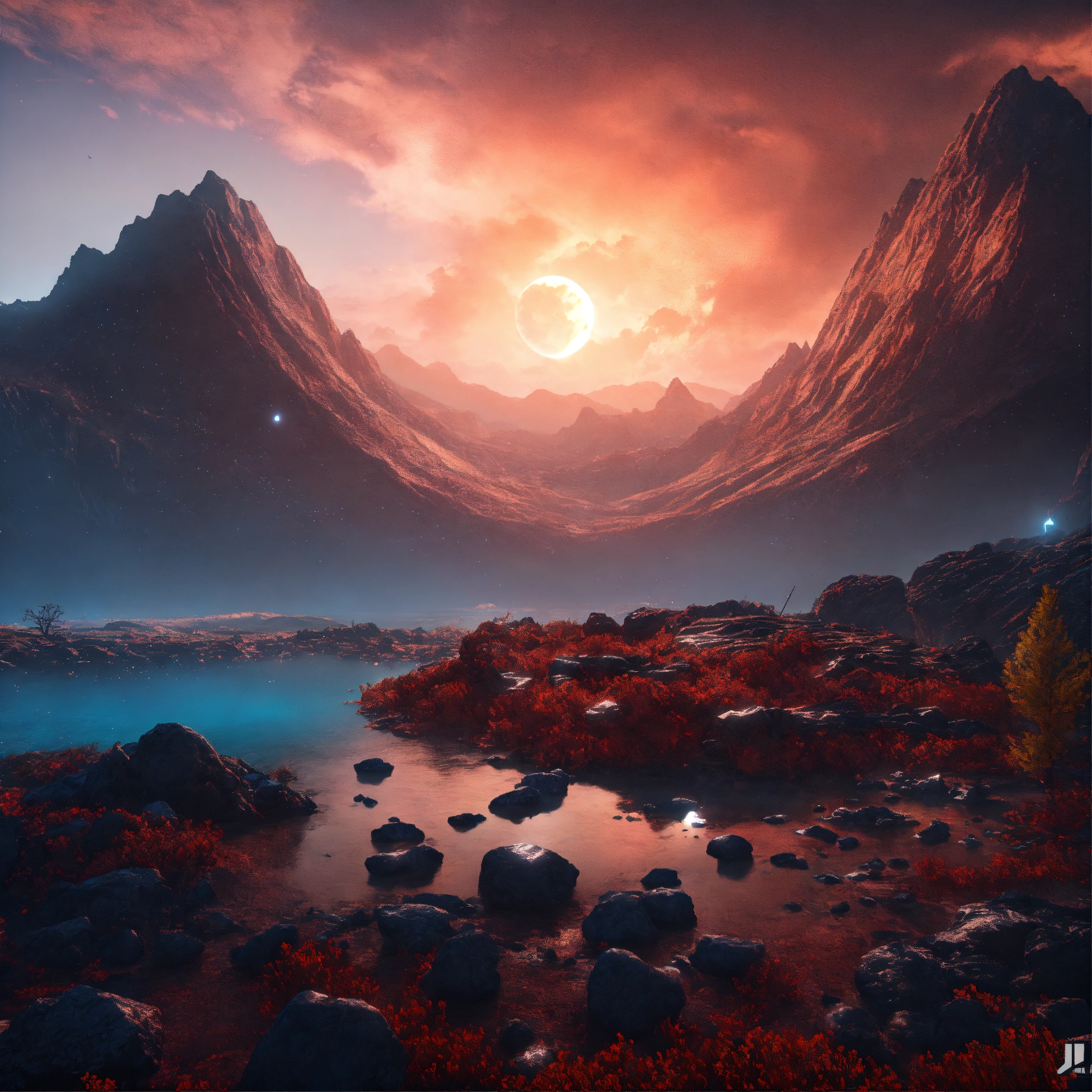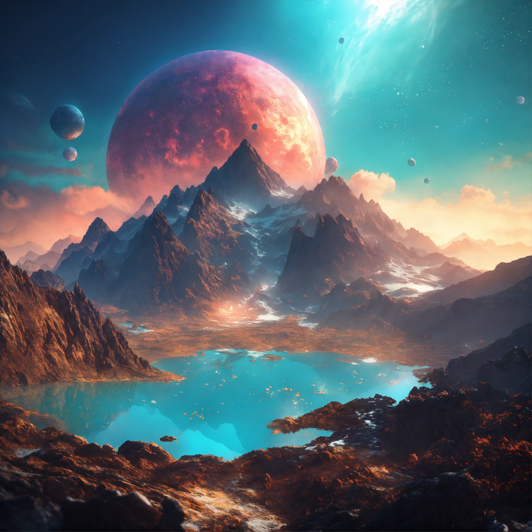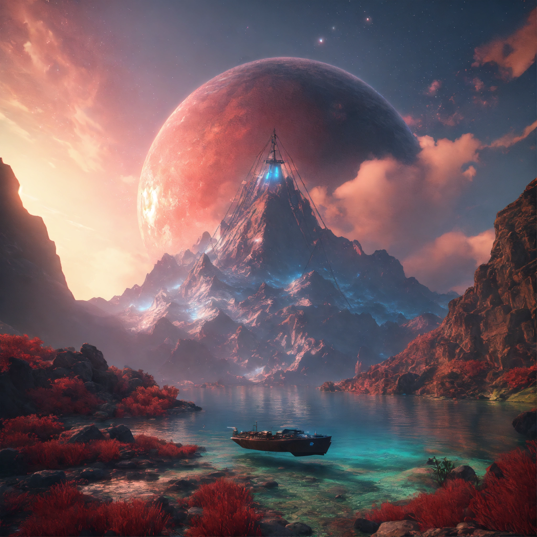 Being reincarnated into a sea world, sky nebula, artstation scifi 3d scene of a showing mountains, maximalism, ambient occlusion, atmospheric haze, unreal engine, hyper realism, realistic shading, cinematic composition, realistic render, octane render, detailed textures, photorealistic, wide shot