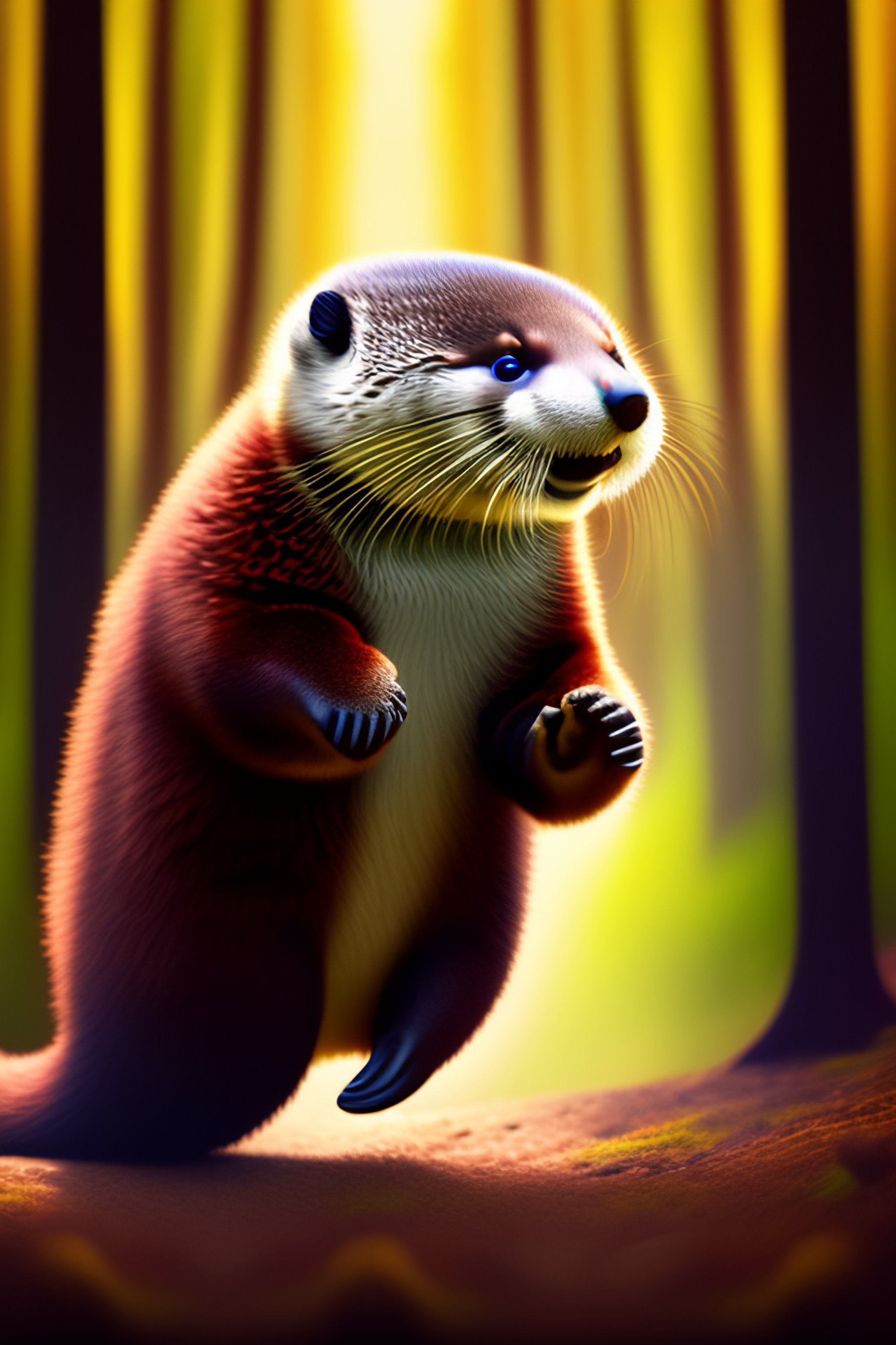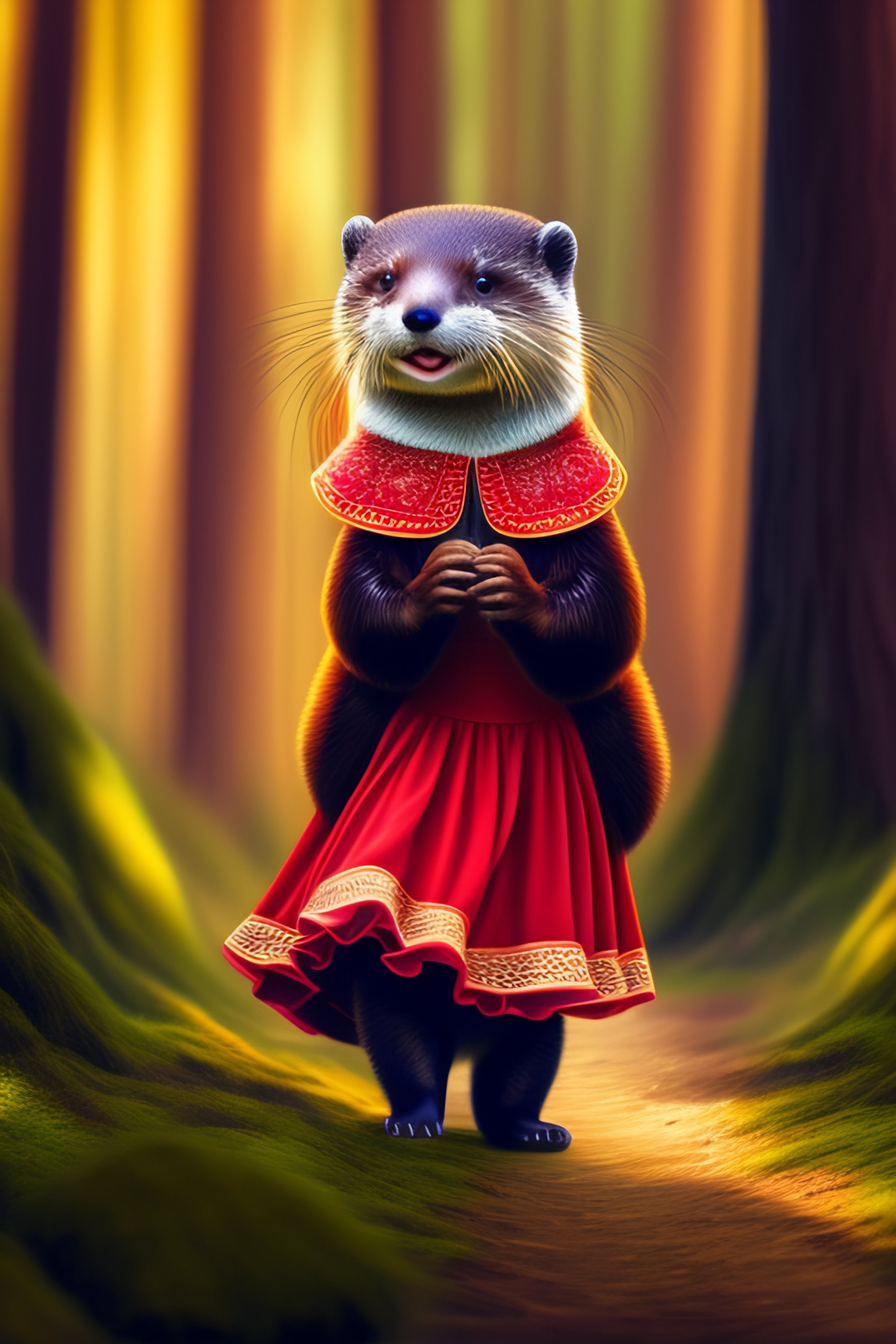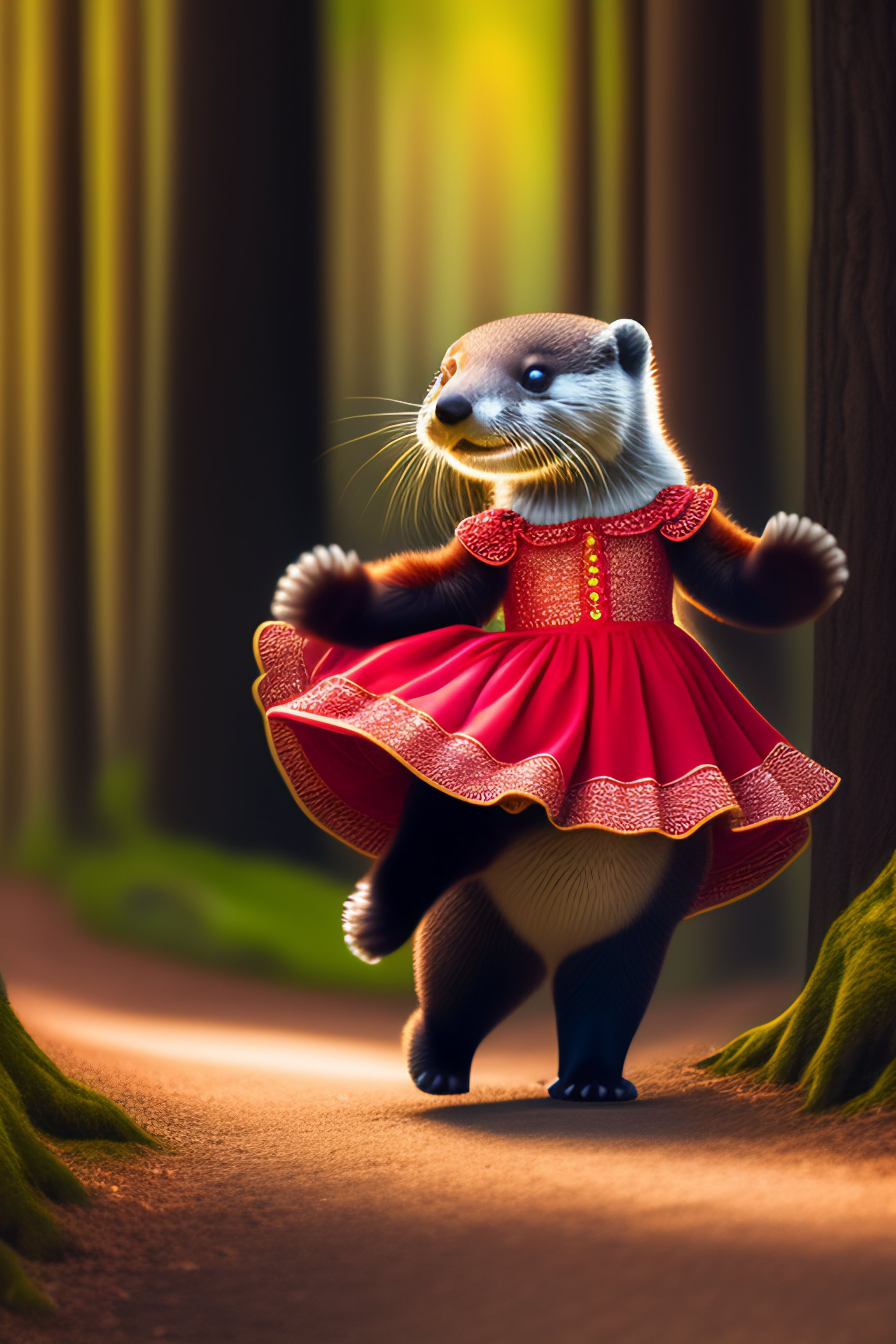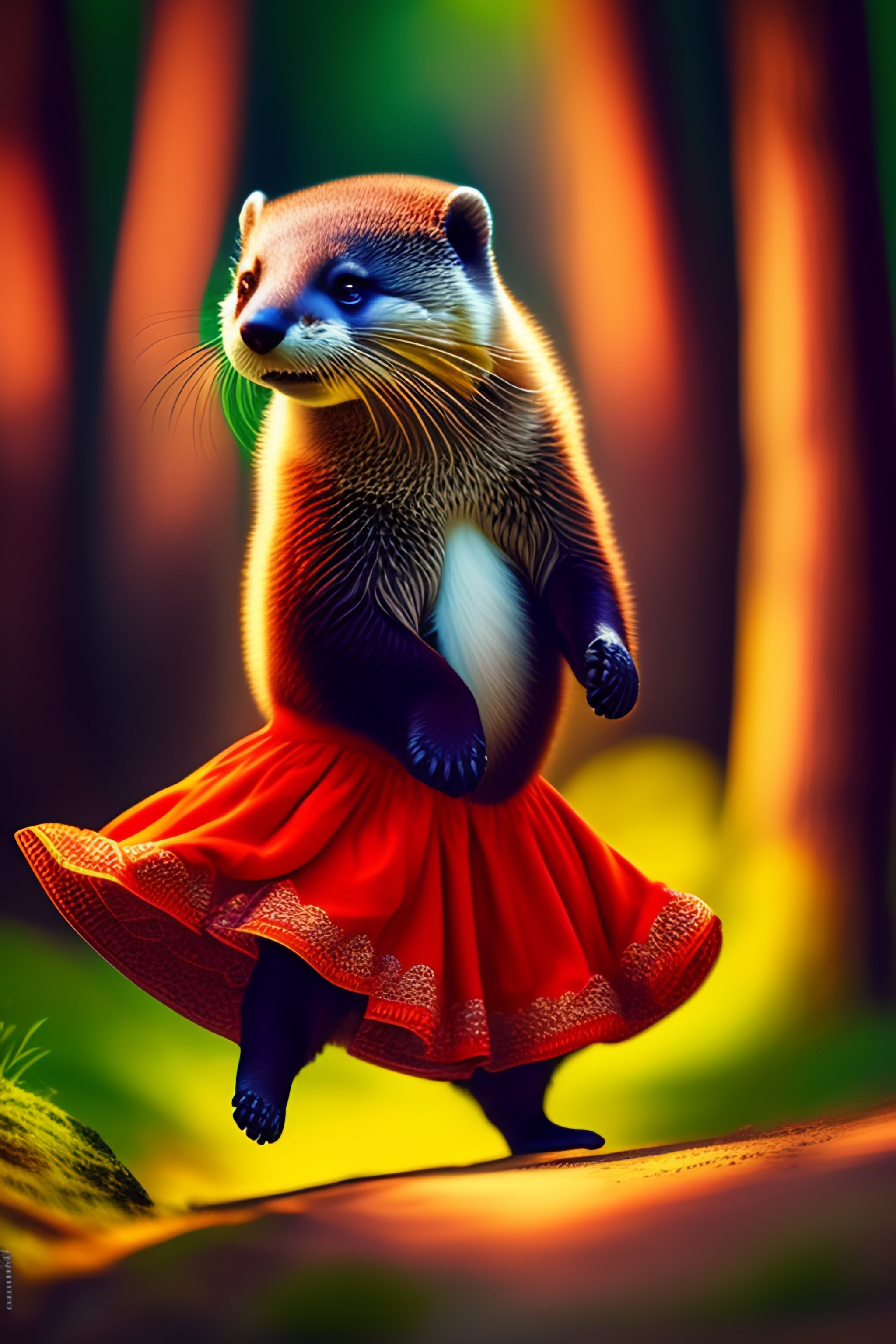 A cute fluffy otter dancing while wearing typical spanish flamenco dress in the middle of a forest, digital art, dancing, spanish, flamenco, beautiful colour palette, by craig mullin, seville, jerez, spain, andalusia