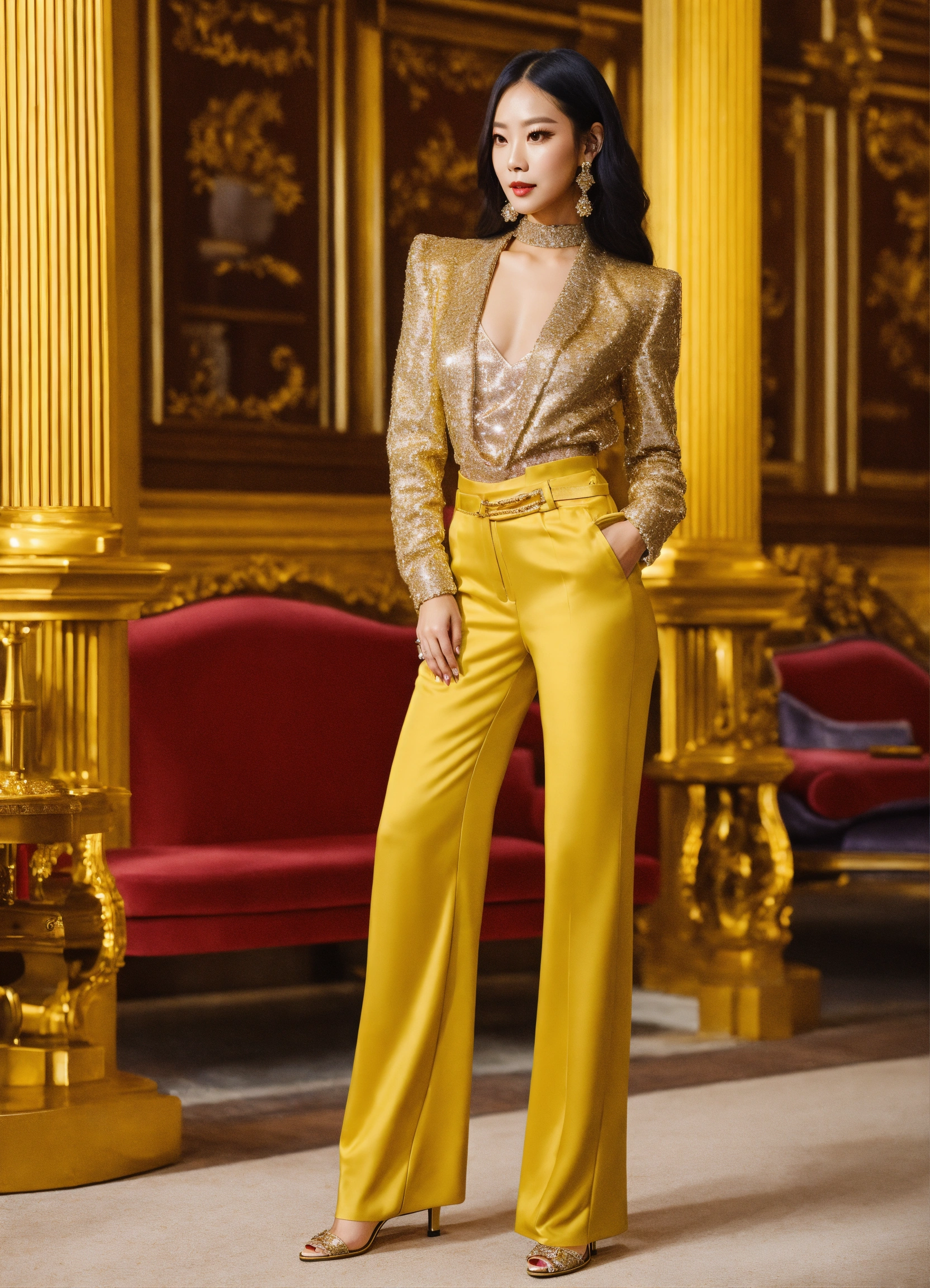 Jiu sparkly fashionable neoclassical outfit with pants and high heels
