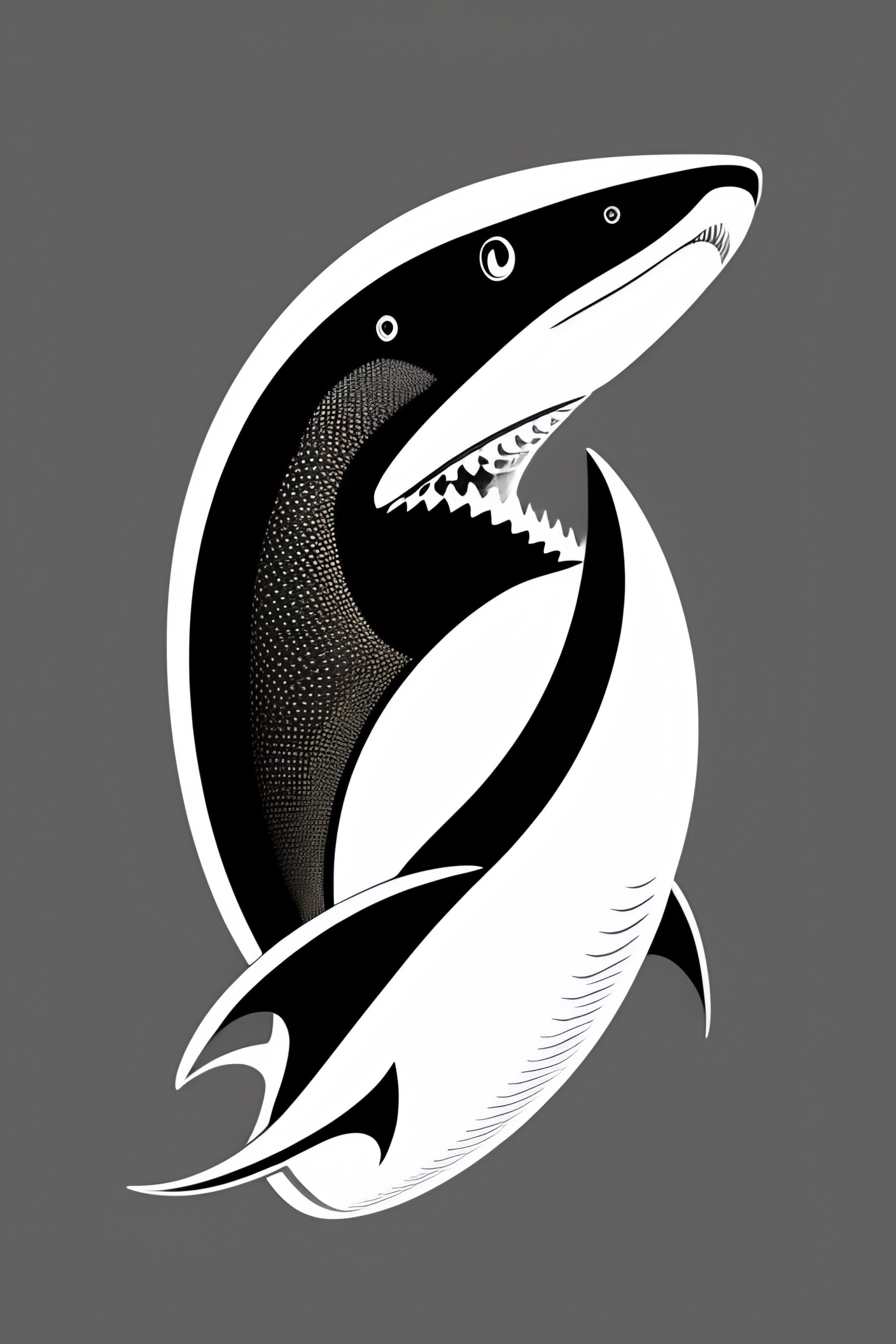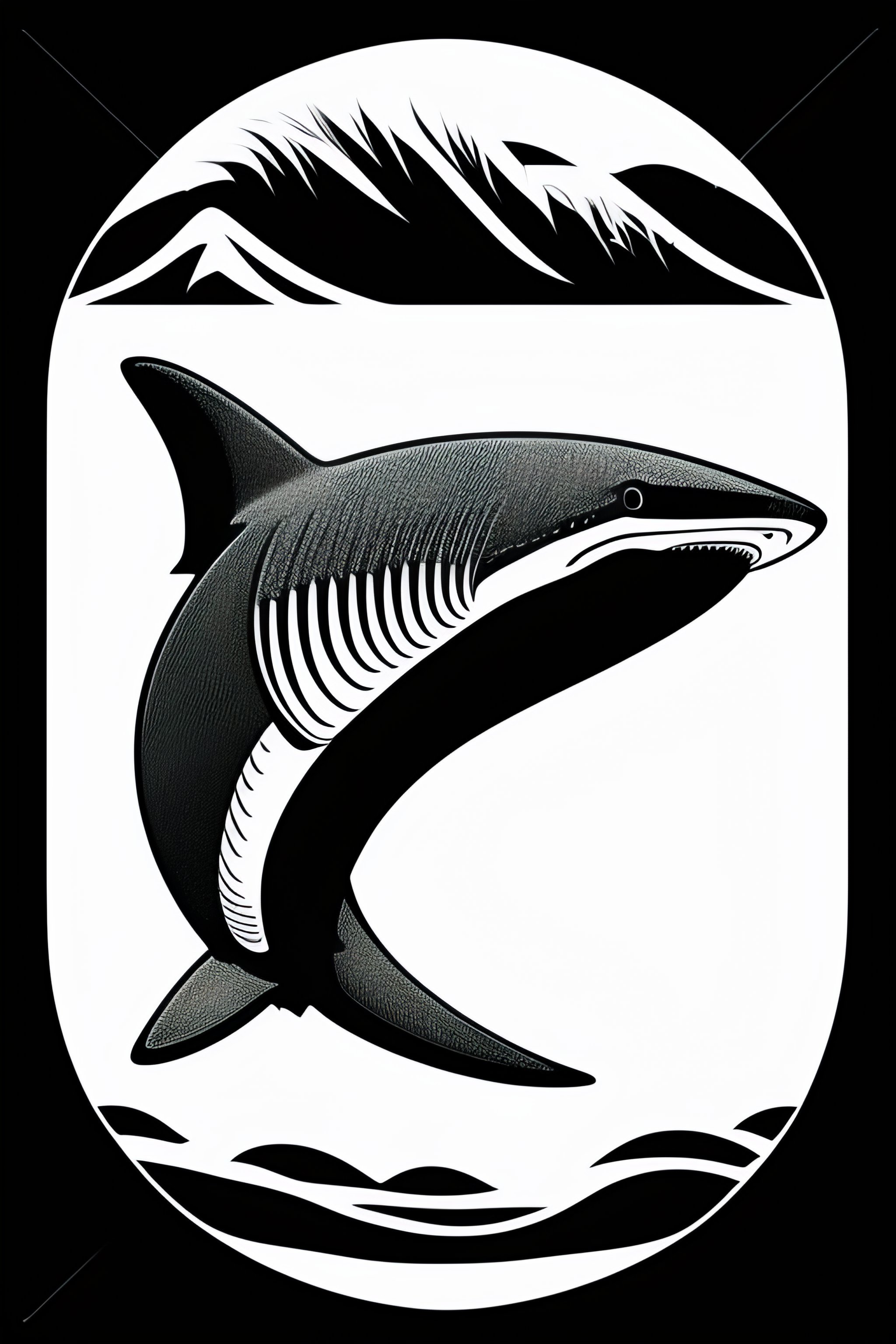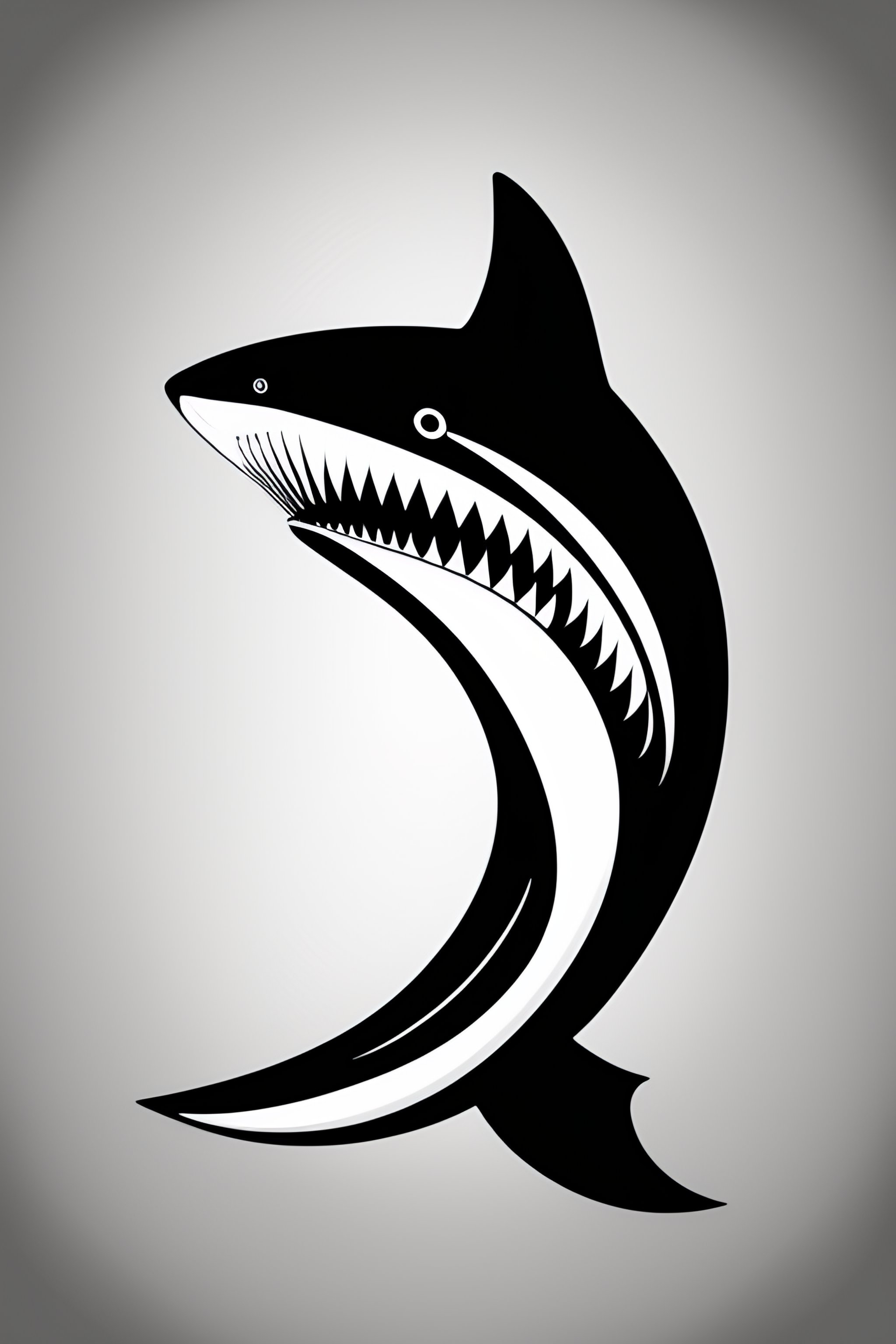 Shark's head, vector illustration, unusual, black and white, silent, clear thick line, outline art, centered image, isolated on white background -v 4