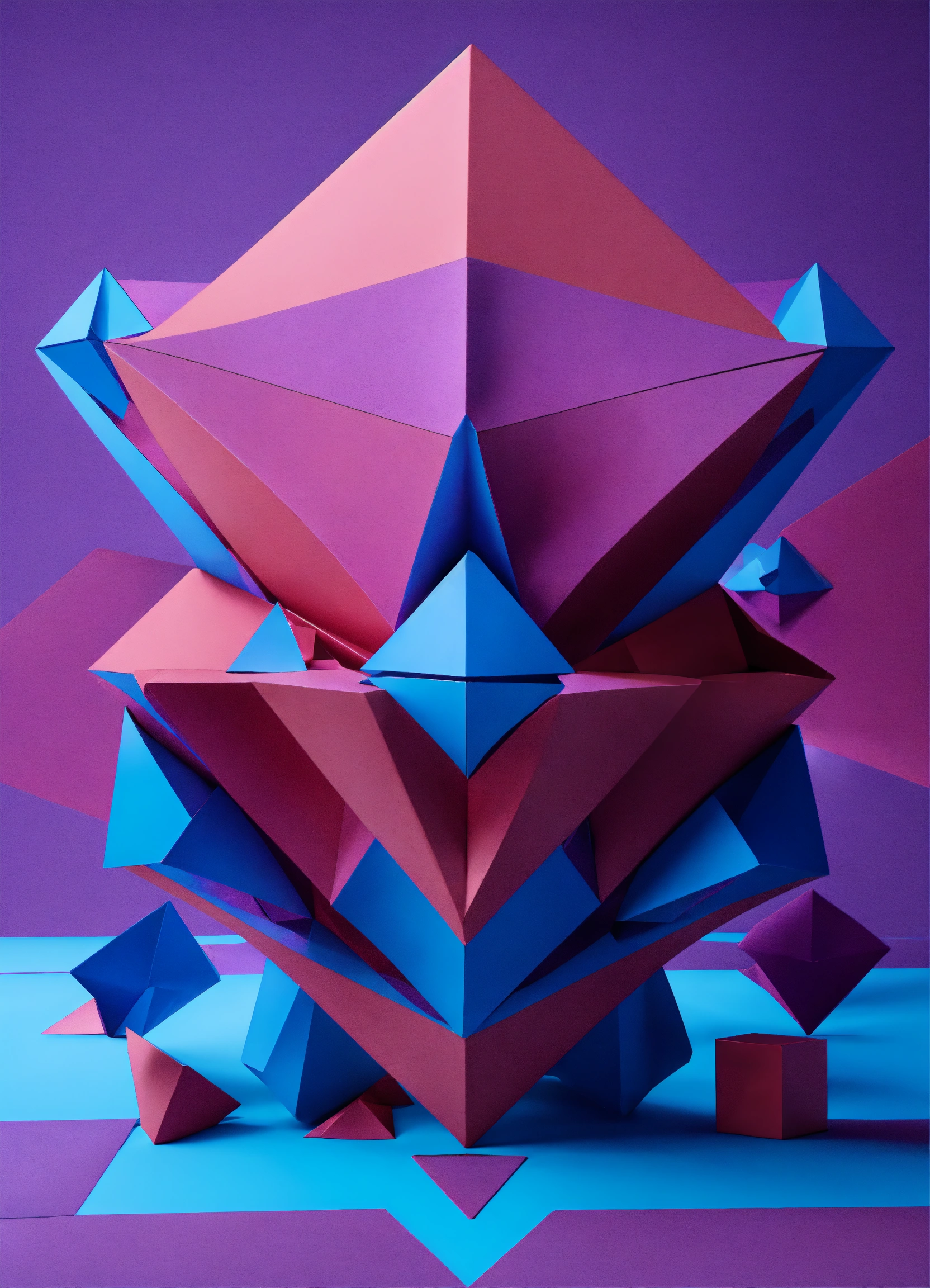 Purple and blue 3d abstract geometric pattern center figure origami 3d