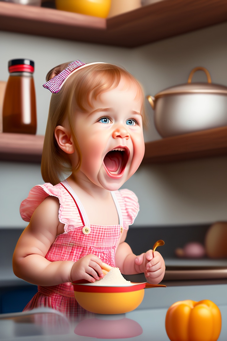 Johnny, johnny yes, papa? eating sugar? no, papa! telling lies? no, papa! open your mouth. ha, ha, ha! give image of cute girl standing in the kitchen with sugar box