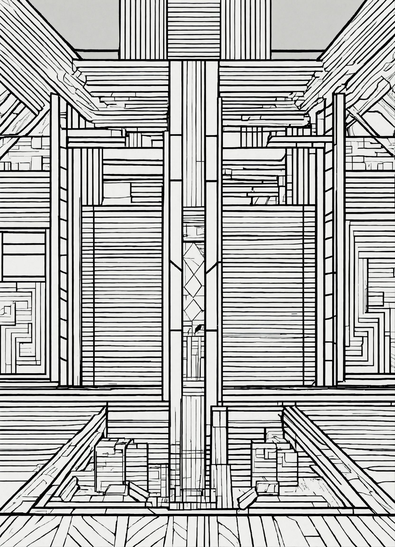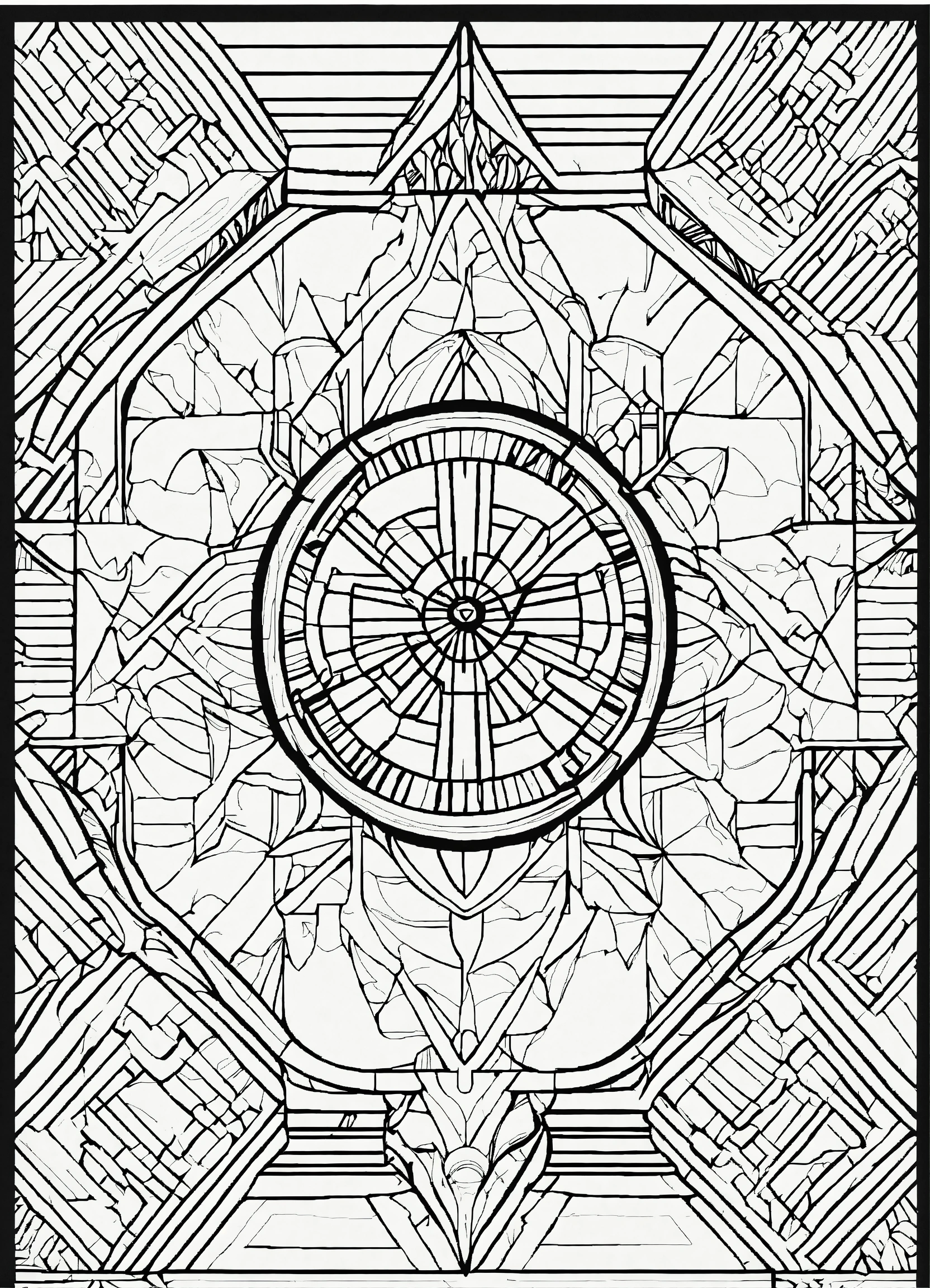 Coloring page for adults, bold lines, dark lines, geometric pattern, idiotman, geometric pattern, white background, clean line art, fine line art