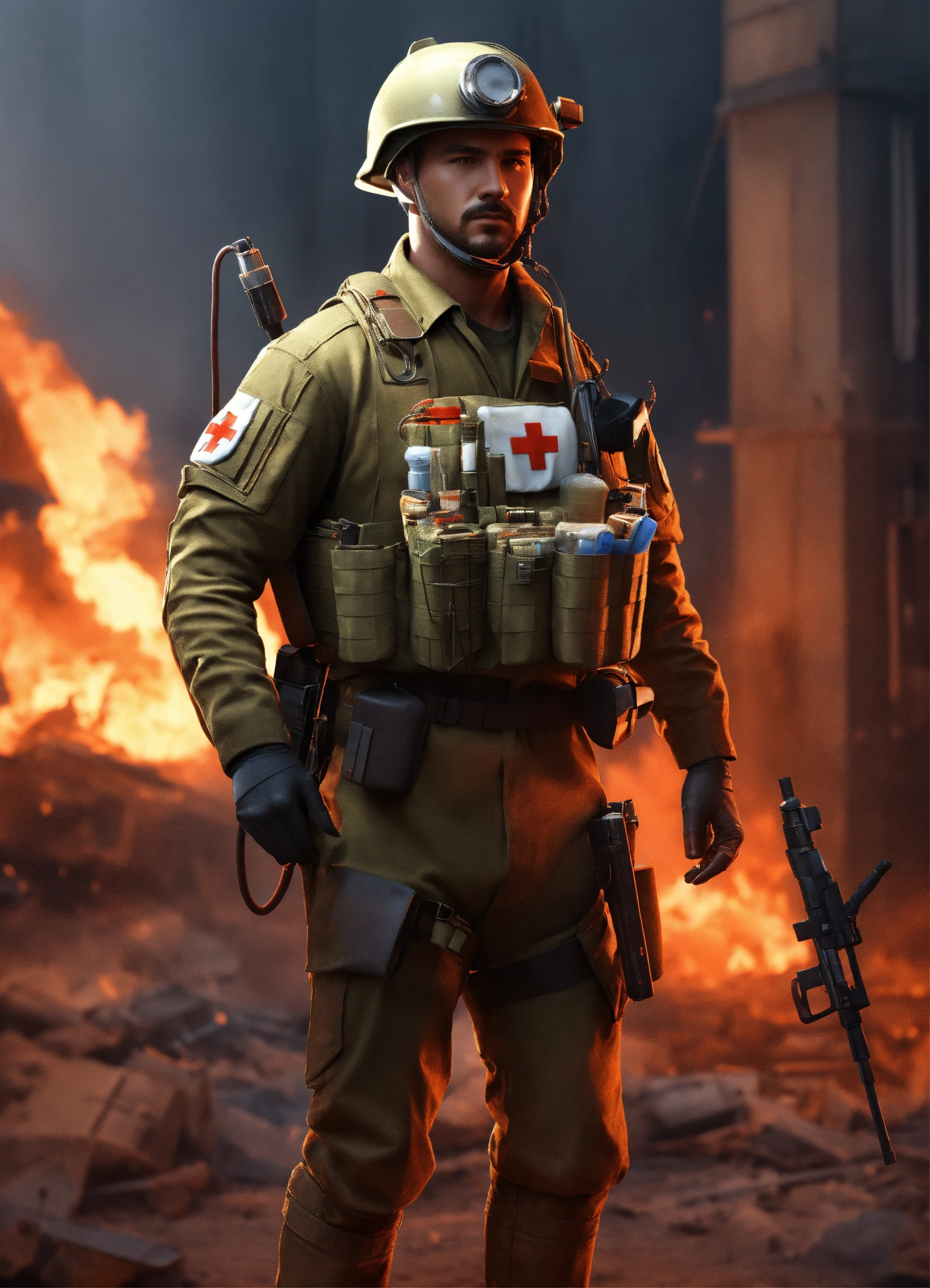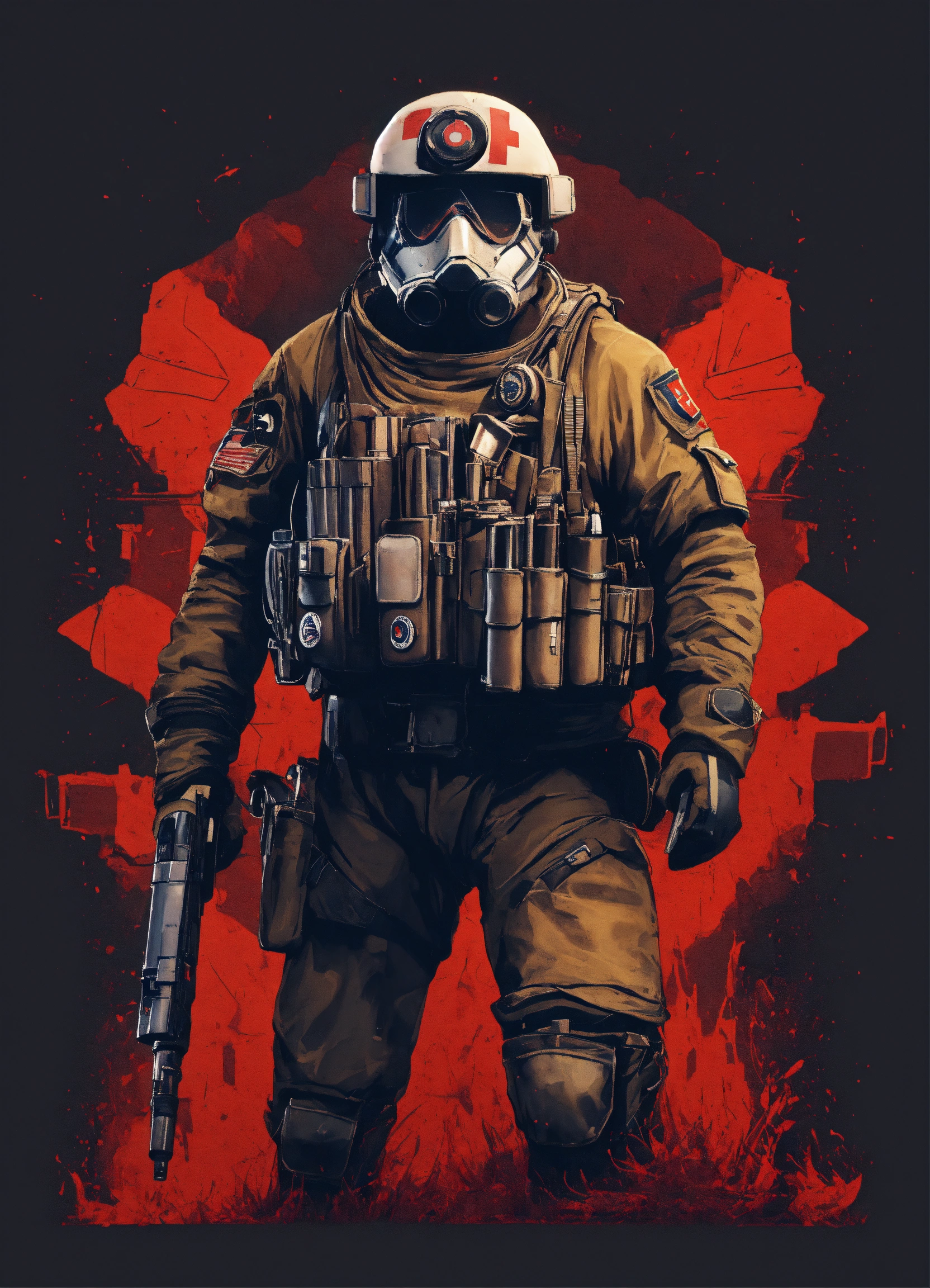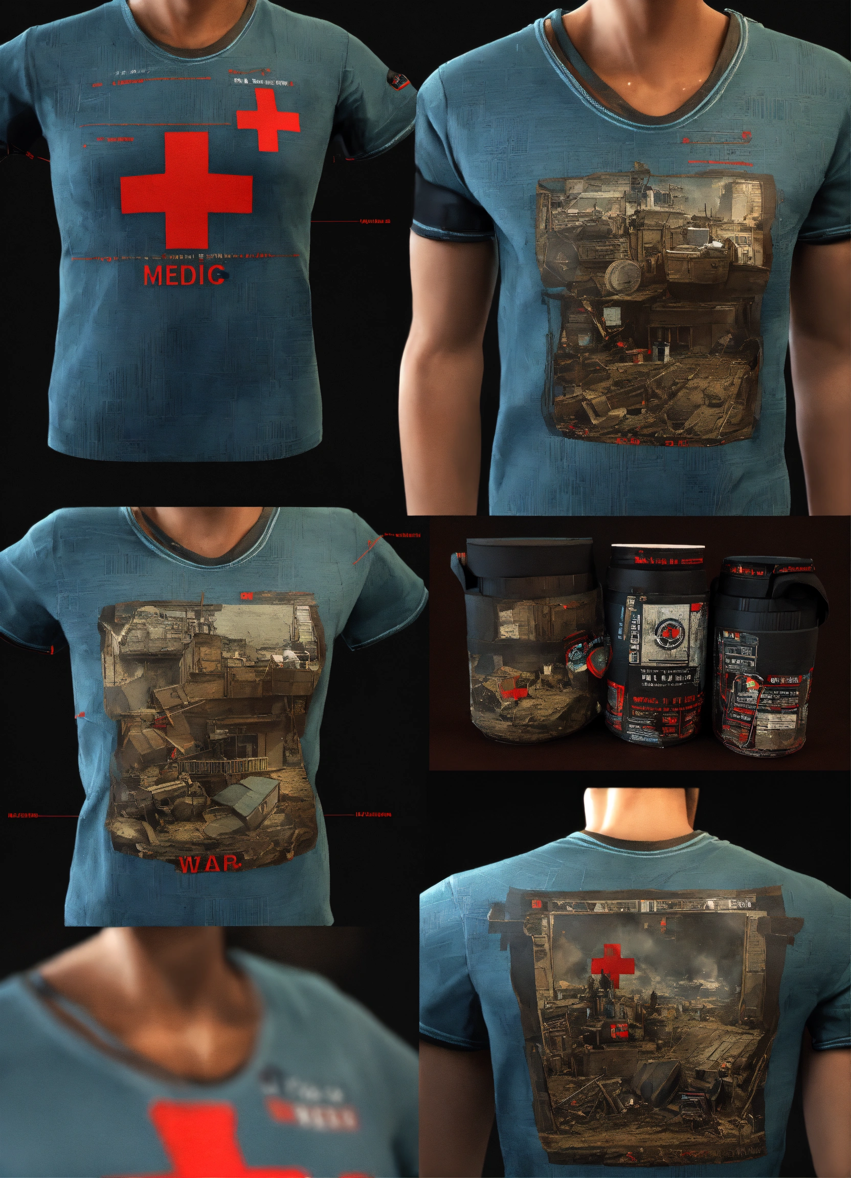 Generate a 3d print design for a t-shirt on the theme of medic in war