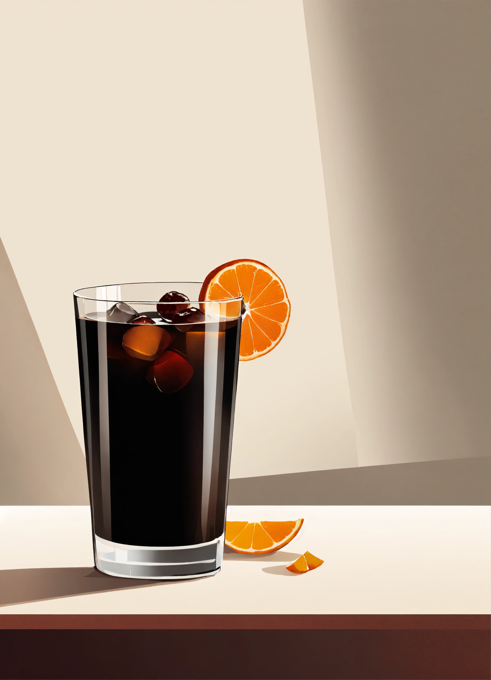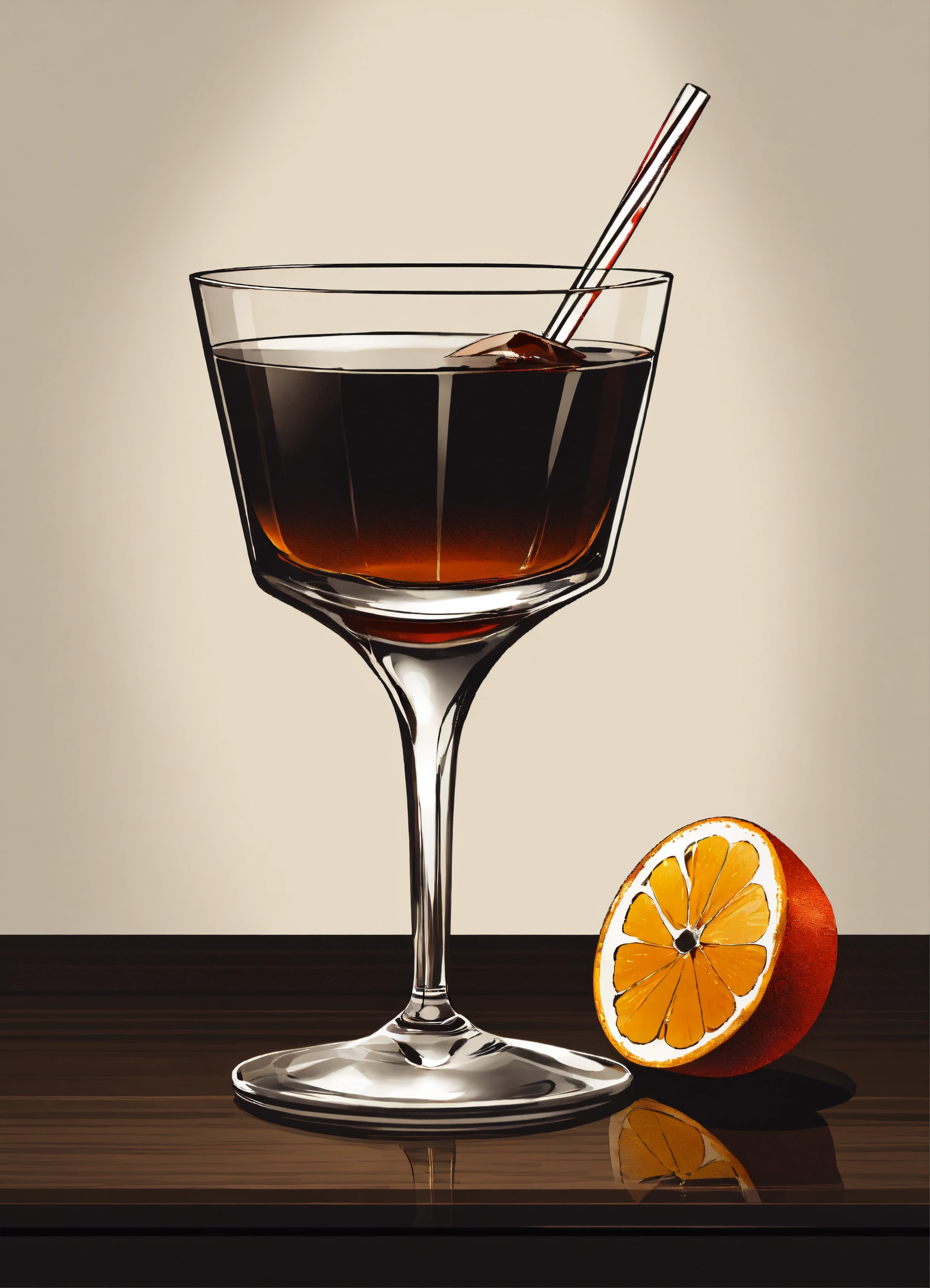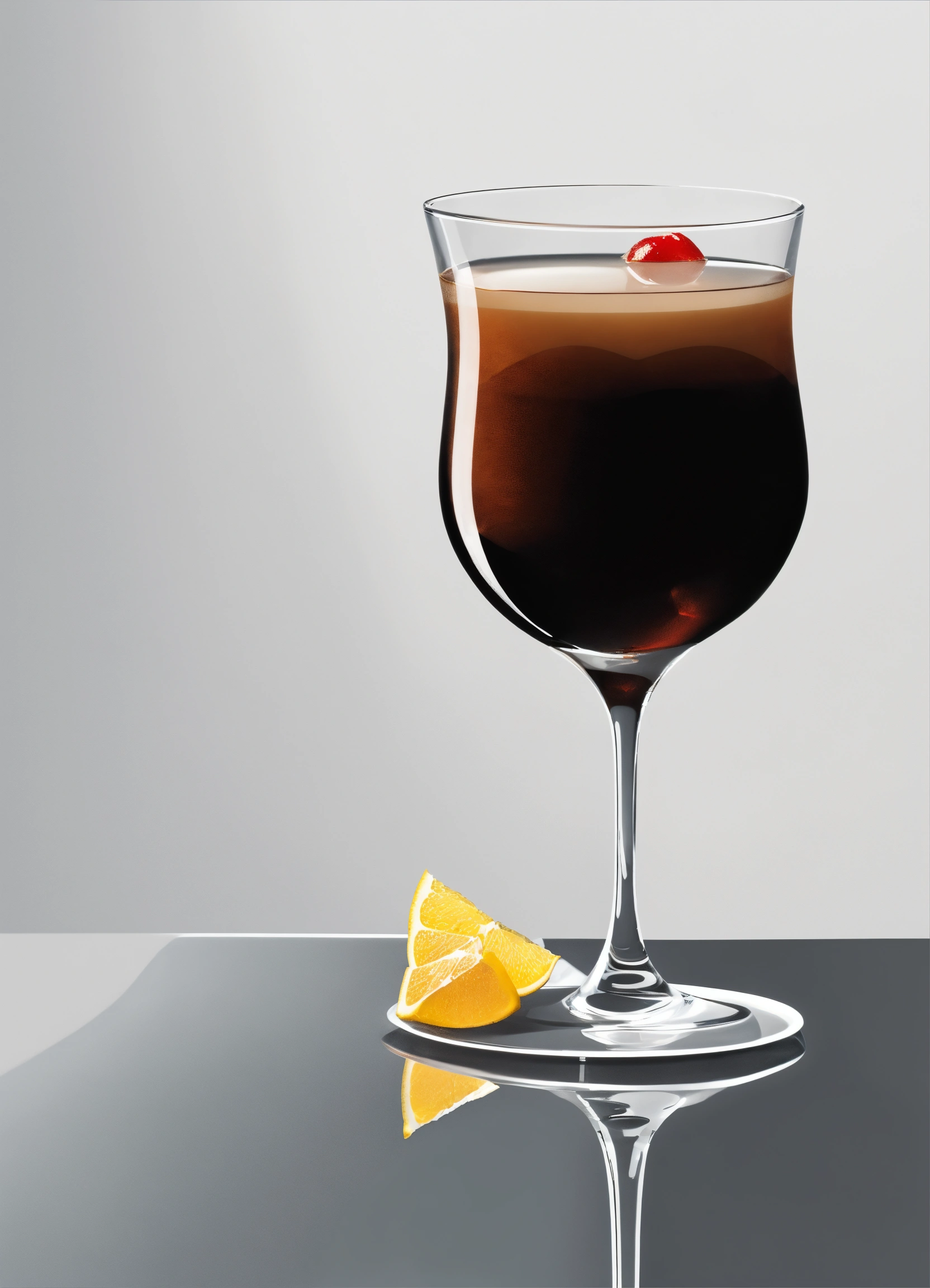 "an elegant, vector, sophisticated, and minimalist representation of a black russian cocktail against a clean white background."