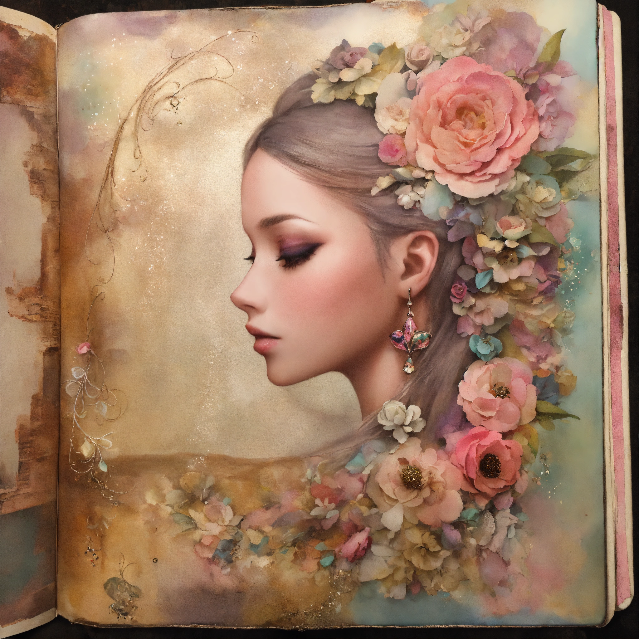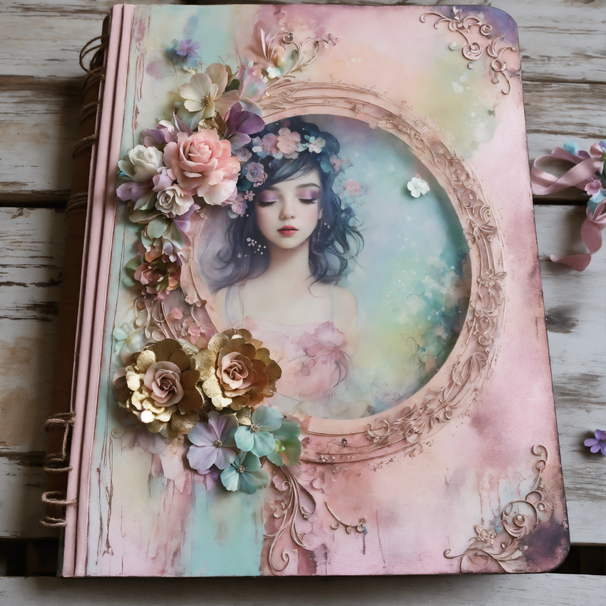 Shabby chic dreamy mist pastel junk journals shabby chic full figure emo goth girl laporte style swirling magical fairytale abstract art style