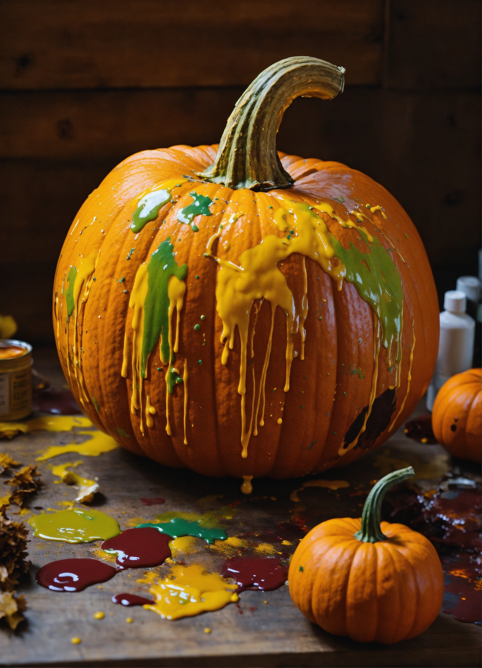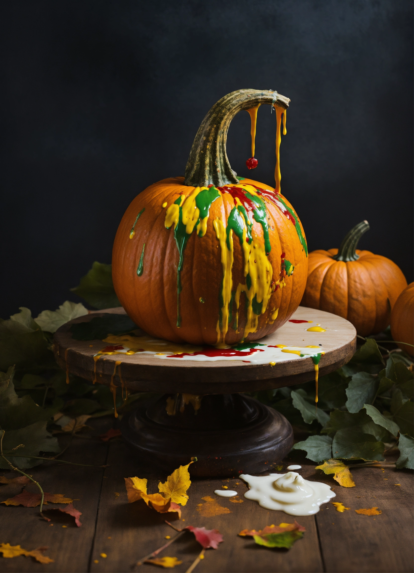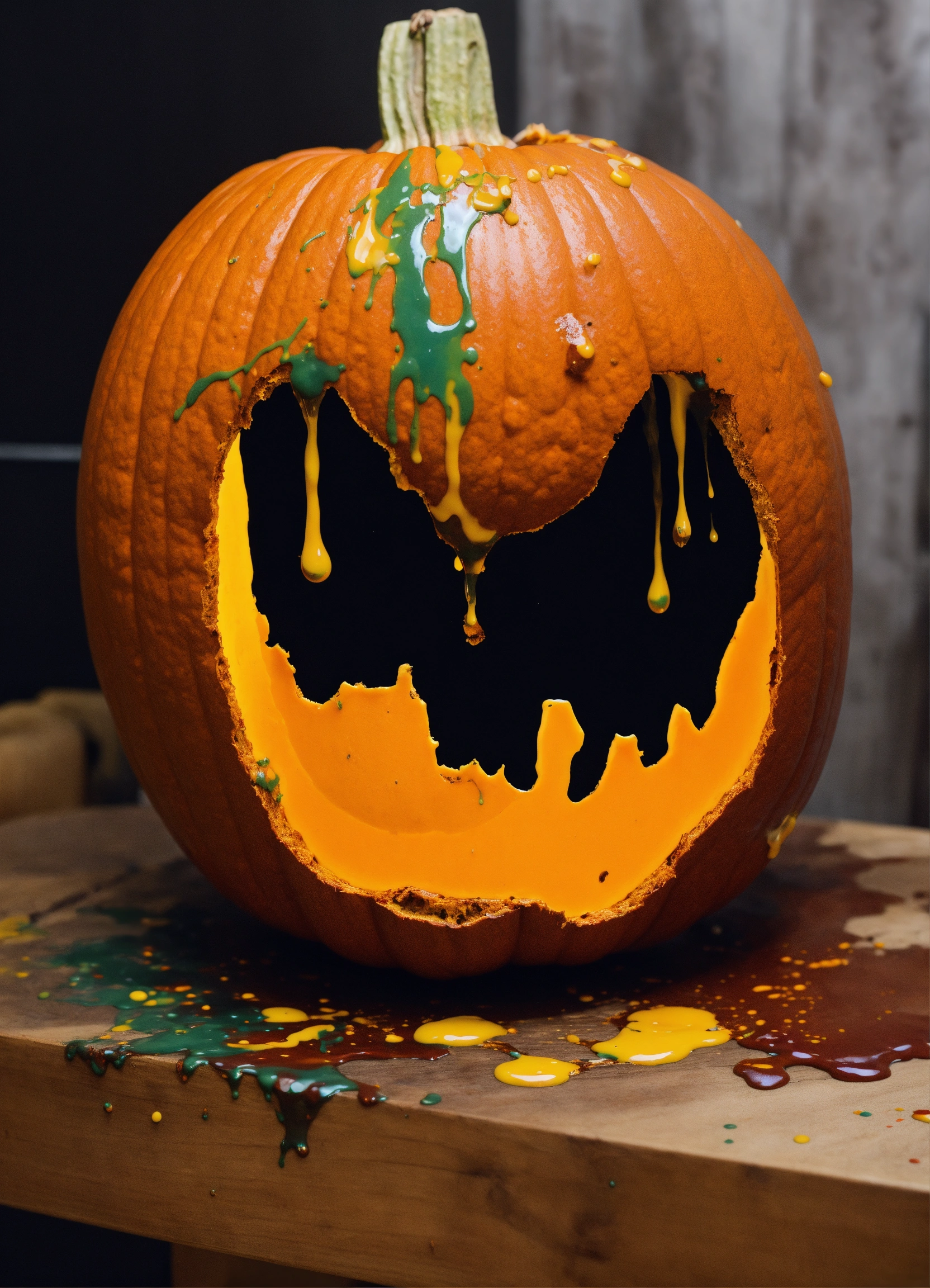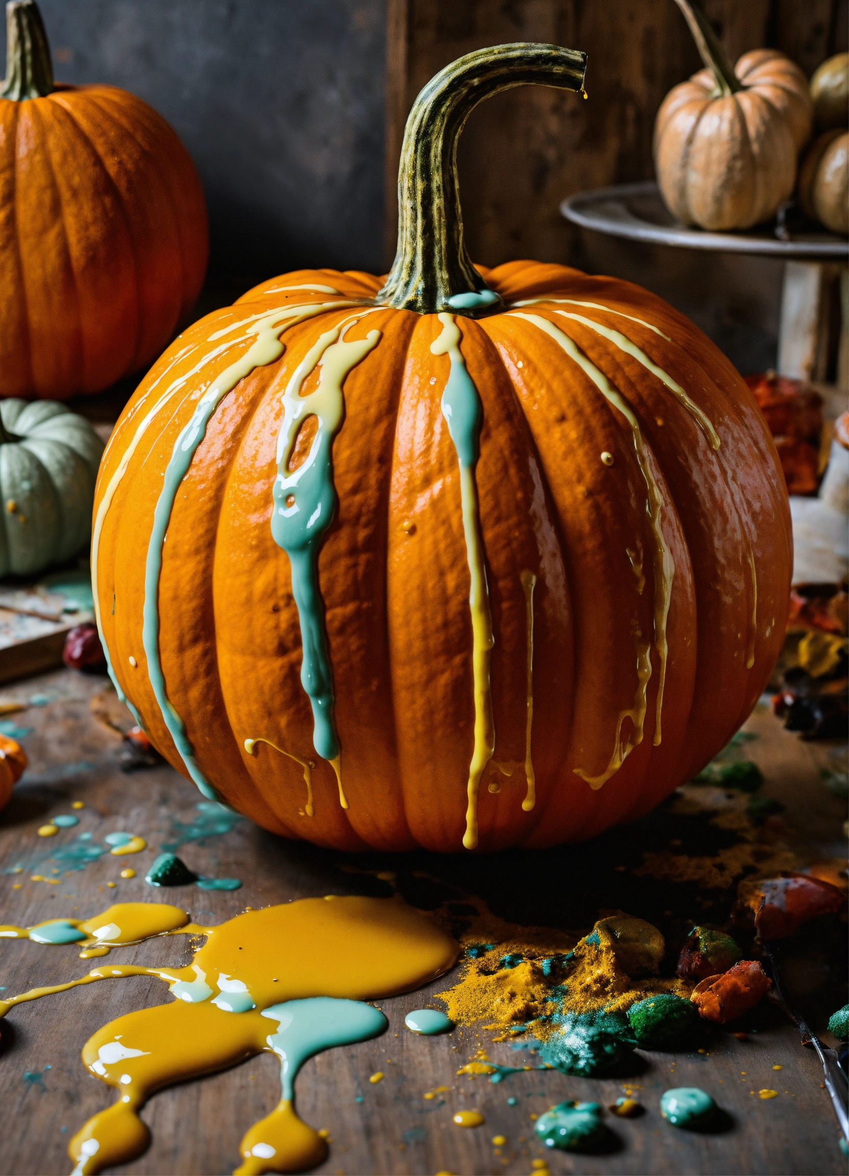 A pumpkin dripping with paint
