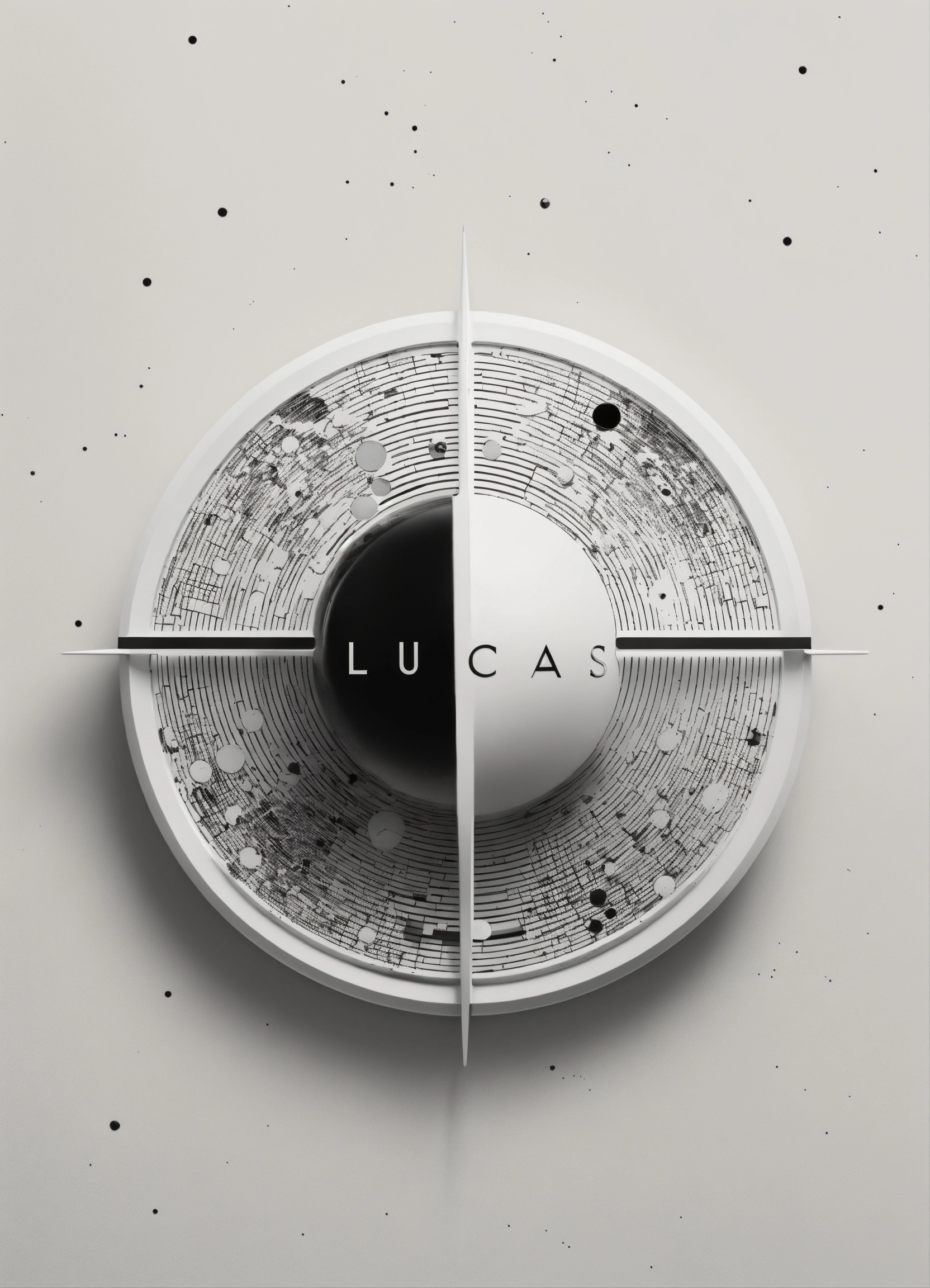 Logo avec thème moderne, minimal, marque combinée et belle mise au point hd sur fond blanc marque " lucas" discret, moderne noir sur fond blanc, futuriste planete