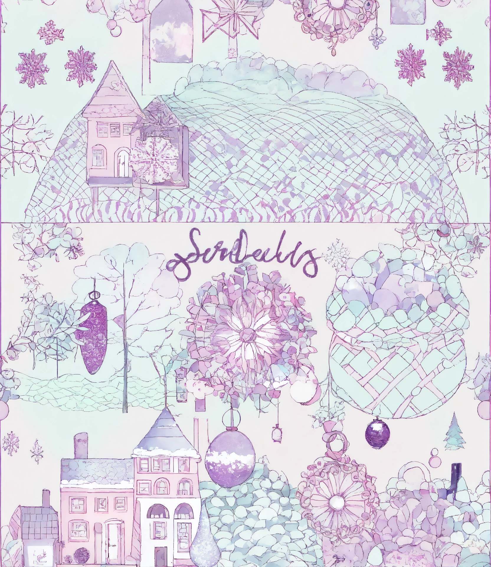 Shabby chic dreamy mist pastel colors junk journaling whimsical plum season's greetings at snowy christmas wintertime plain seamless paper full page tiny images