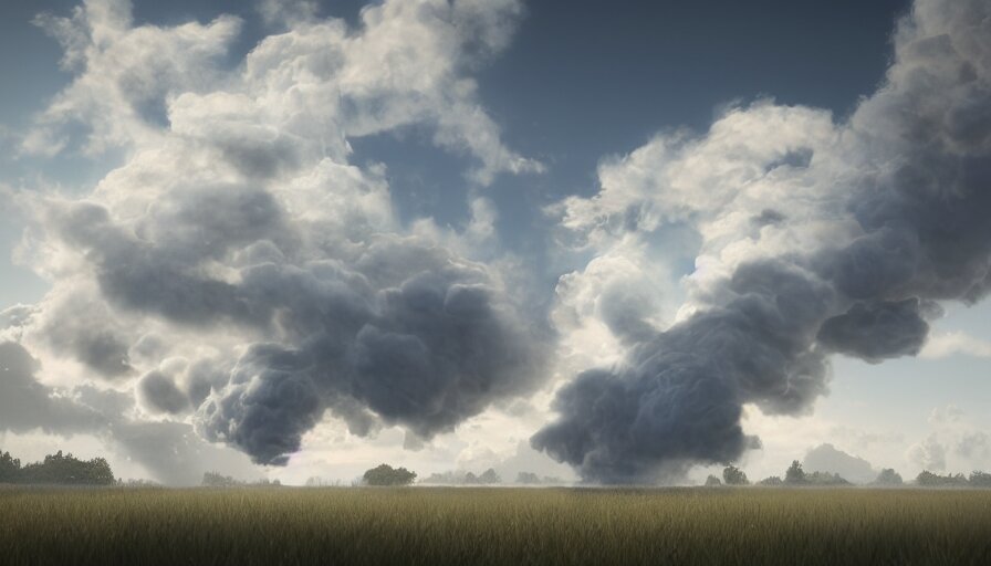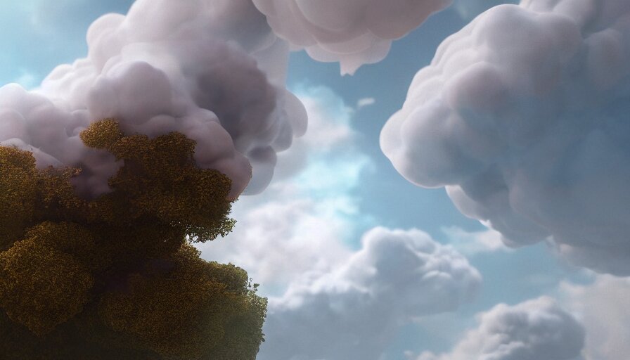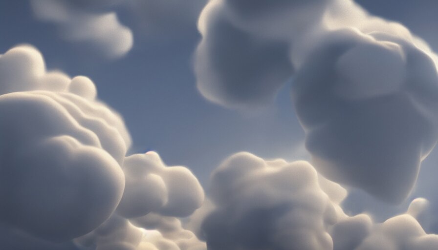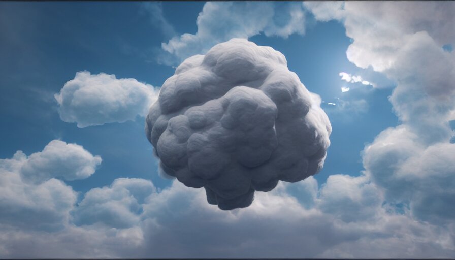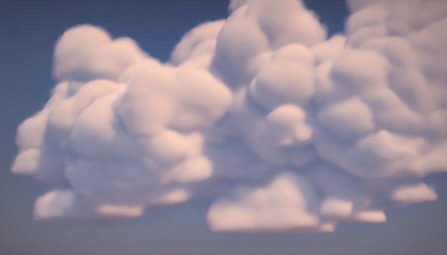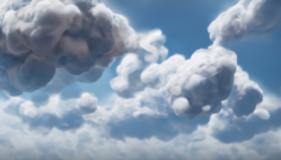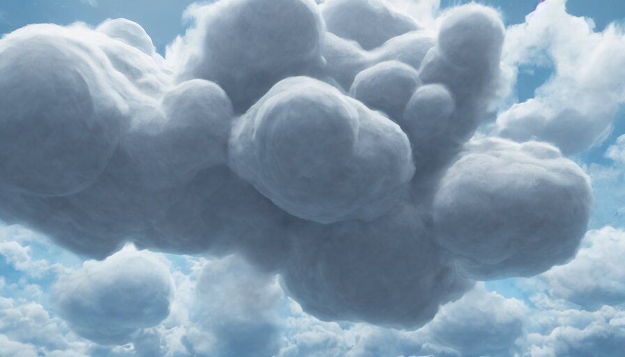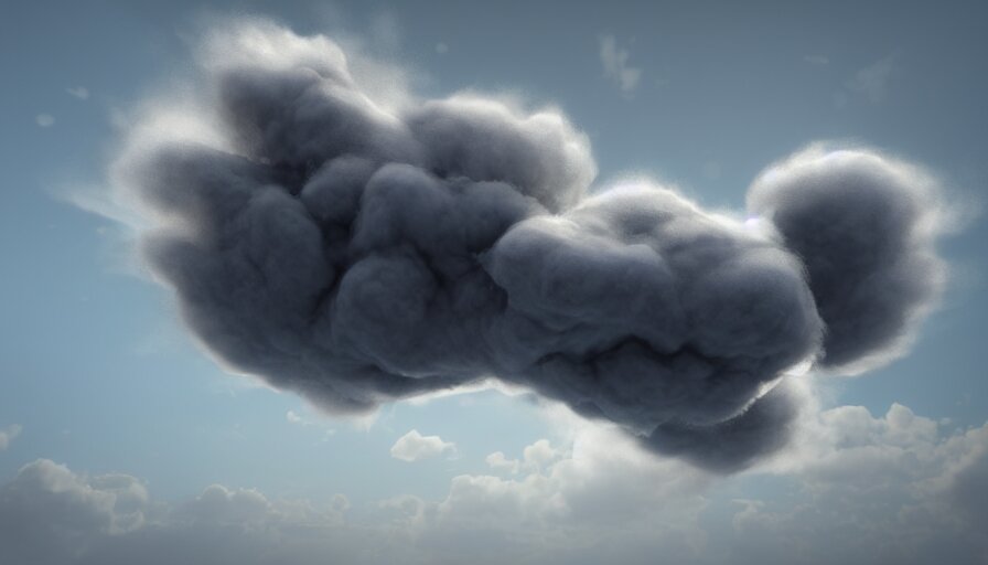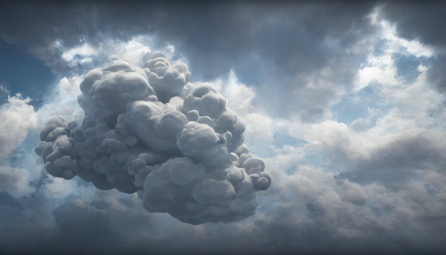 Volumetric puffy cloud, photorealistic rendering, octane, redshift, volumetric light, subsurface scattering, 4k, hyperrealistic, hyperdetailed, smooth gradients, particle simulation
