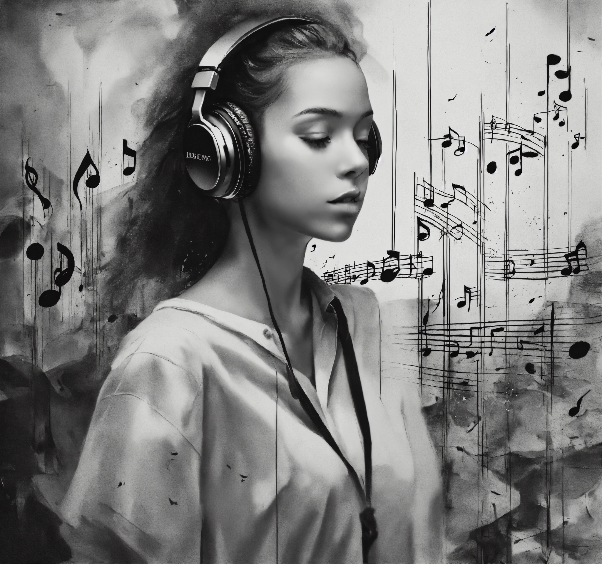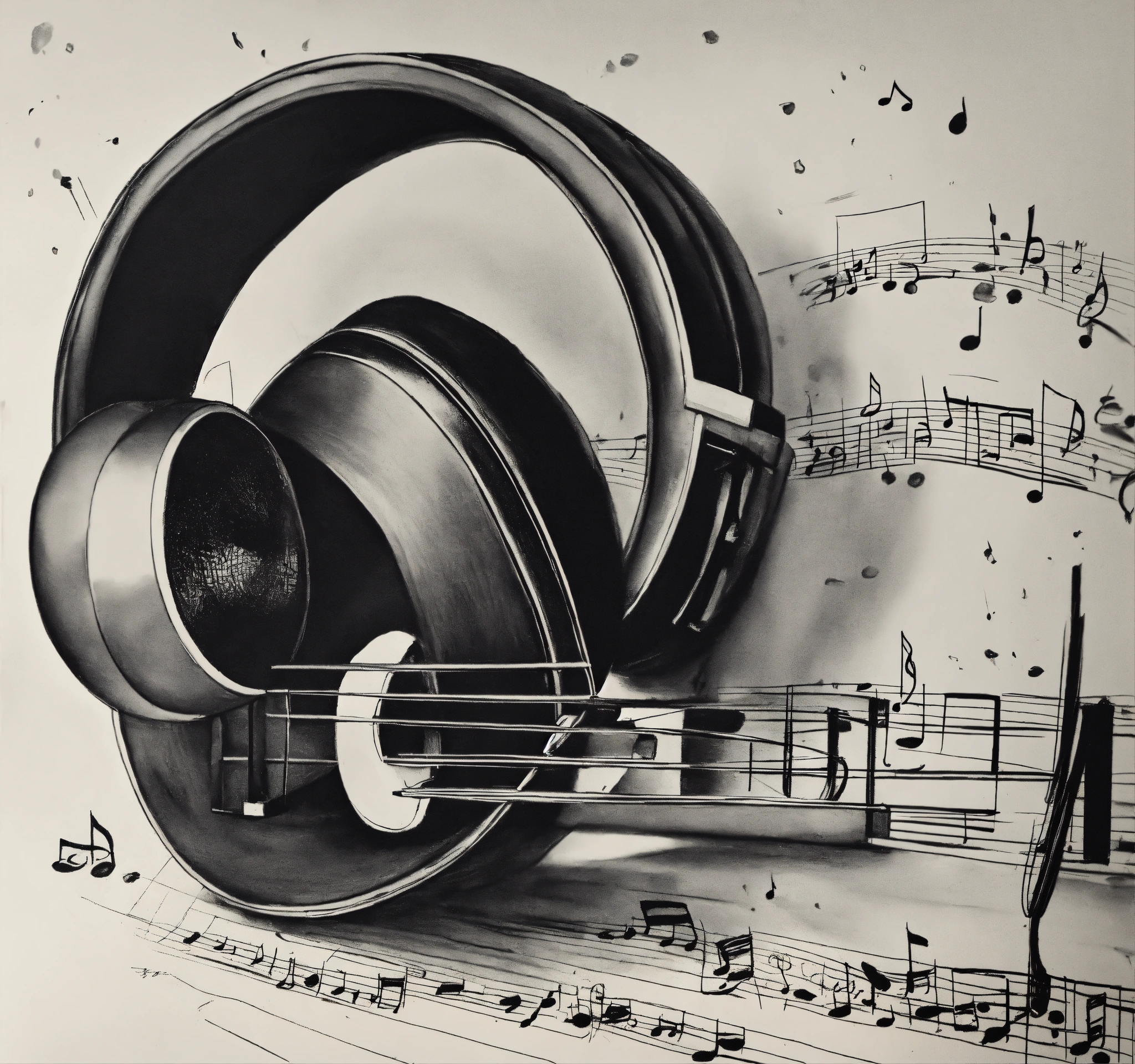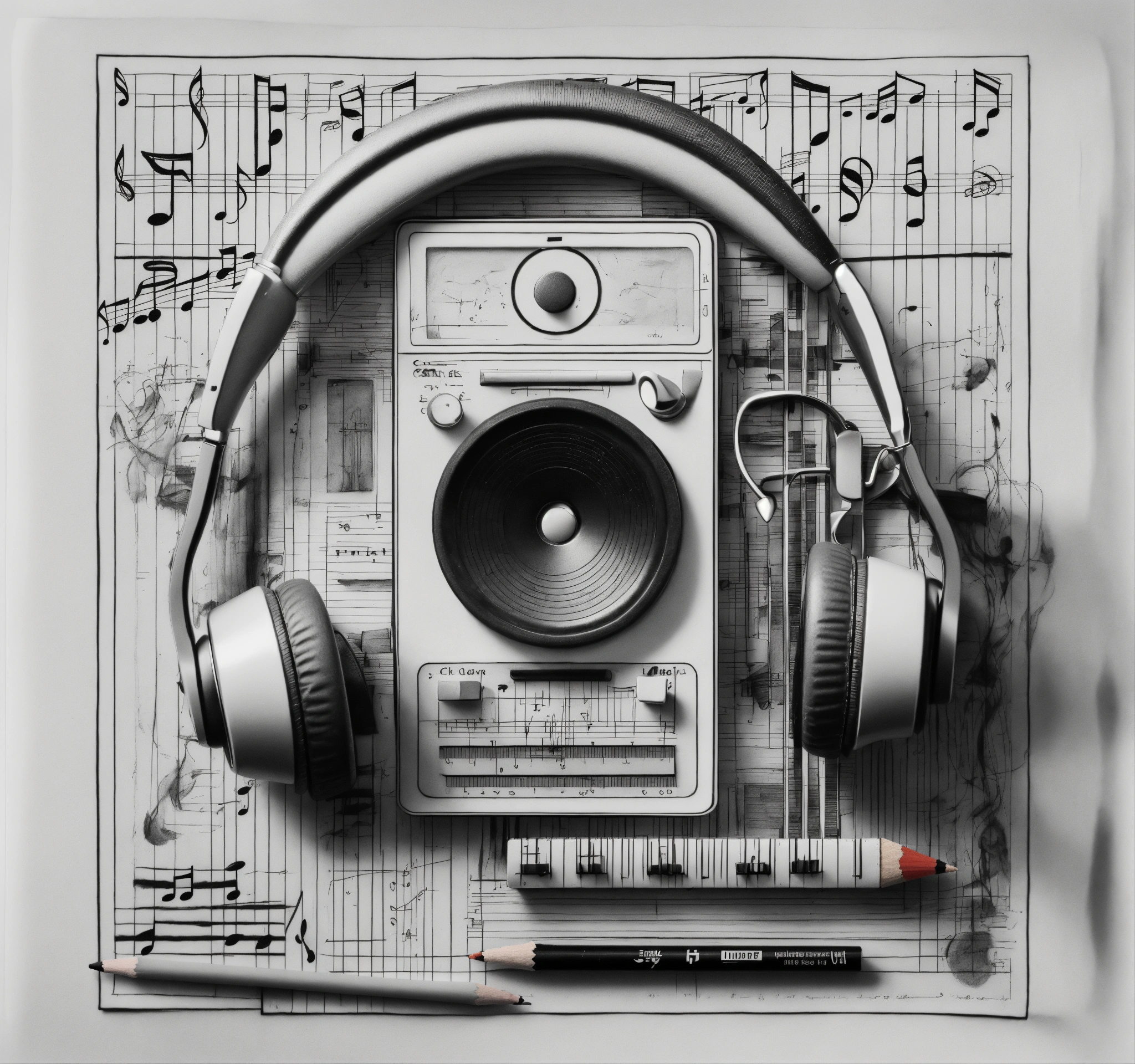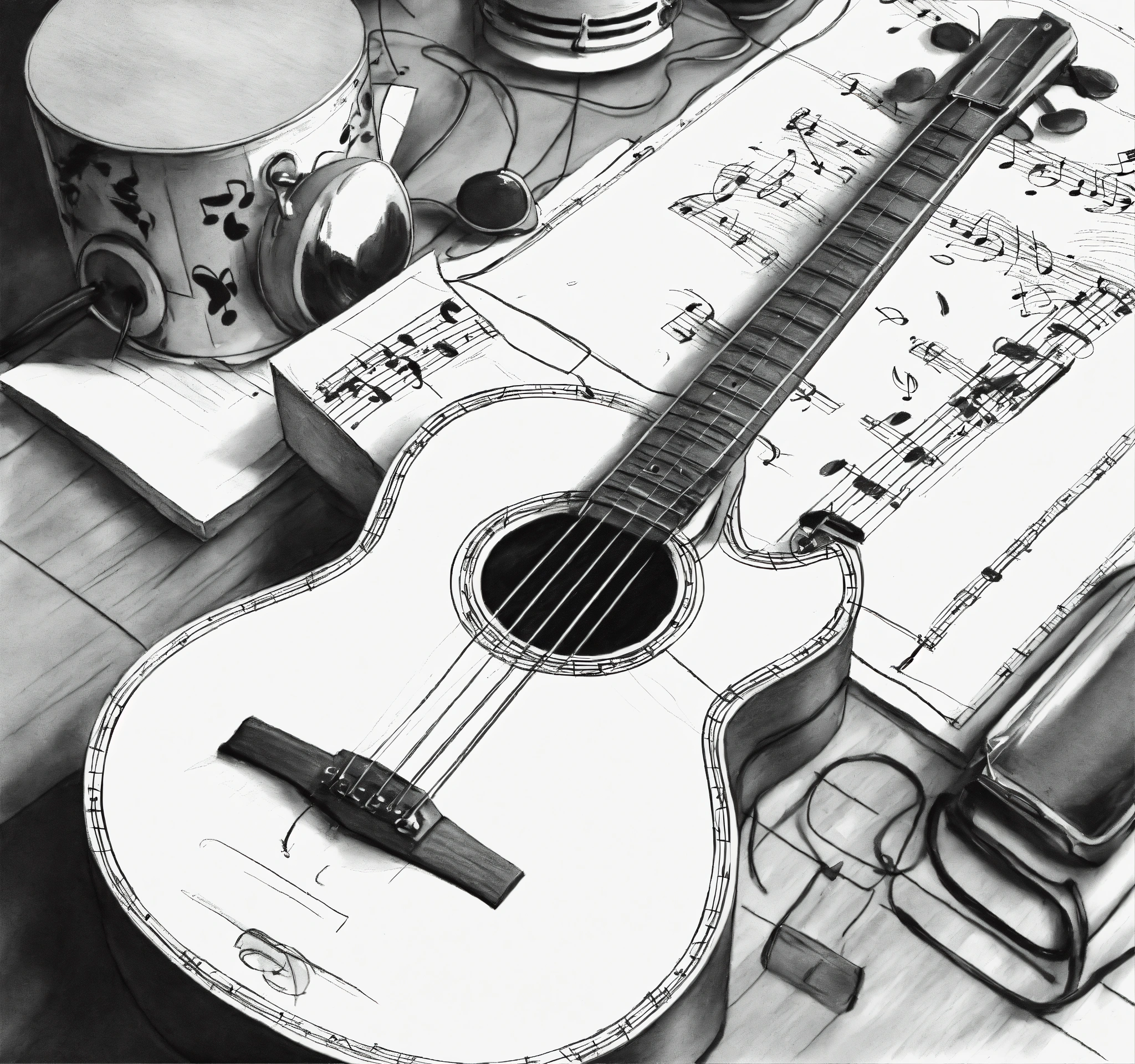 Create a pencil sketch art composition of a music in a black and white color palette and minimalism