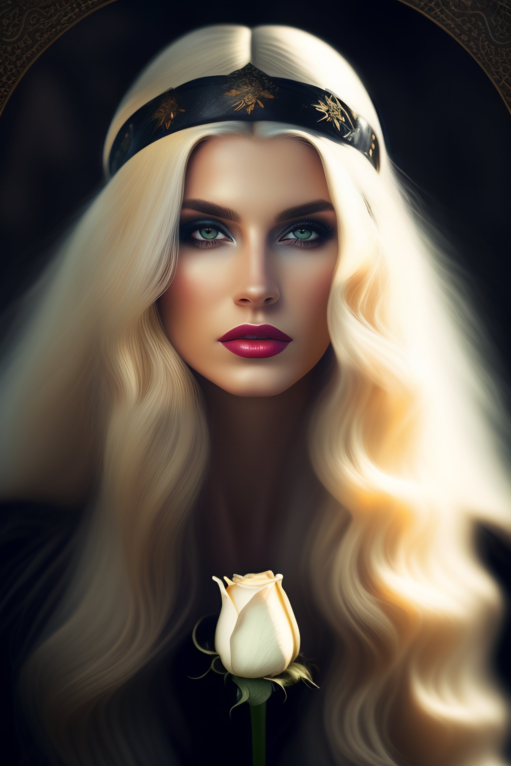 she hold a black rose in her hands