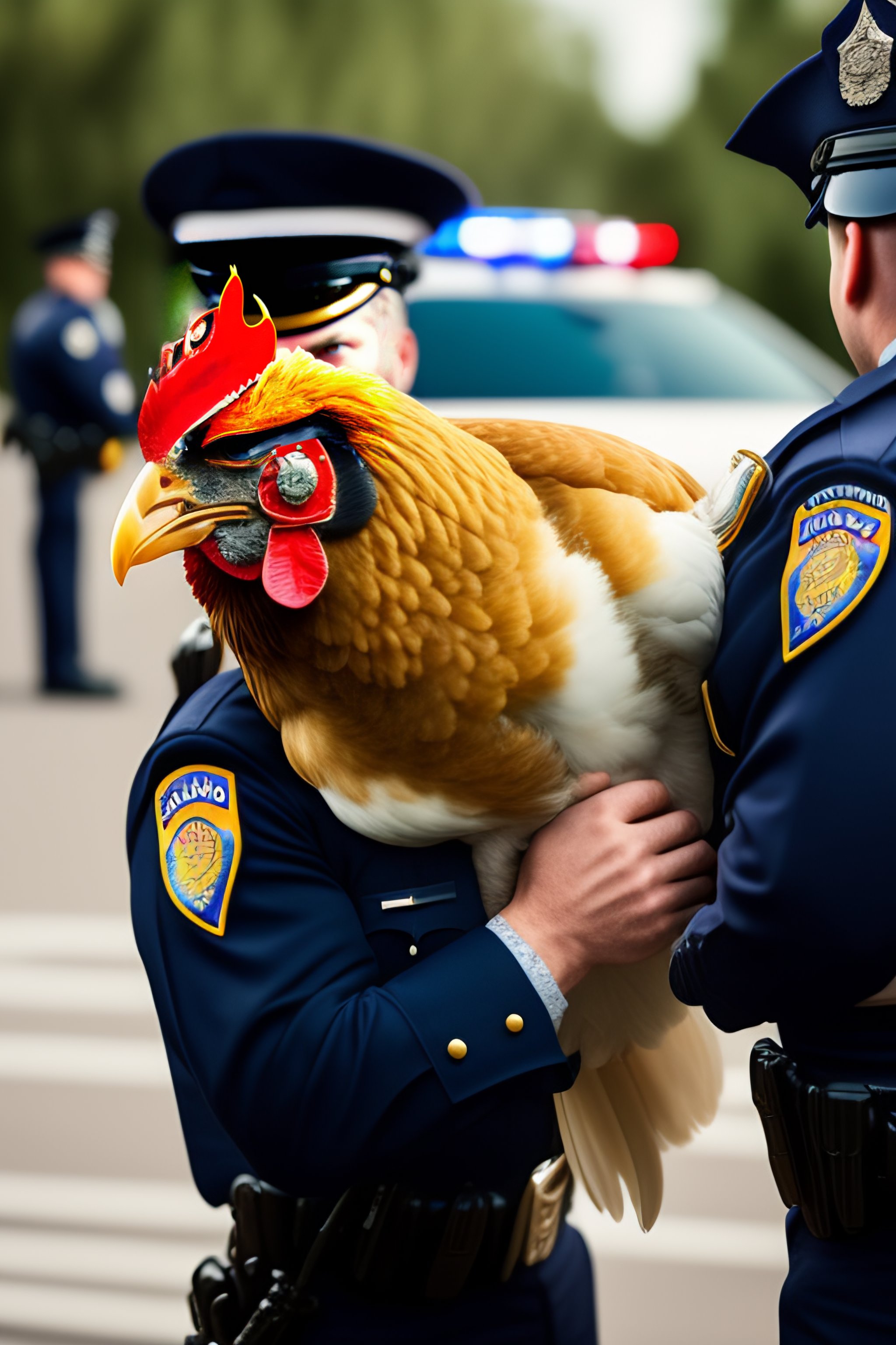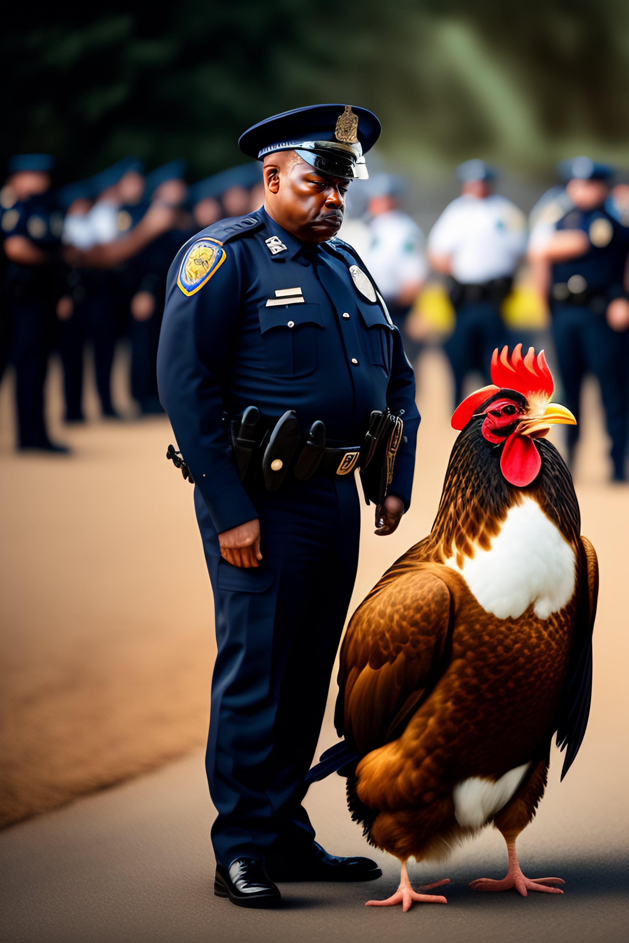 Chicken as a police officer making an arrest