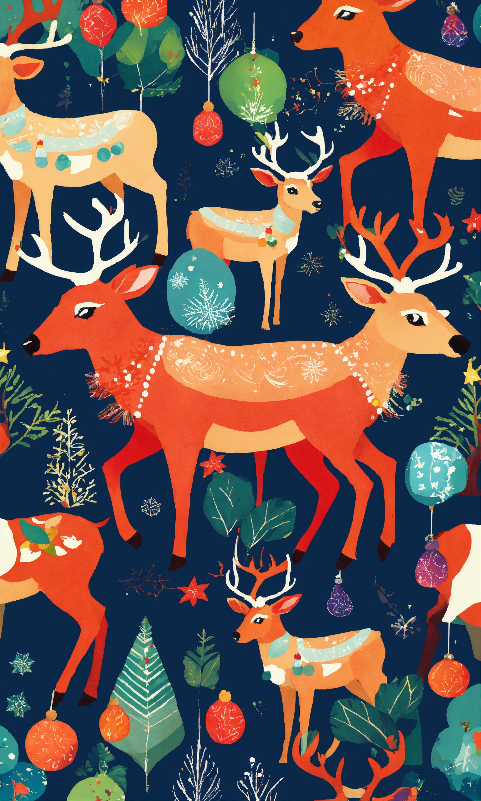 Adorable cute reindeers colorful