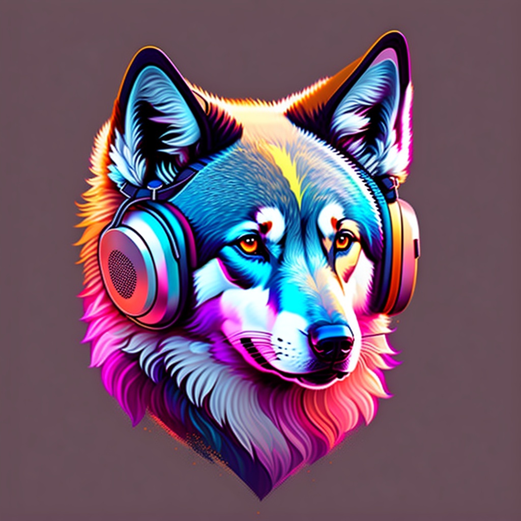 T-shirt design, wolf with headphones on his ears, digital art by jan tengnagel, shutterstock contest winner, furry art, artwork, angular, art