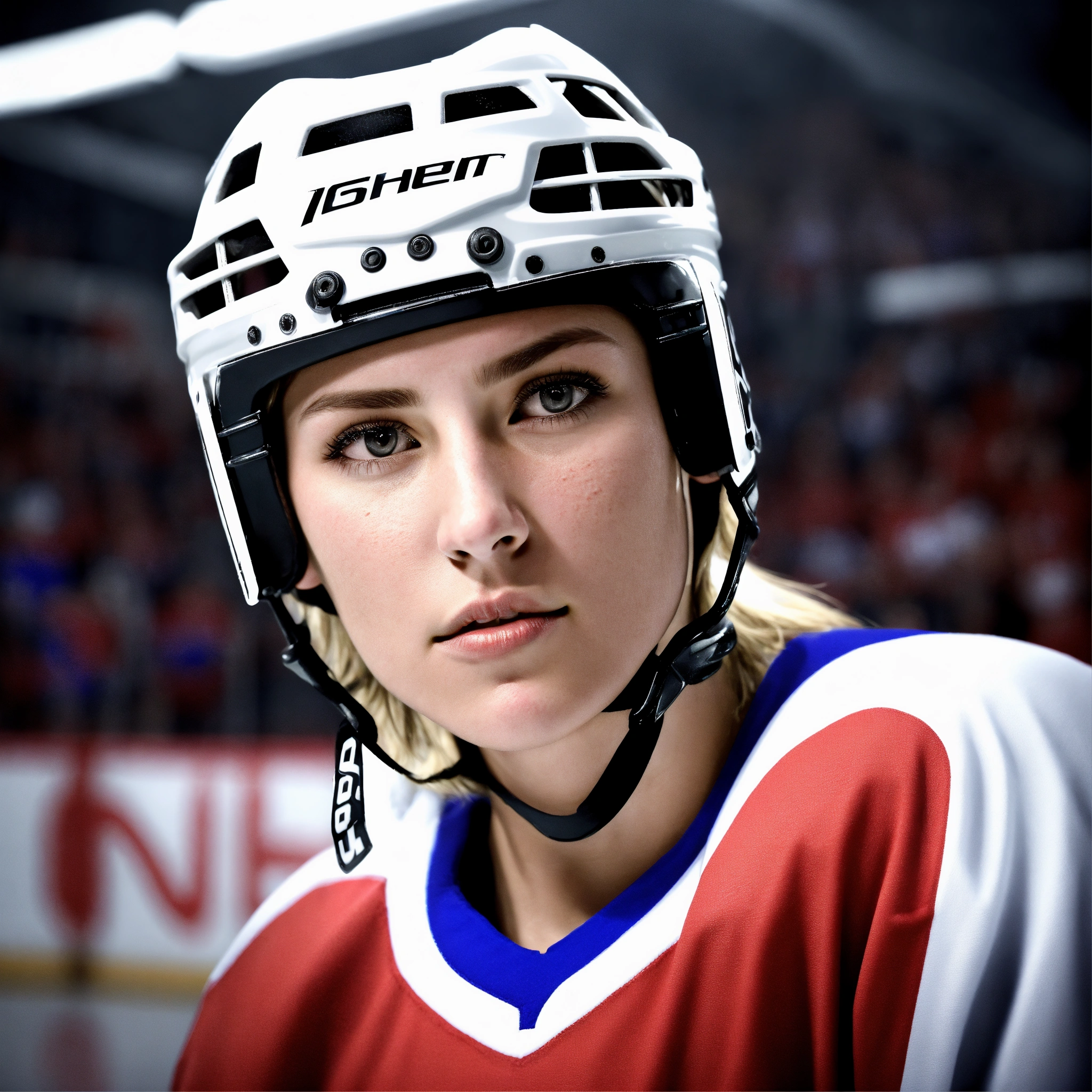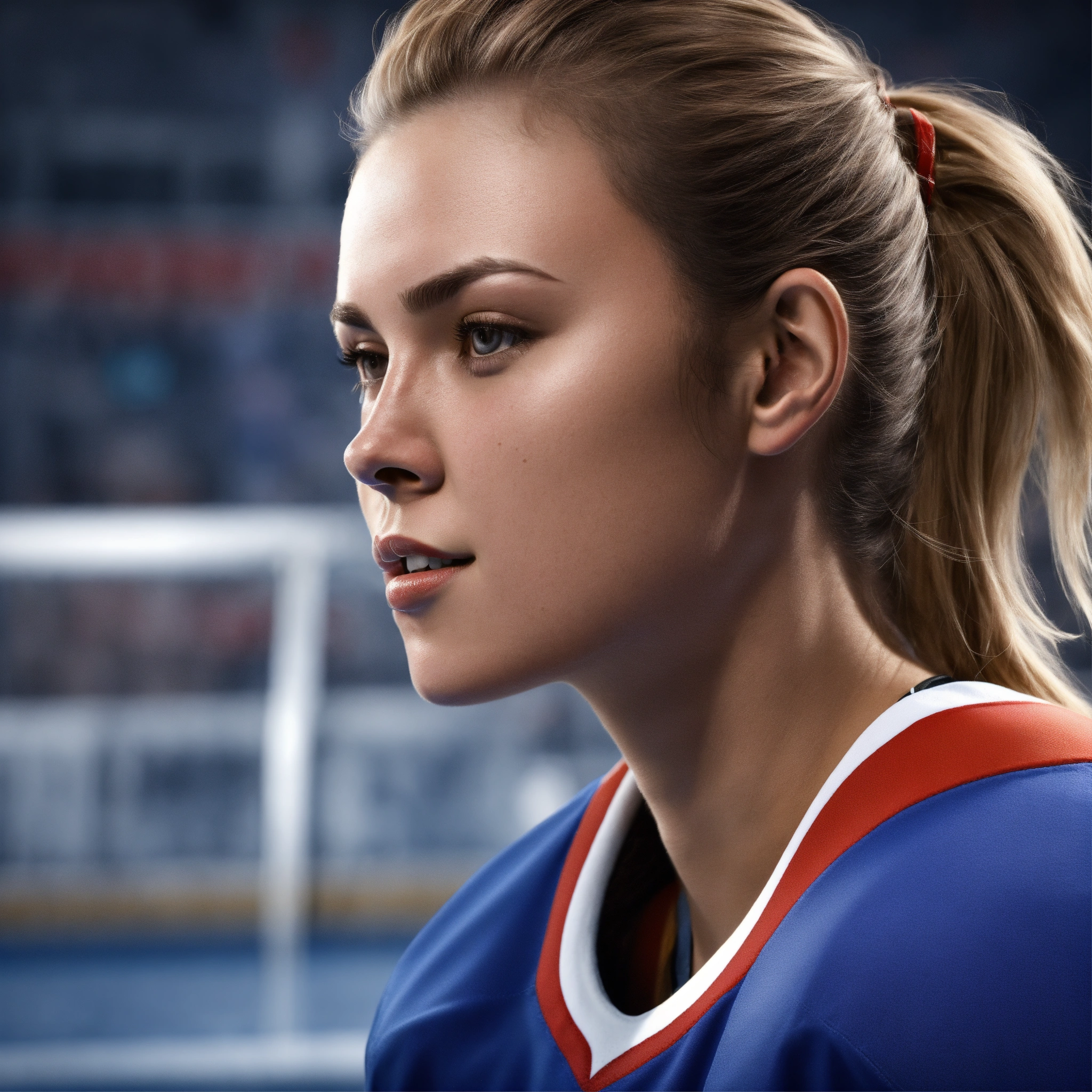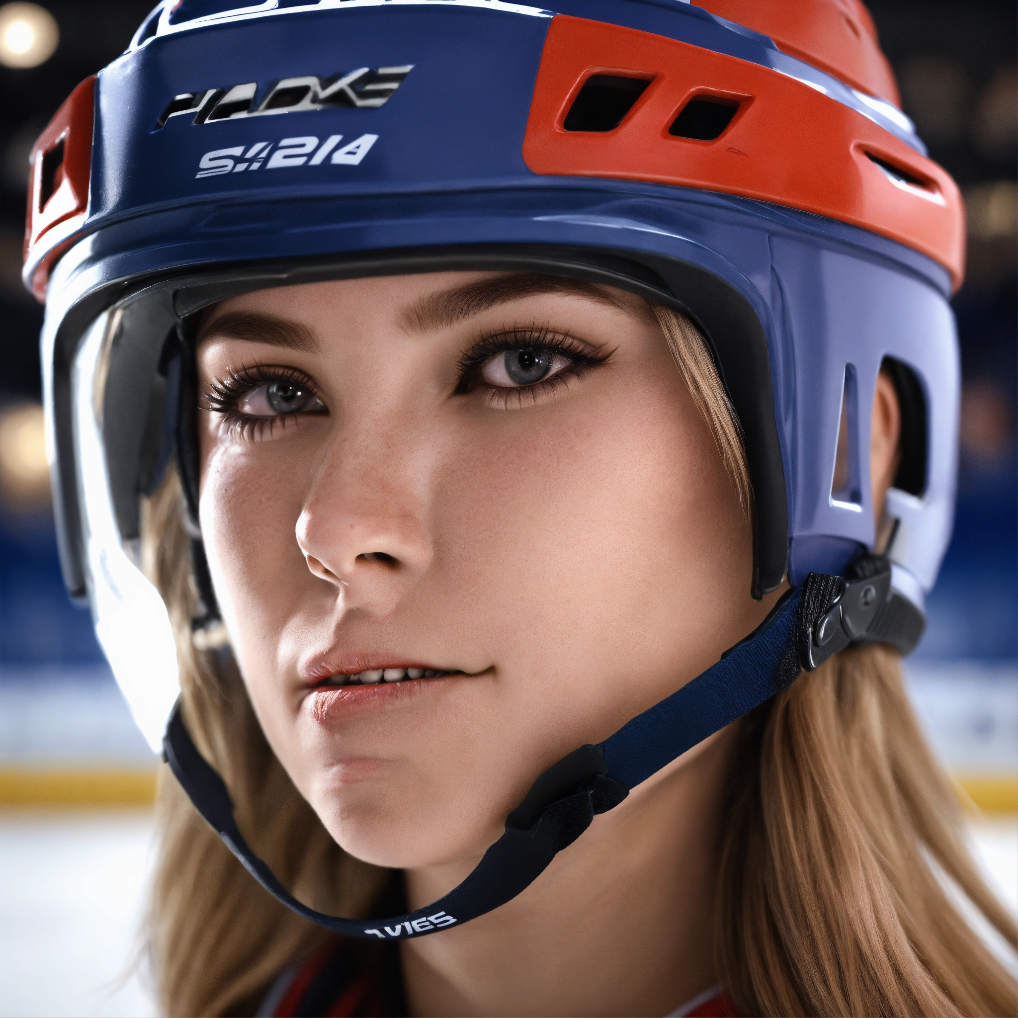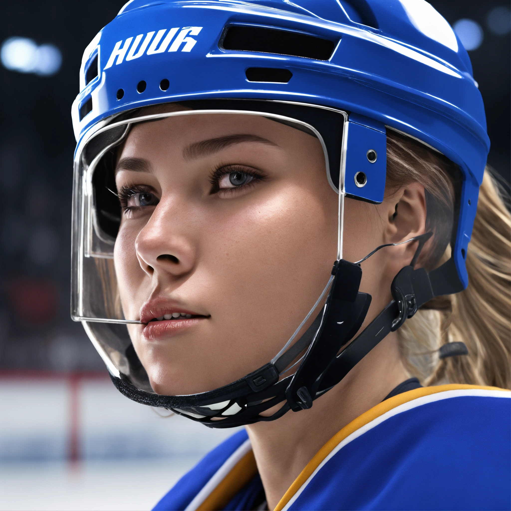 Female hockey player face profile. realistic