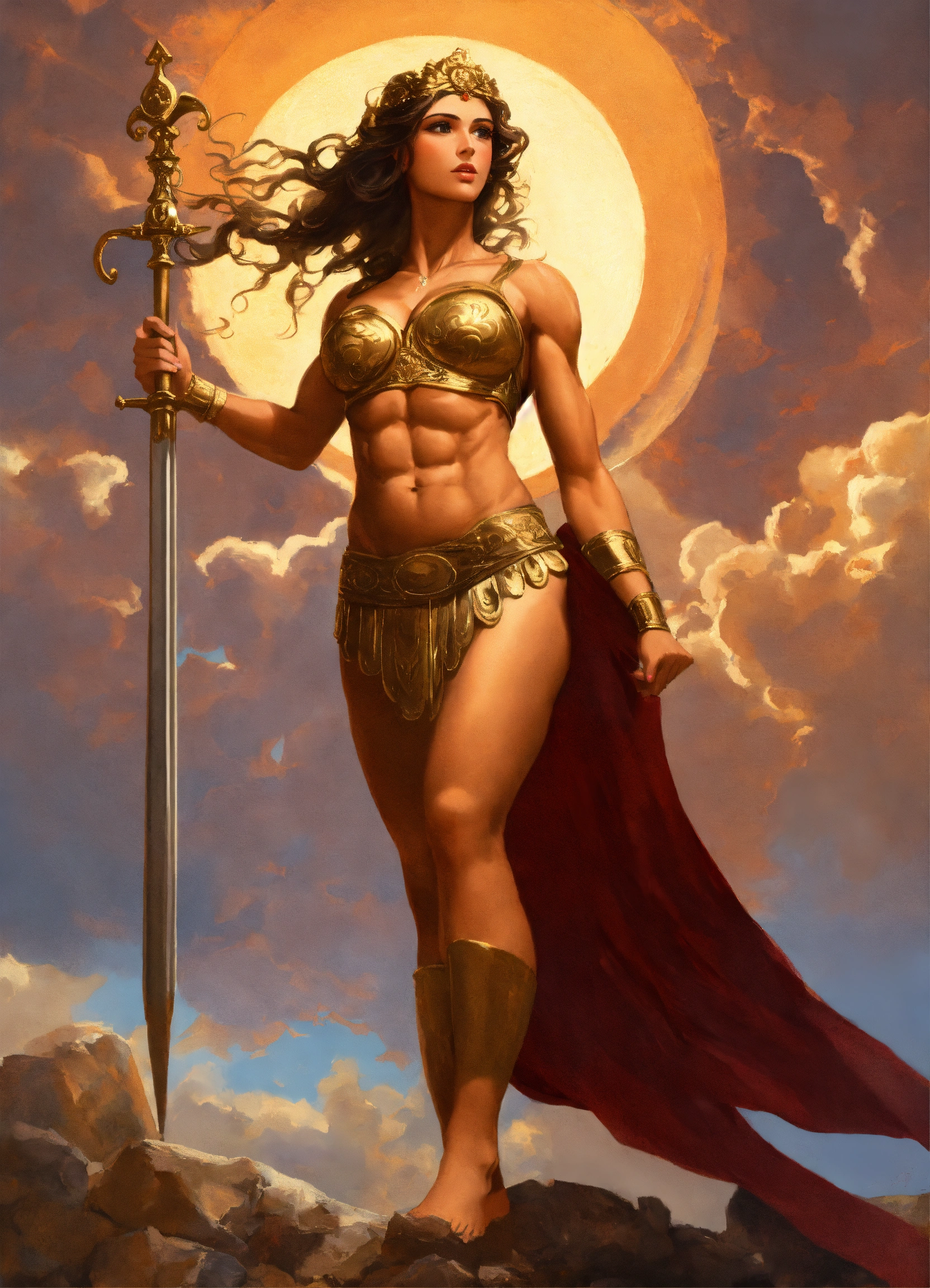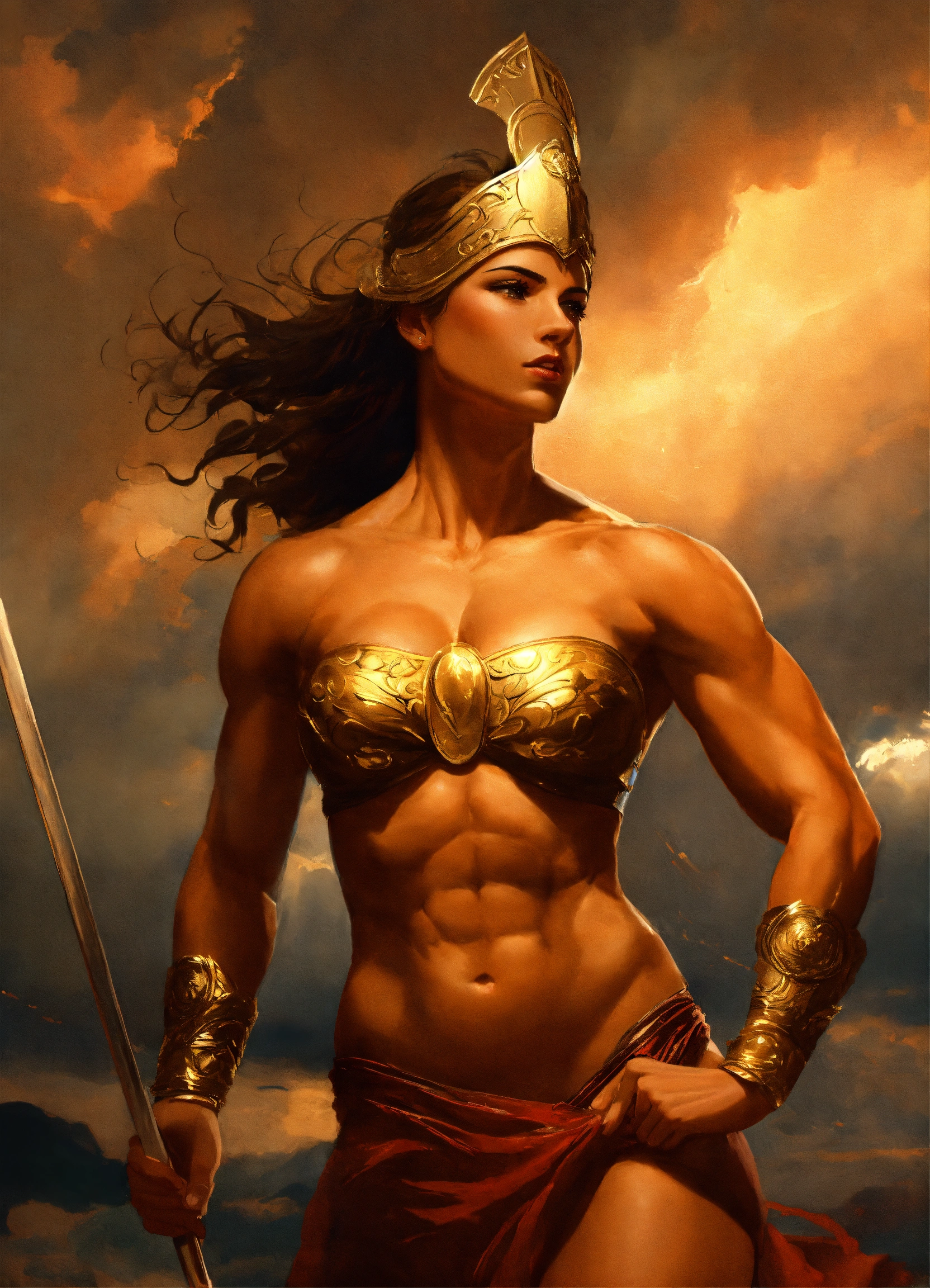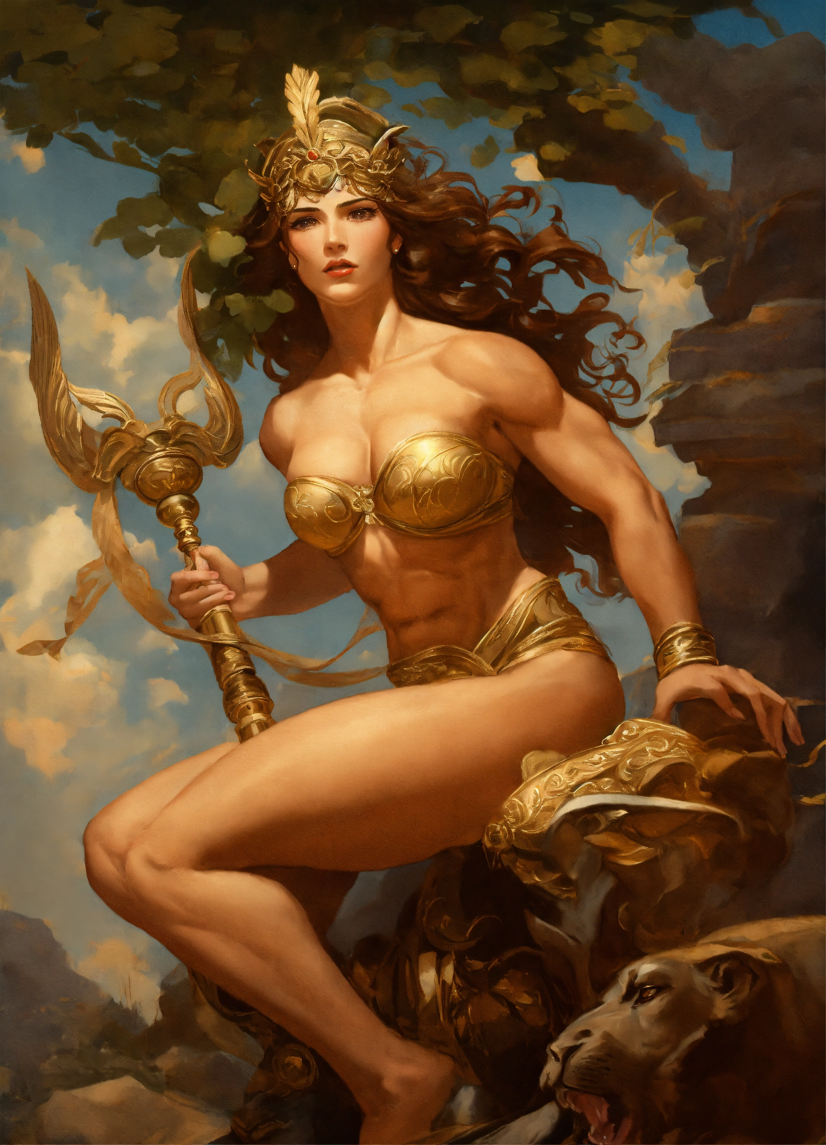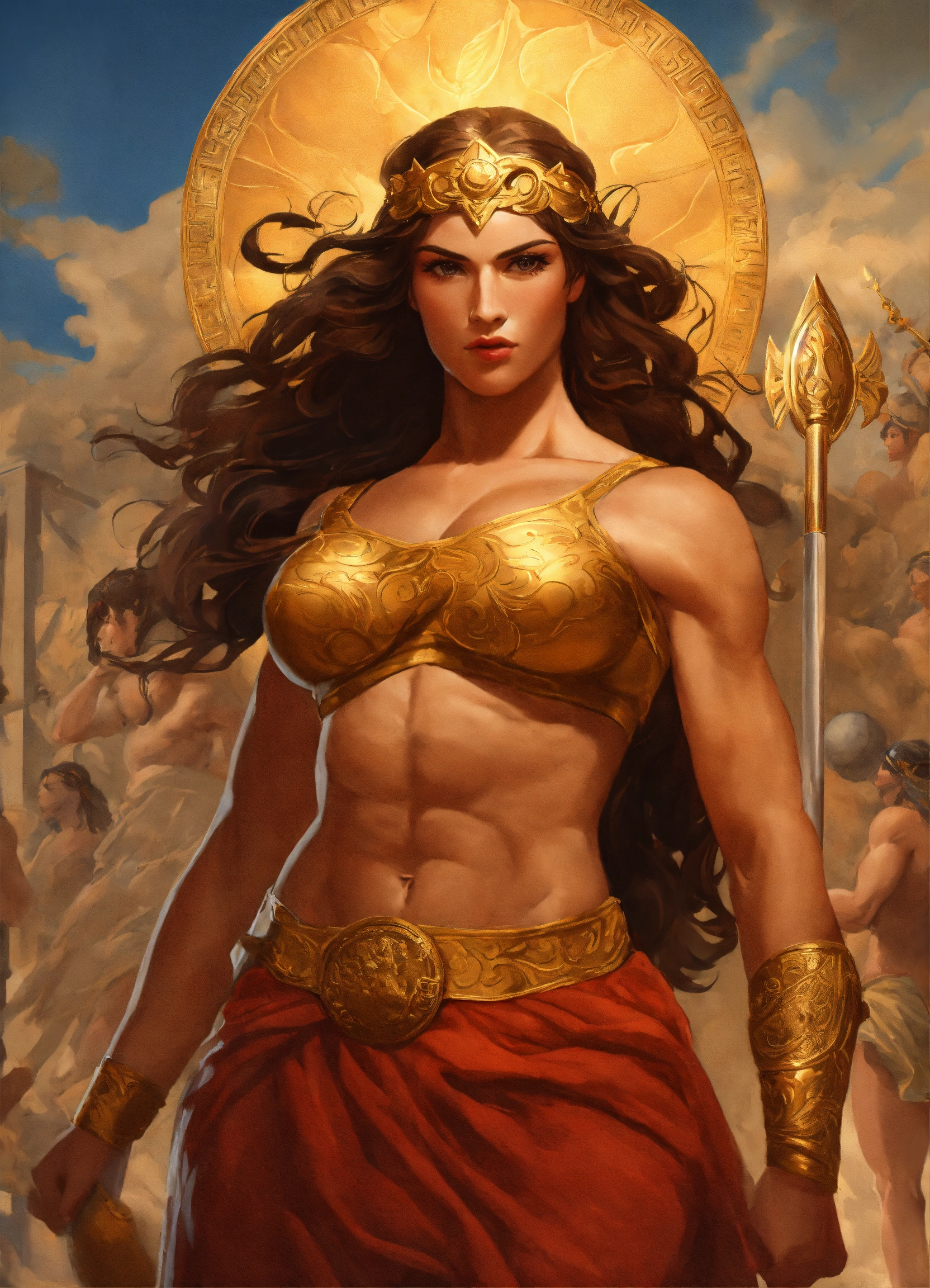 A woman, goddess of fertility from greek mythology. the most muscular godess. all powerfull defiting hercules in a figth