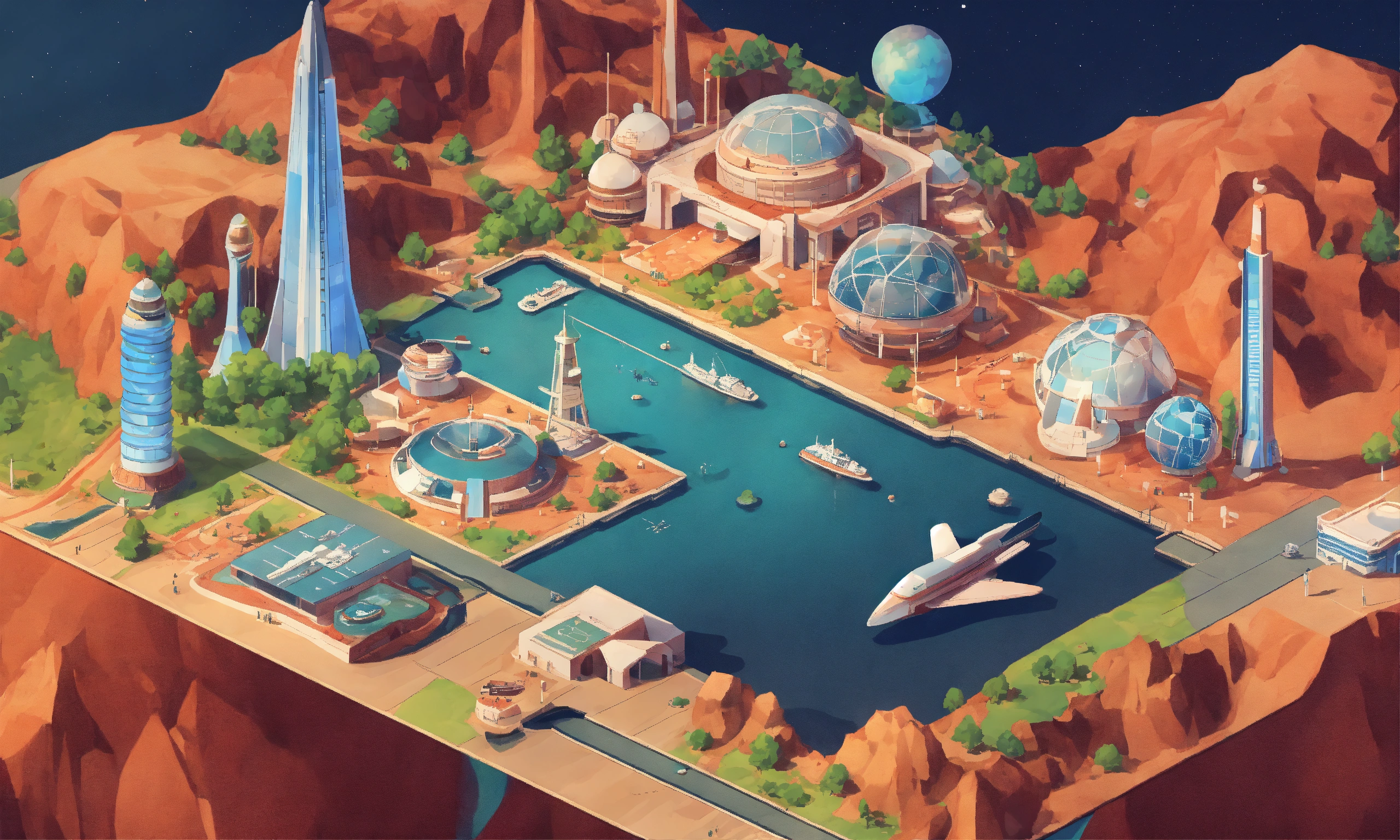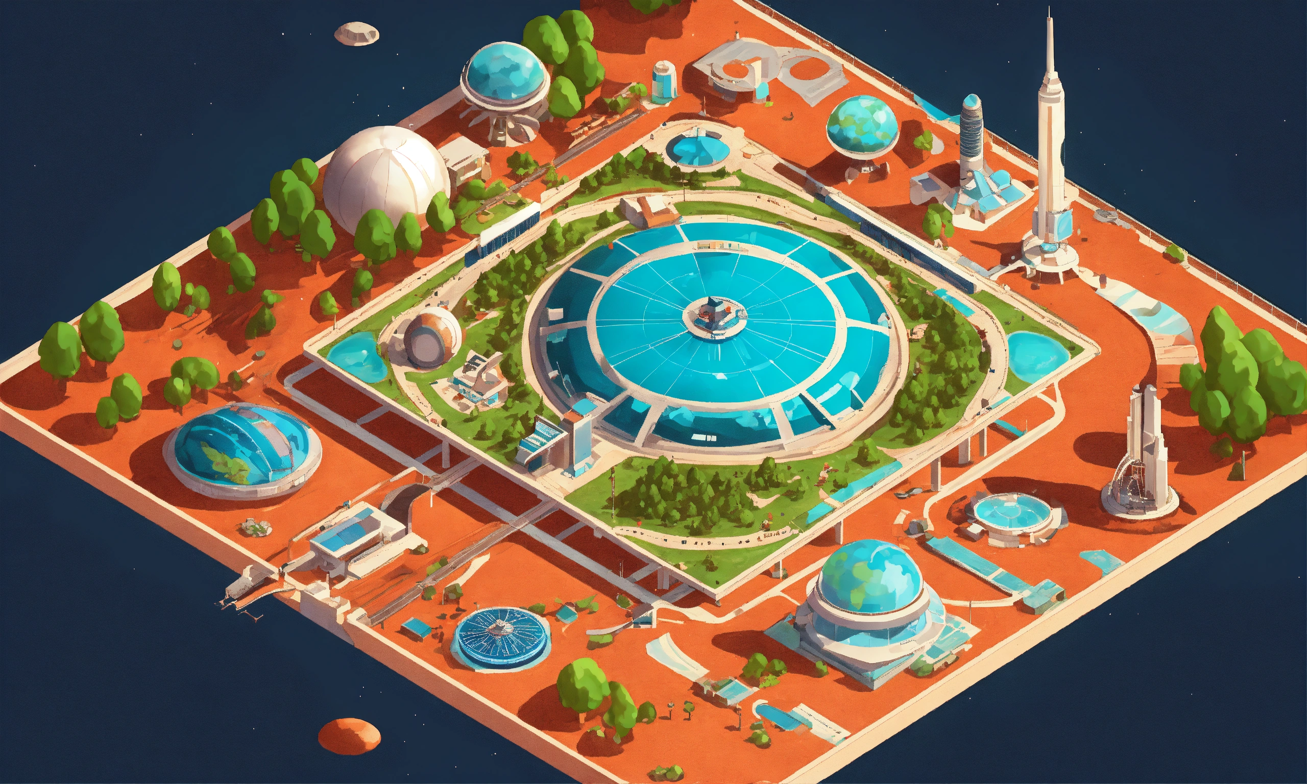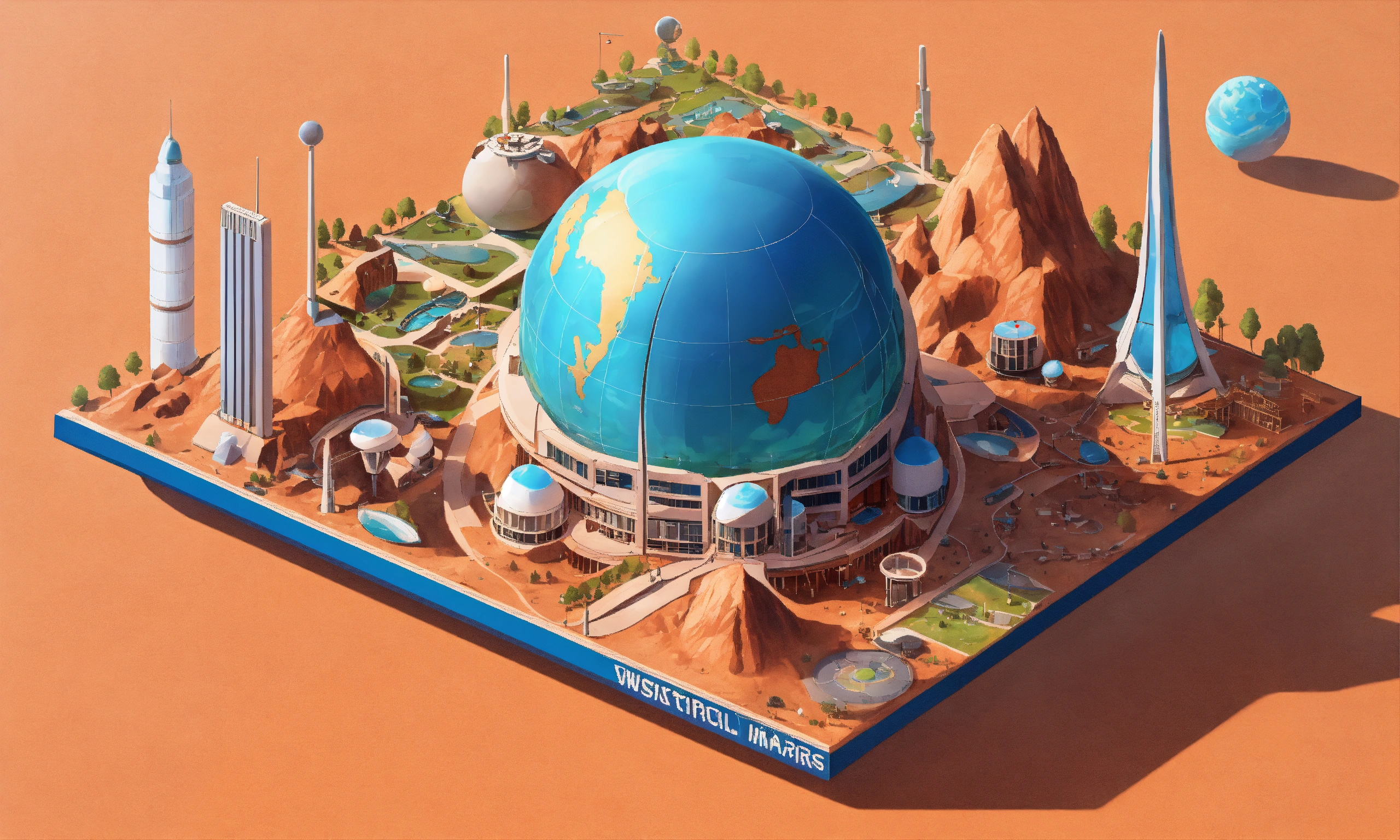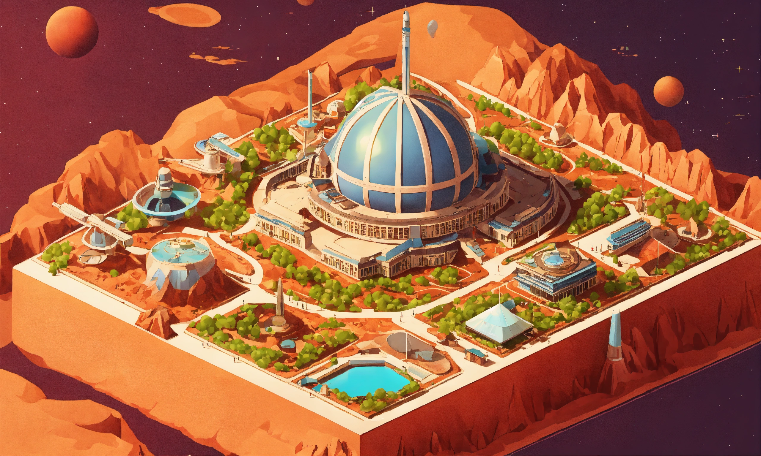 Retrofuturistic world's fair exhibition on mars
