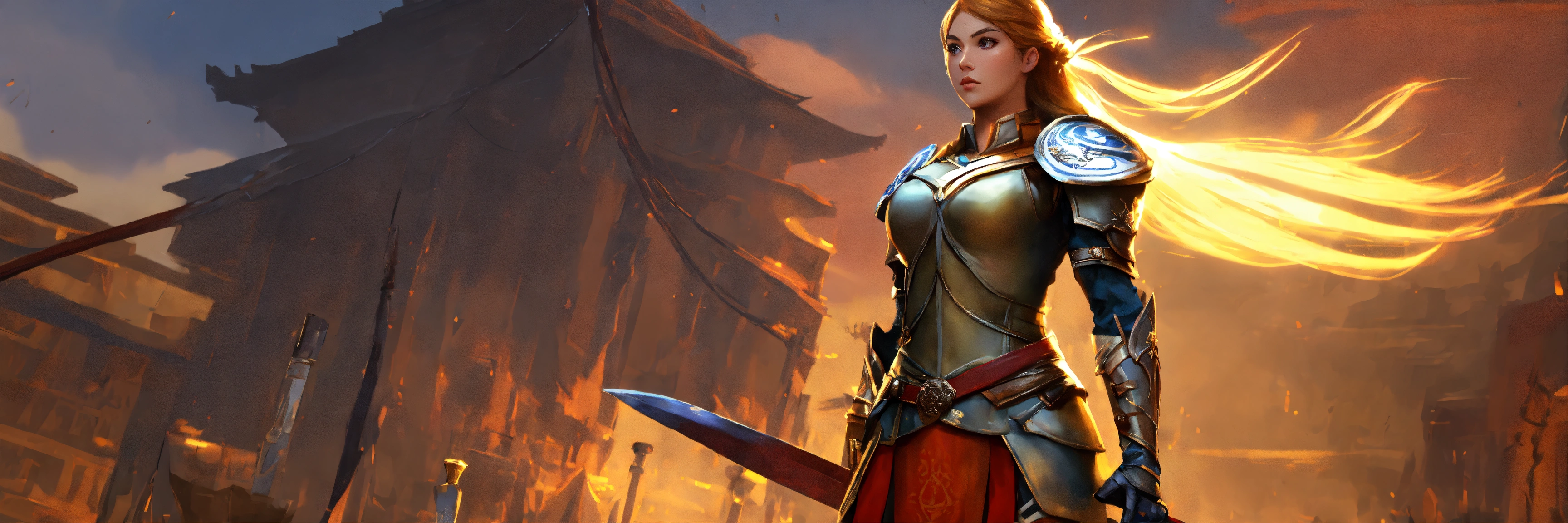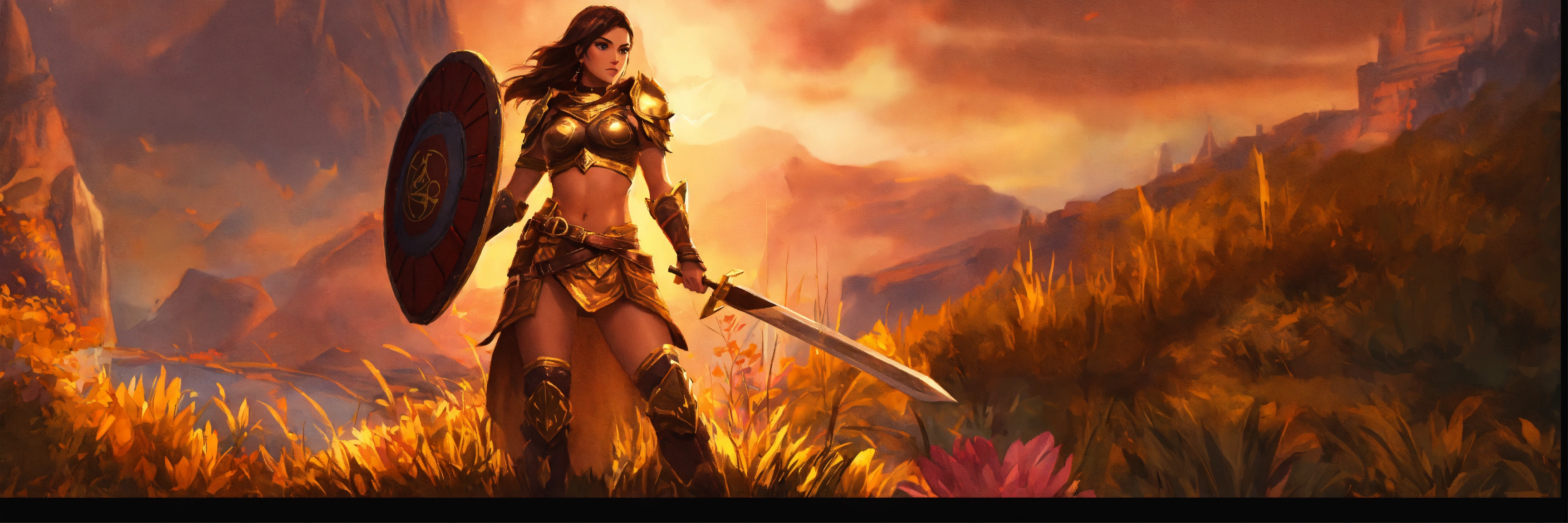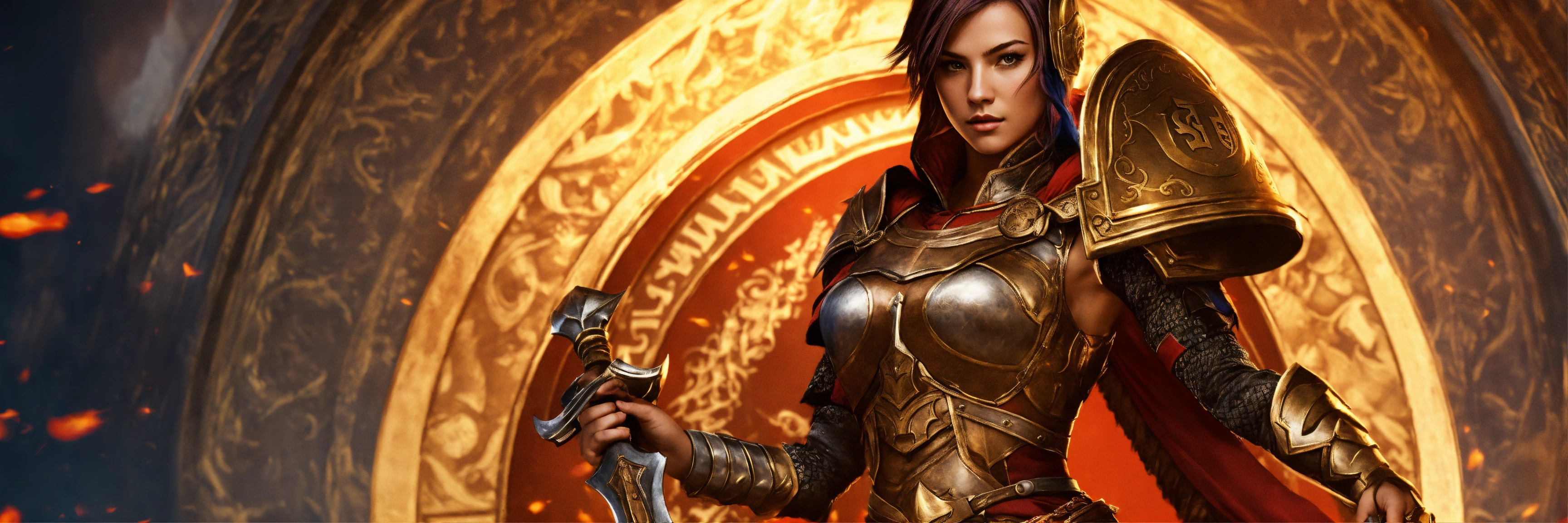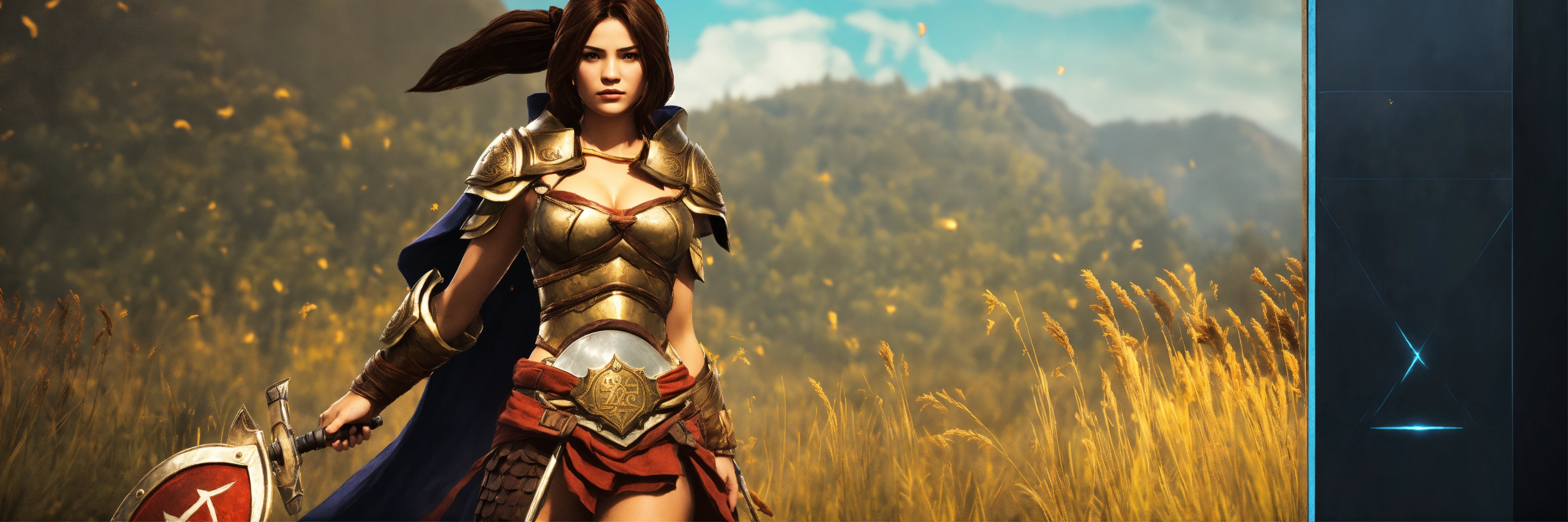 -game -banner -female warrior -shield with bitcoun logo in the hands
