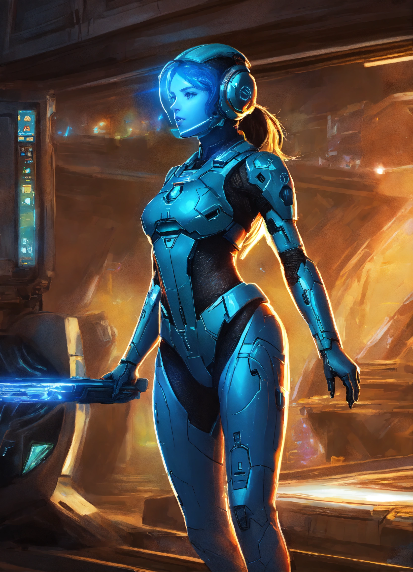 Cortana hologram from halo with headpones on