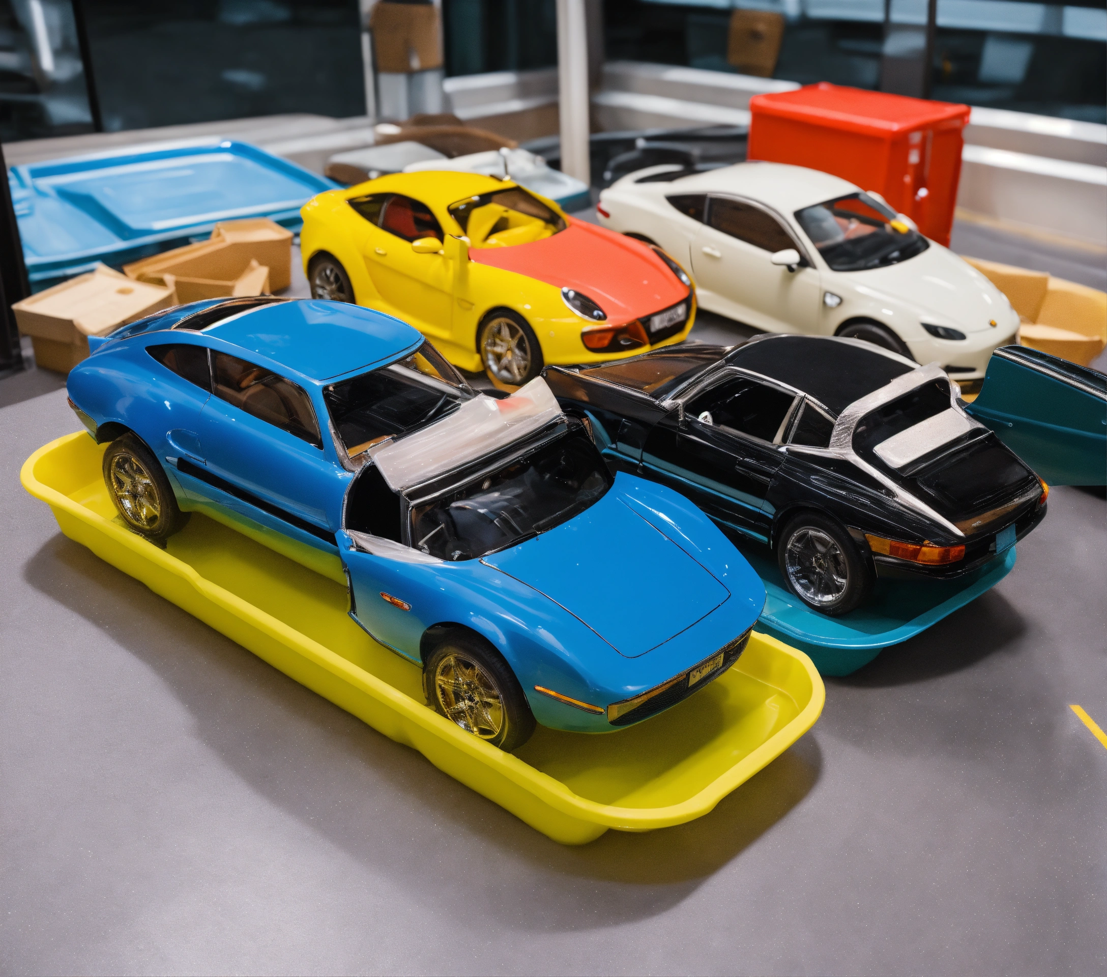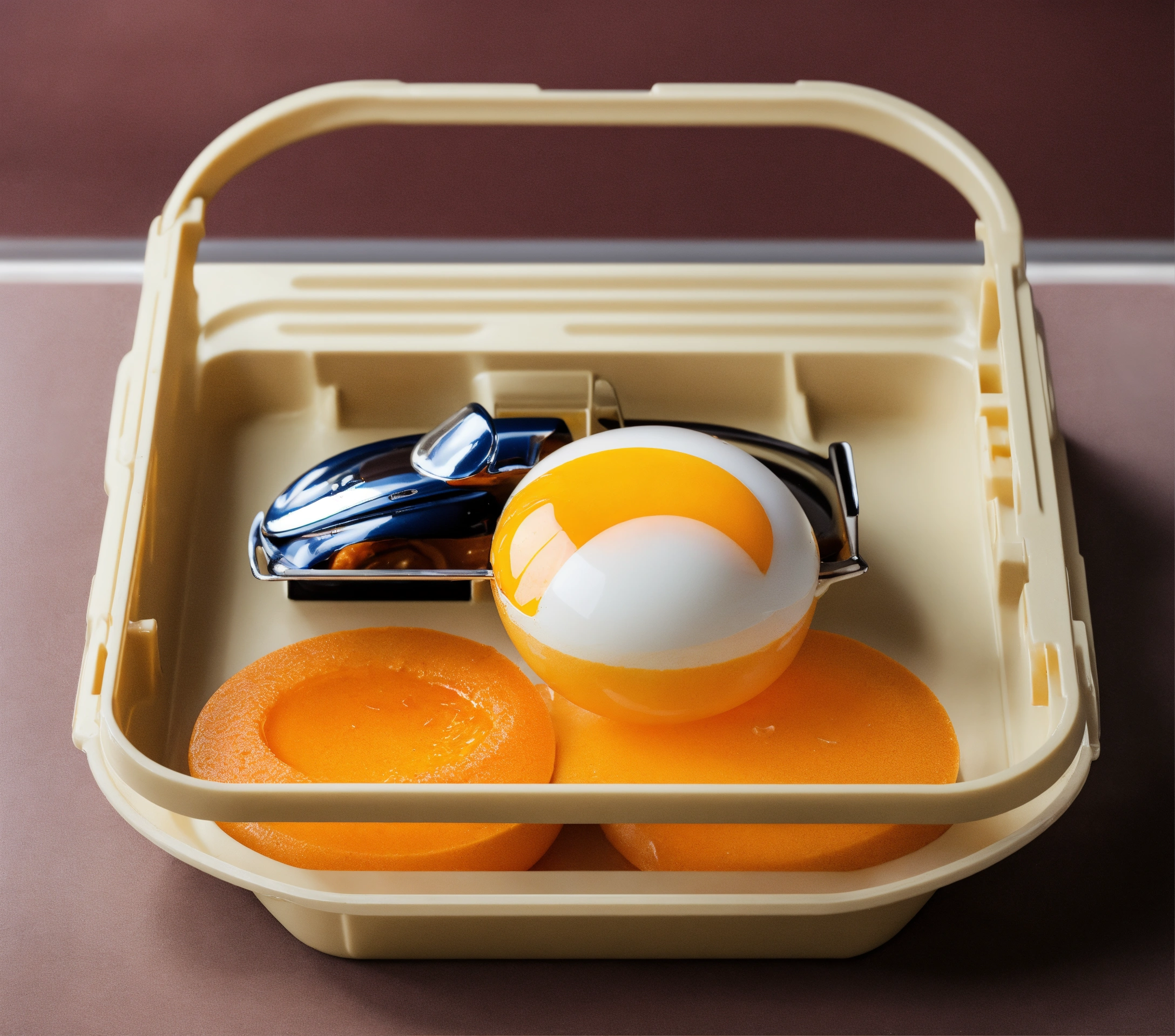 One plastic tray with half egg shape in lift and car shape in right side