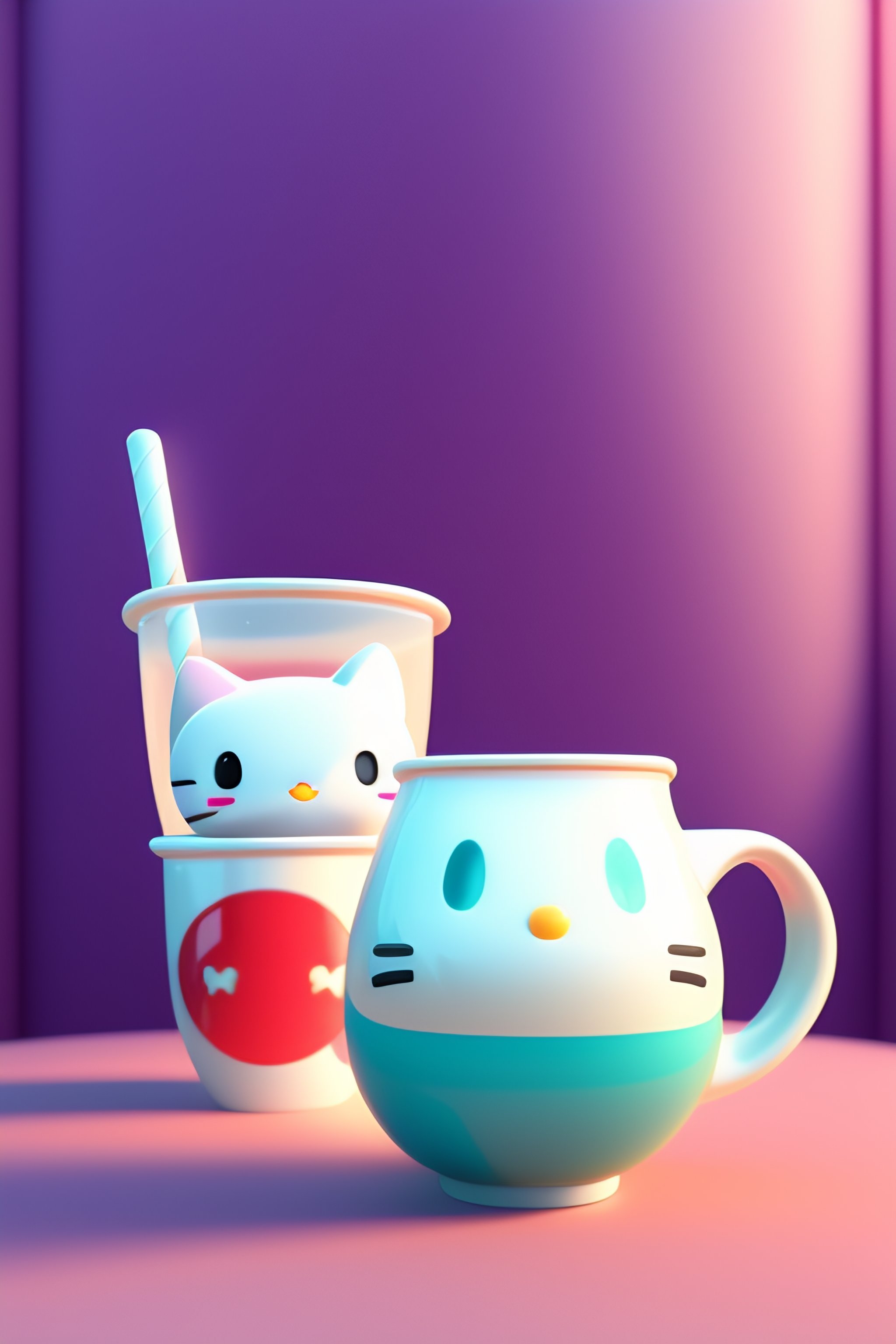 Happy cute hello kitty and cat cartoon character in old disney style in 2d, milk cup, the universe background, hdr, ray tracing, global illumination, unreal engine 5