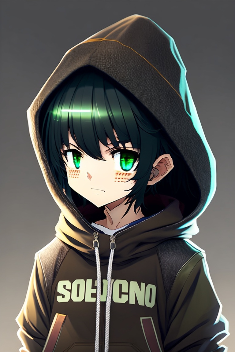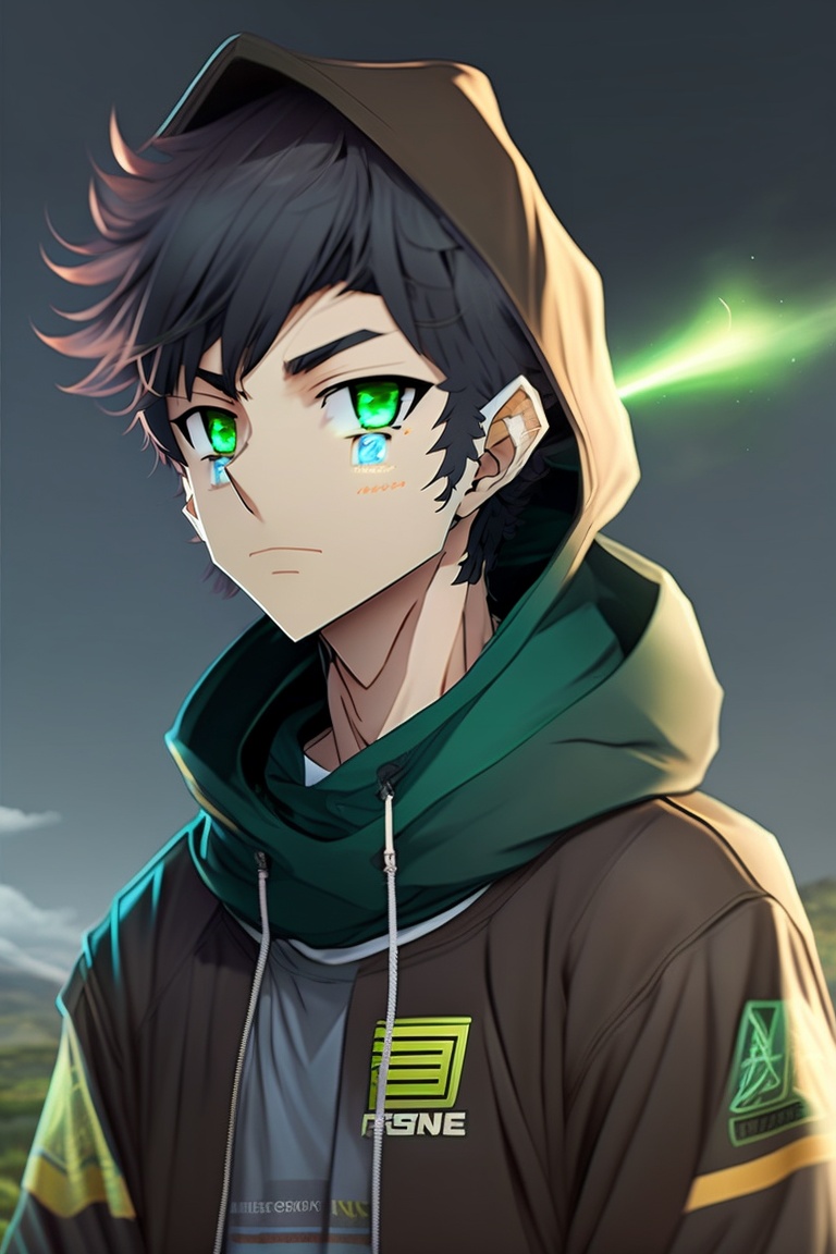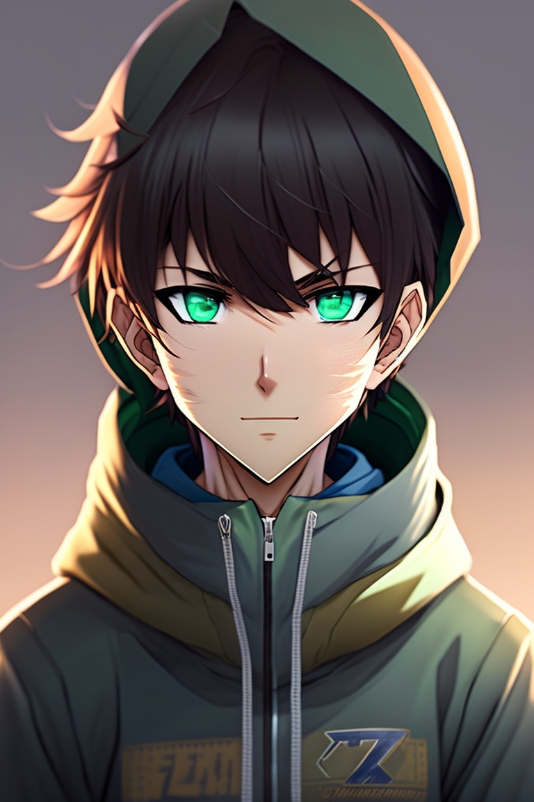 A anime brown boy with green eyes and a bone mouth