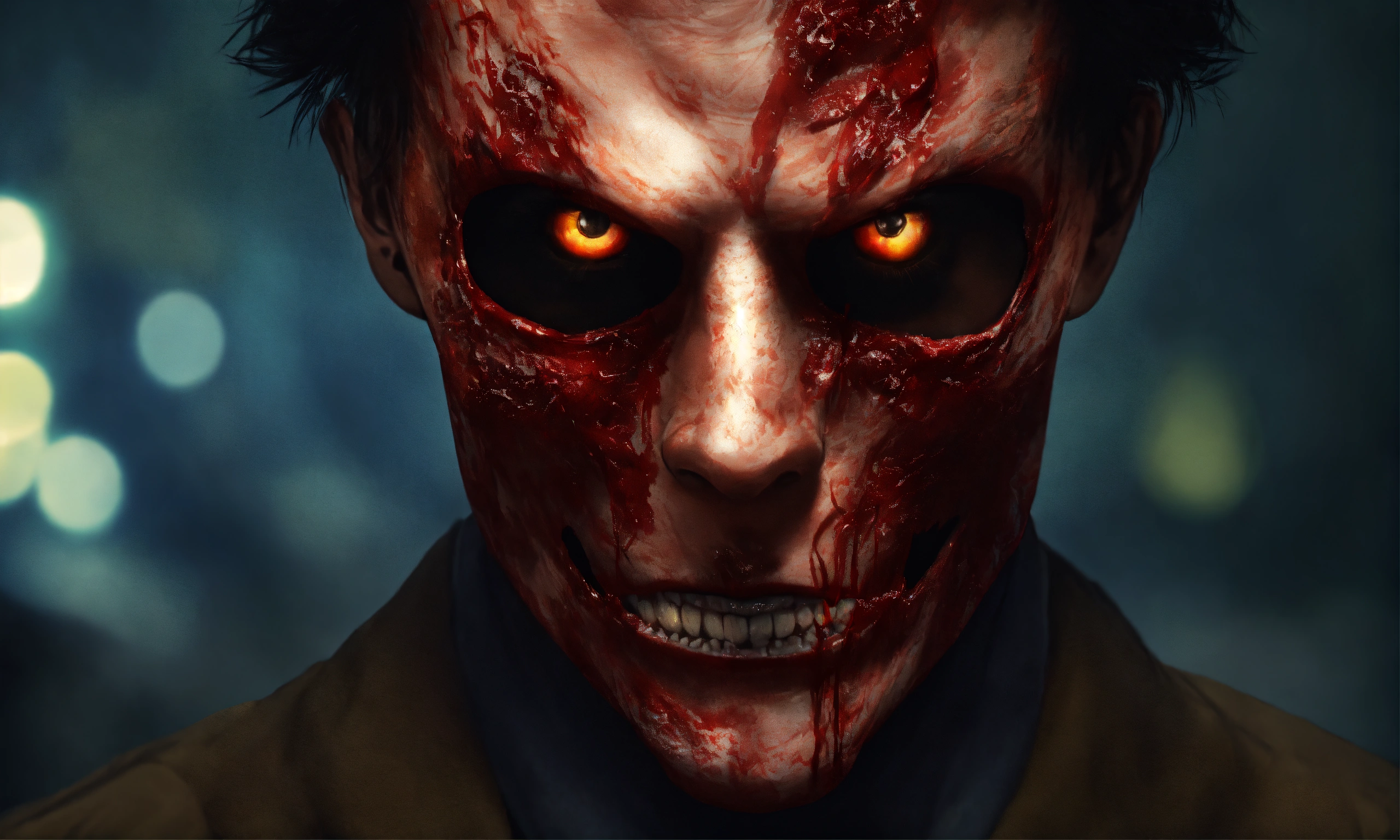Create a realistic picture of a psychopath with a scary face