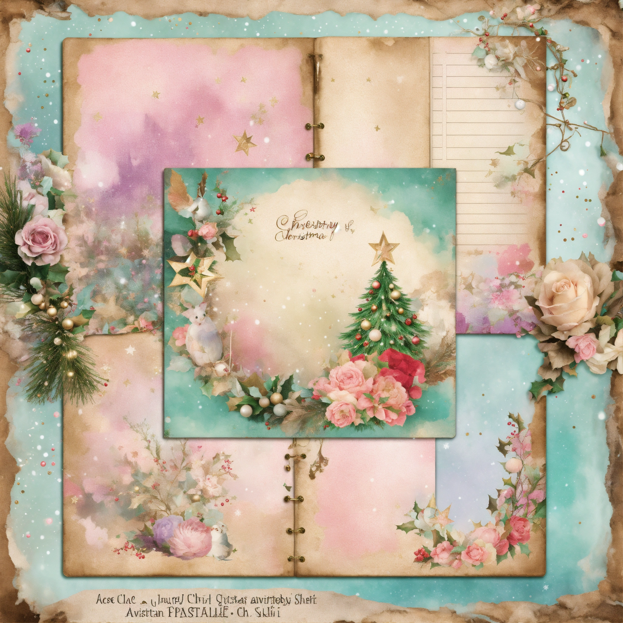 Shabby chic dreamy mist pastel junk journals christmas adventjunk journal digital kit, printable collage sheets, christmas advent add on junk journal, journal supplies, ephemera pages swirling magical fairytale abstract art style