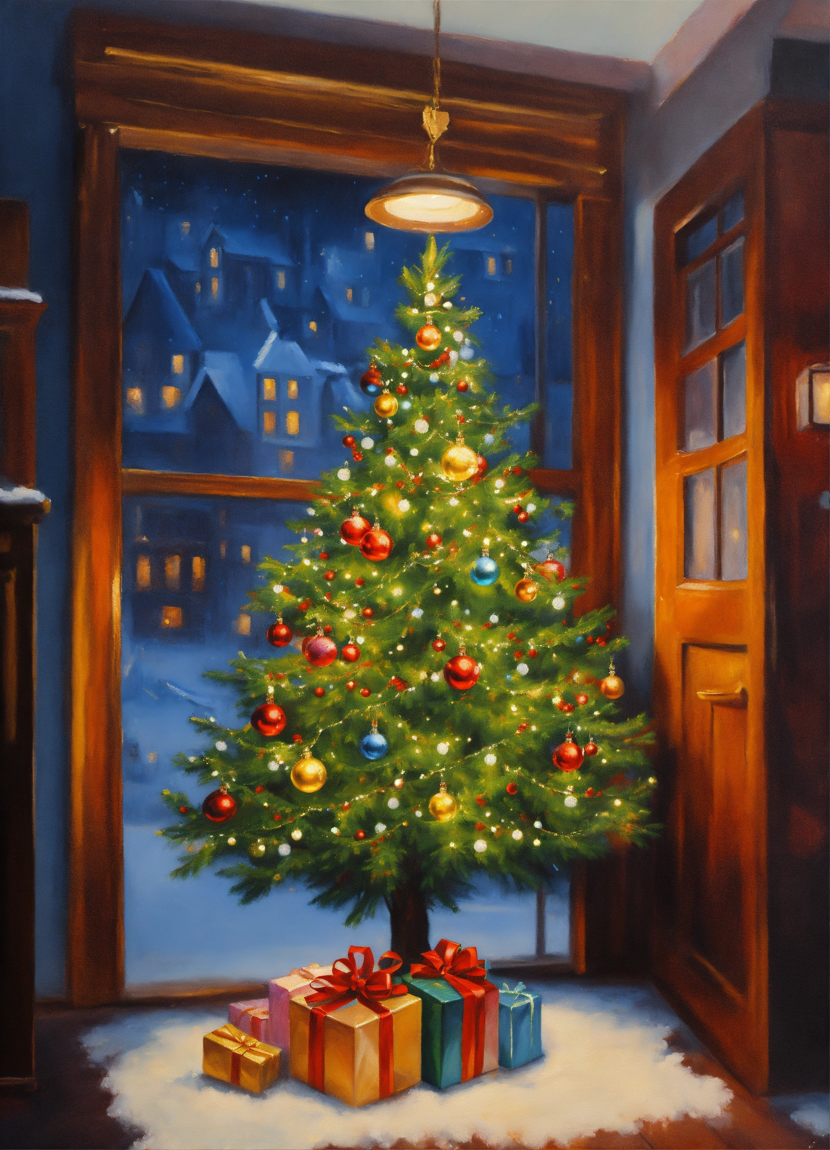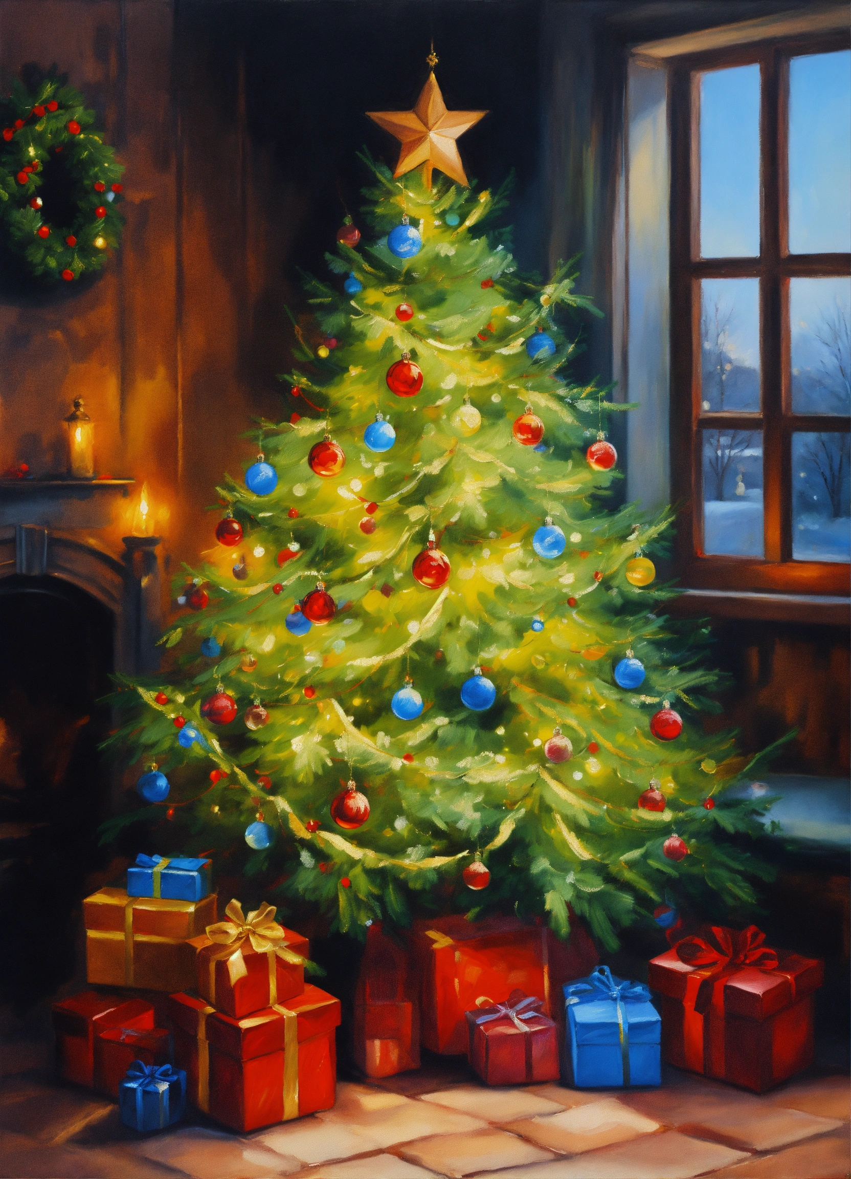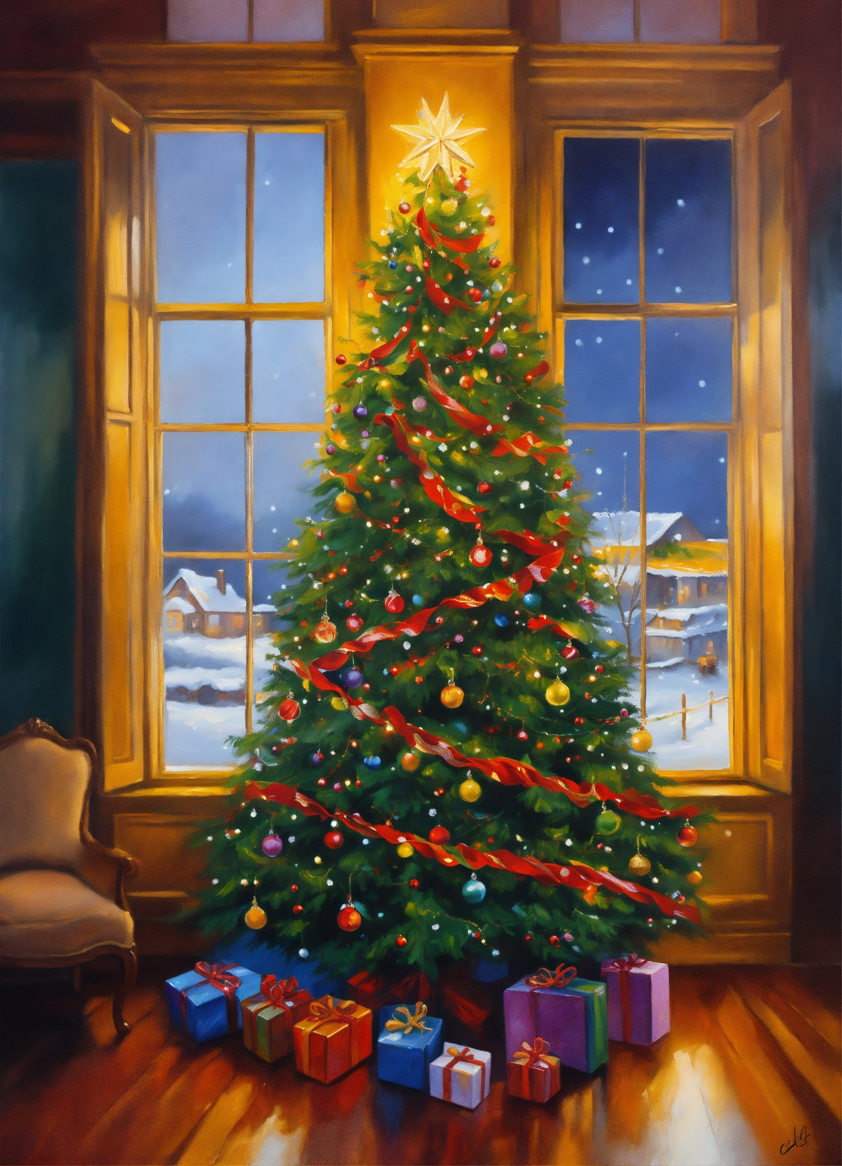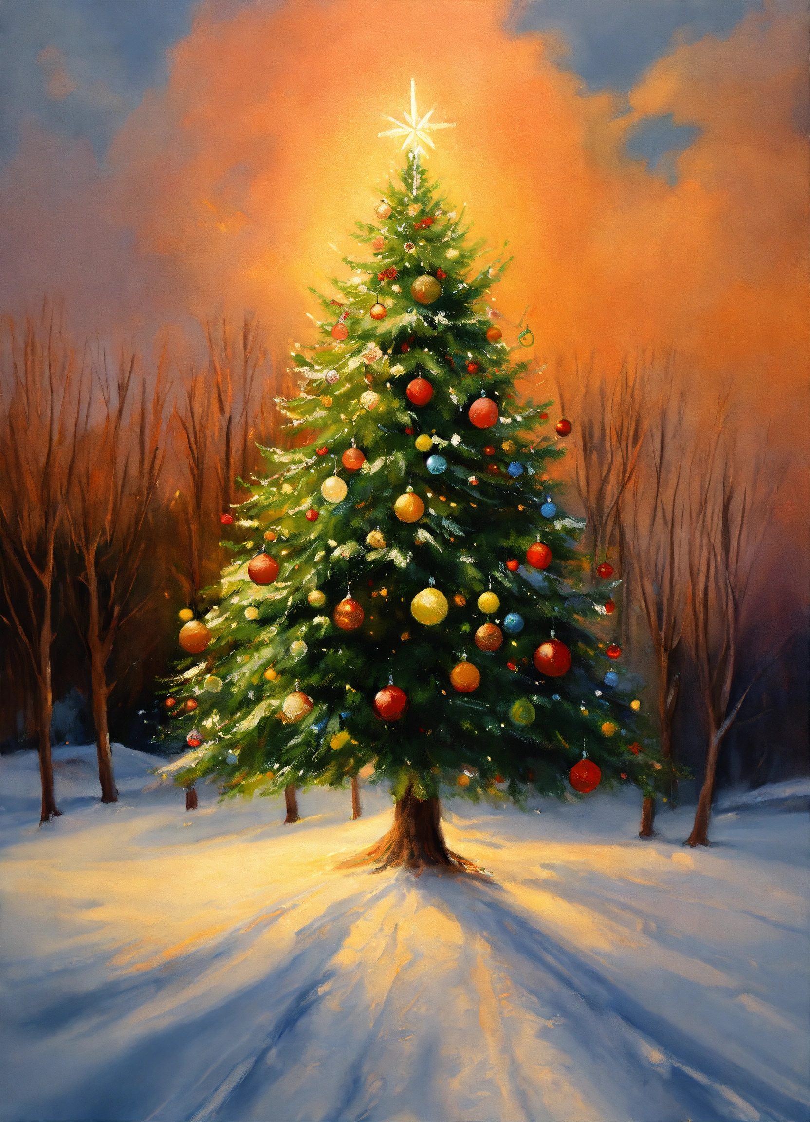 Christmas tree illustration oil painting