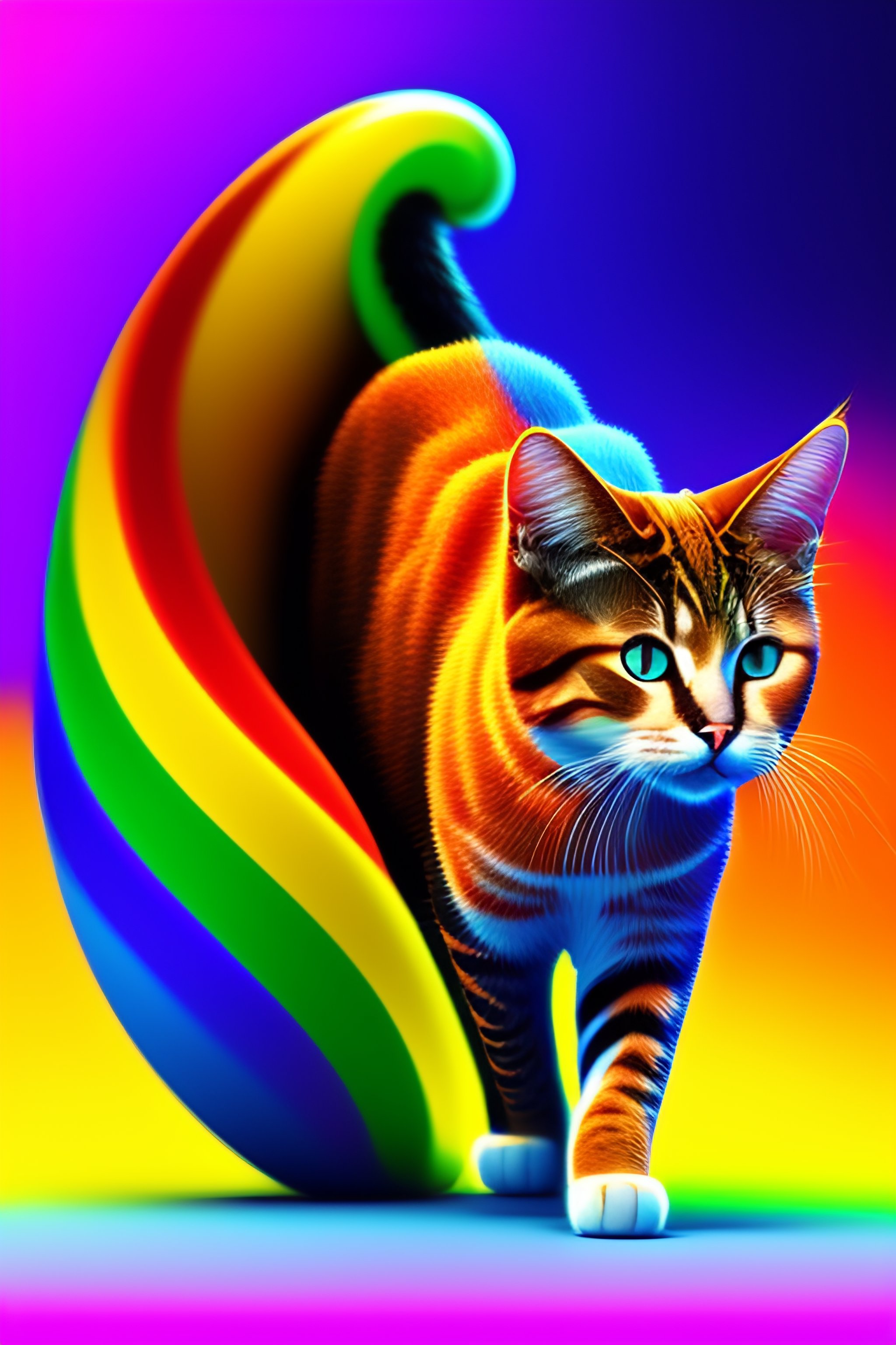 A cat walking on a rainbow