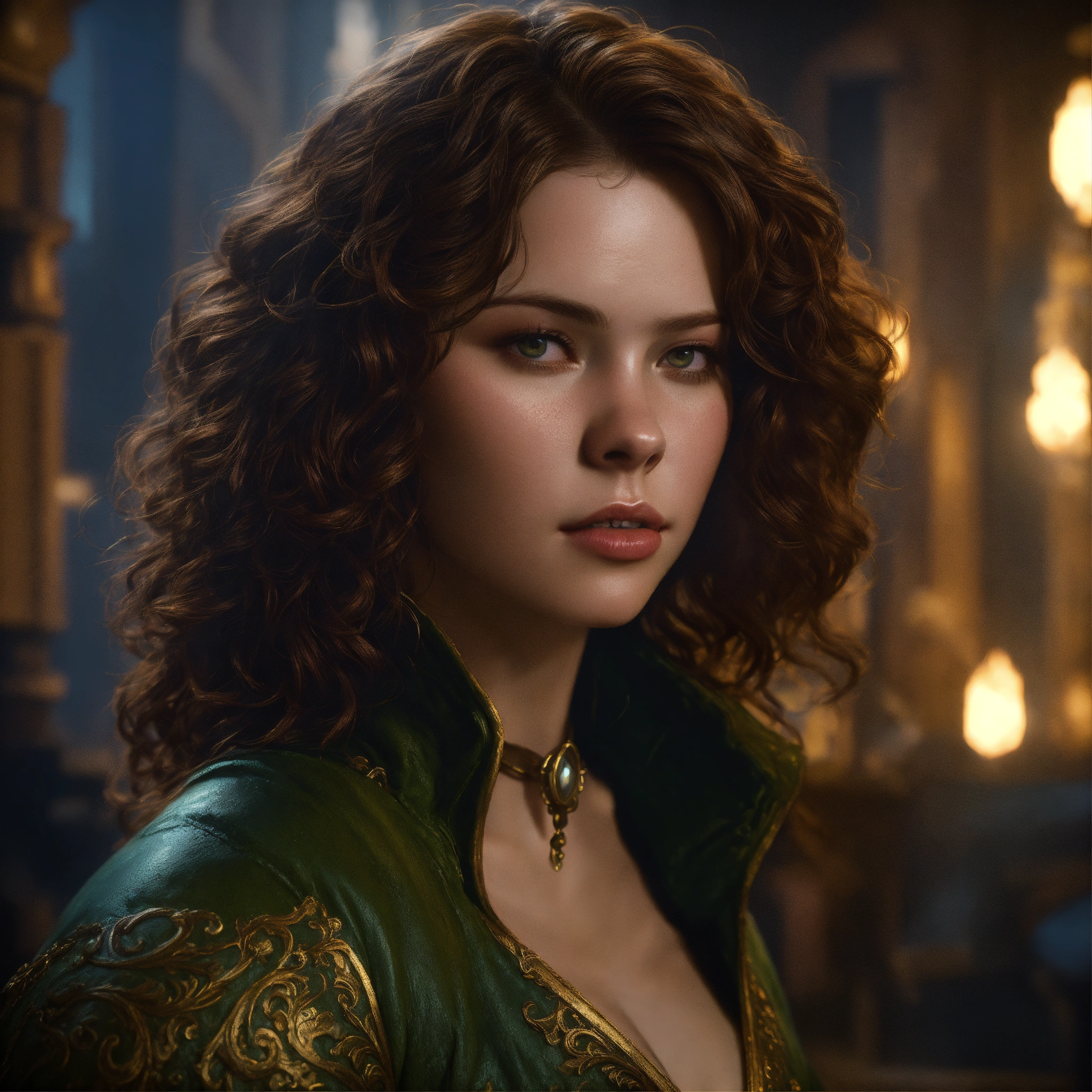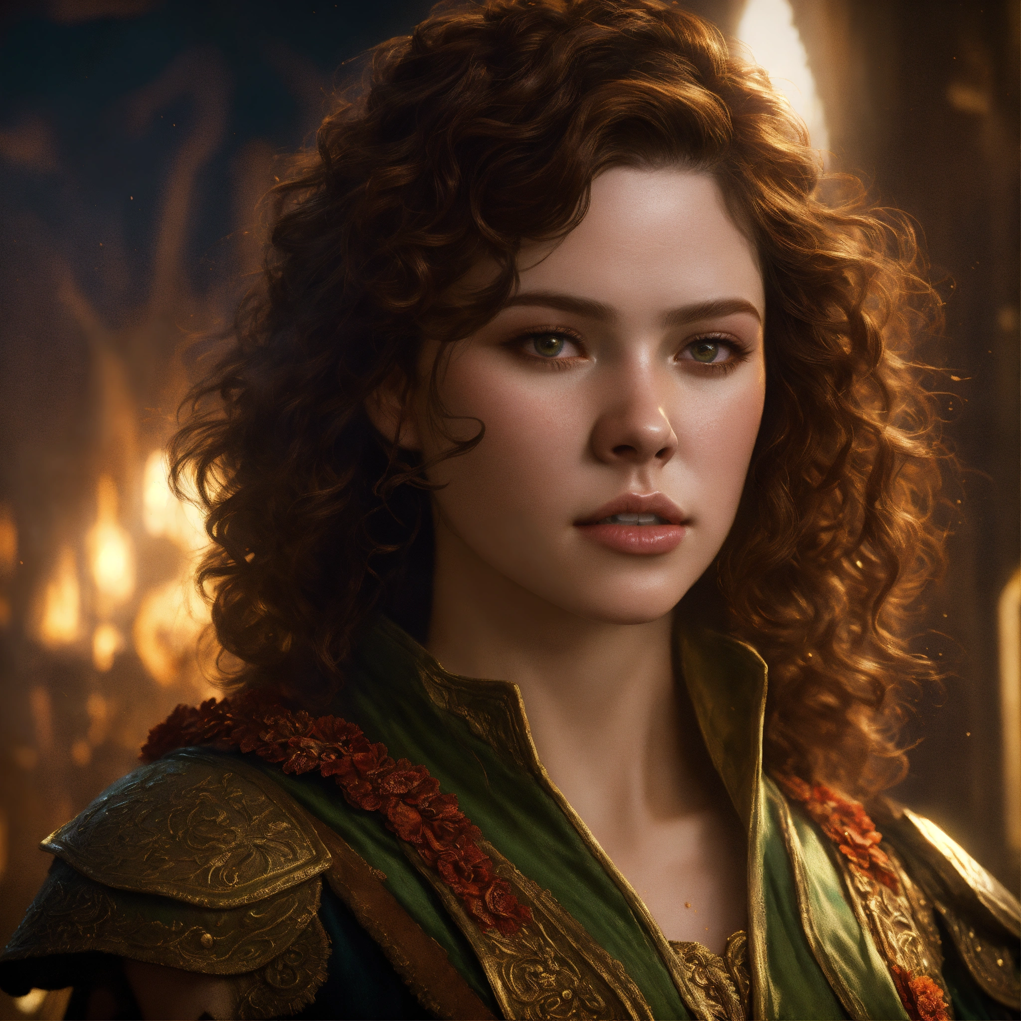 "conor leslie as fantasy rogue", curly hair, head and shoulders portrait, a masterpiece, 8k resolution, dark fantasy concept art, by greg rutkowski, dynamic lighting, hyperdetailed, intricately detailed, splash screen art, trending on artstation, deep color, unreal engine, volumetric lighting, alphonse mucha, jordan grimmer