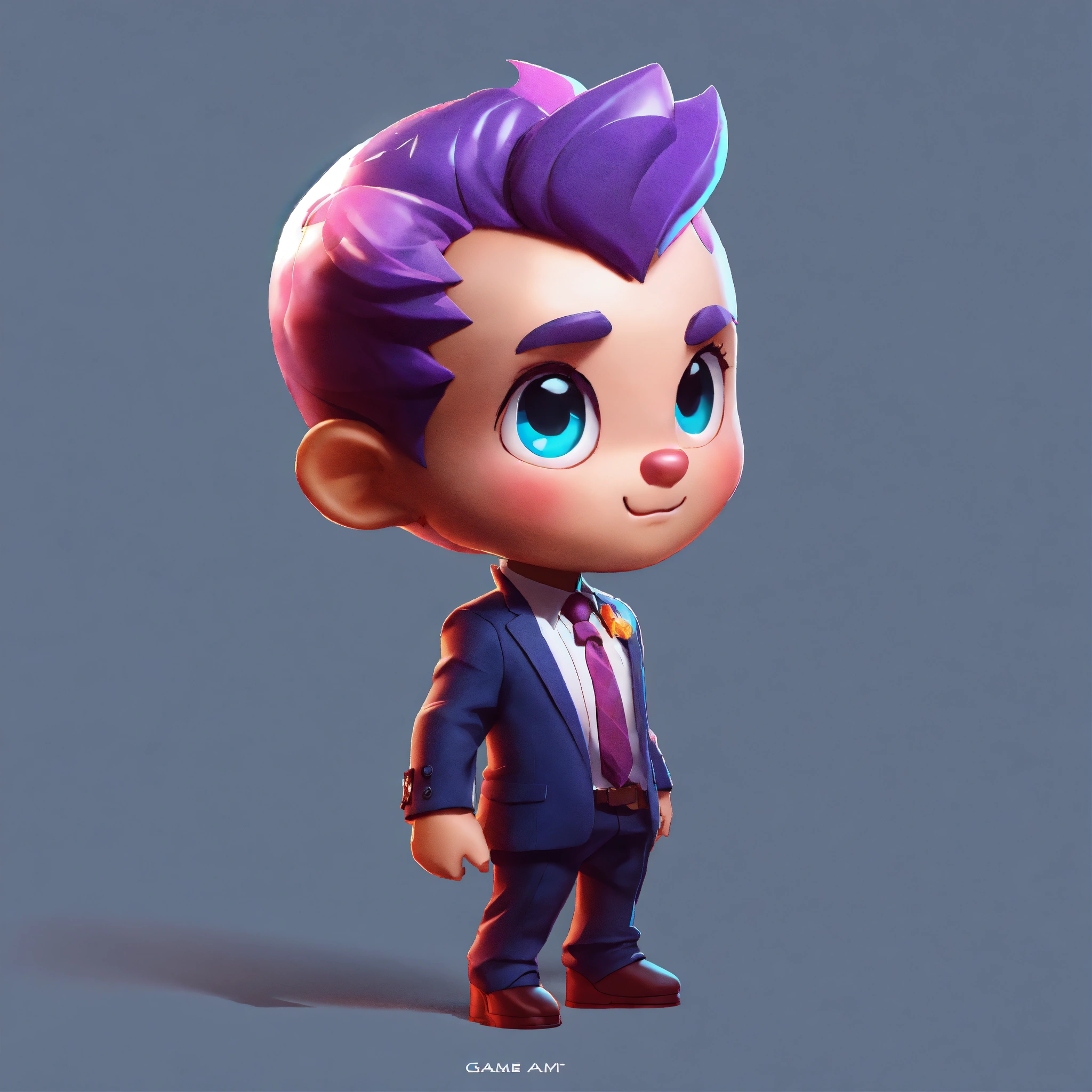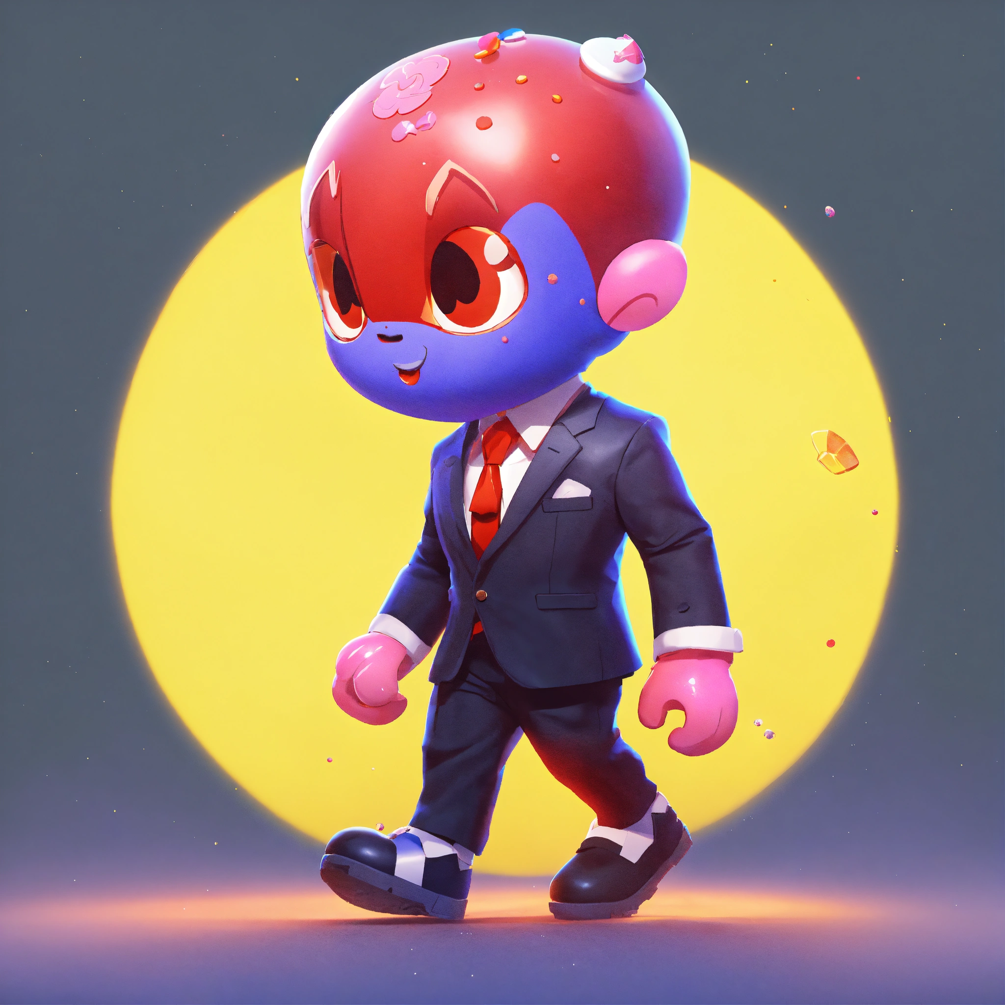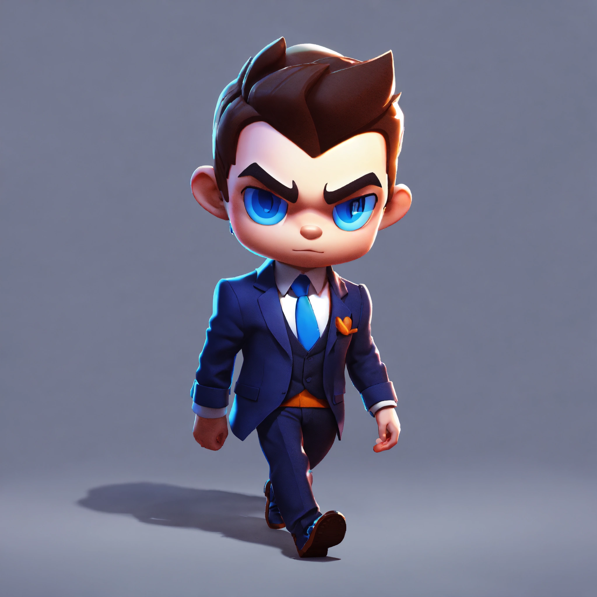 Game art, concept art, boy, suit, evil, walking, sideview, full body view, blank background, chibi proportions, artstyle from candy crush, 3d, cell shade