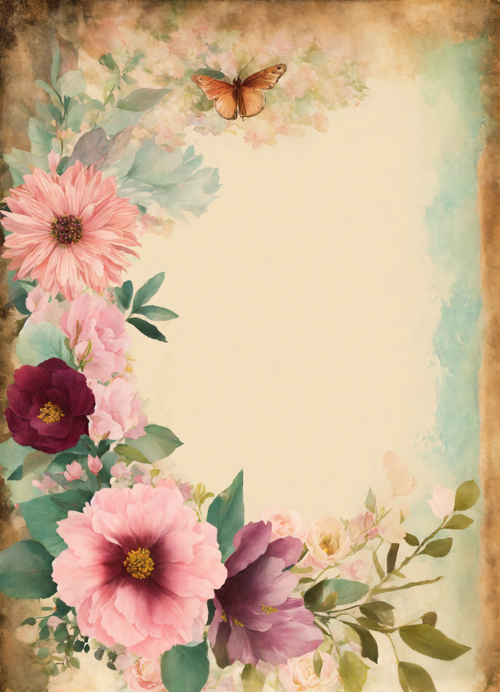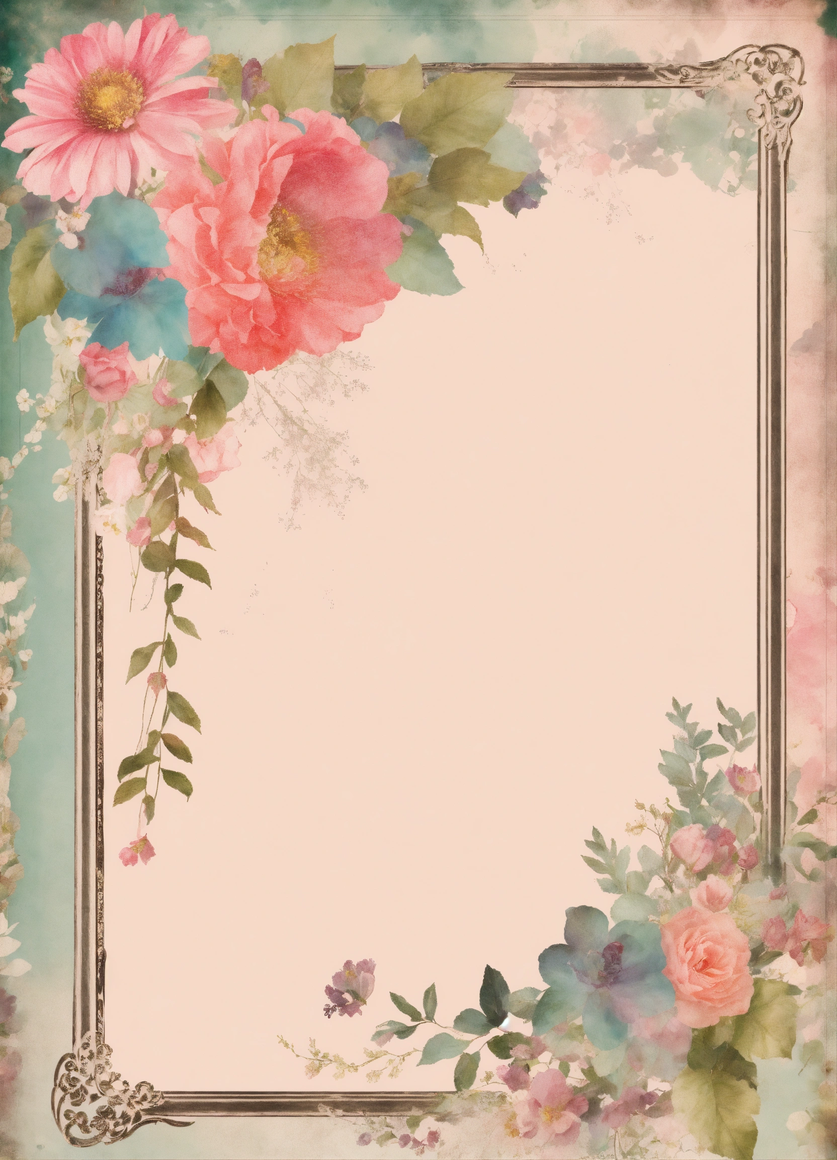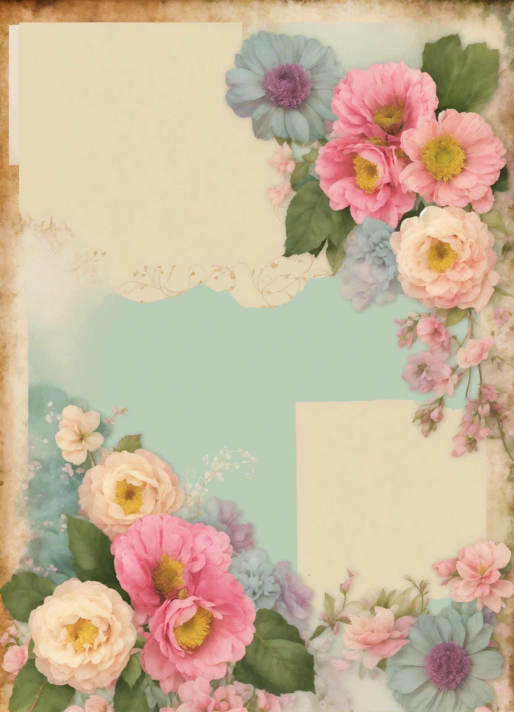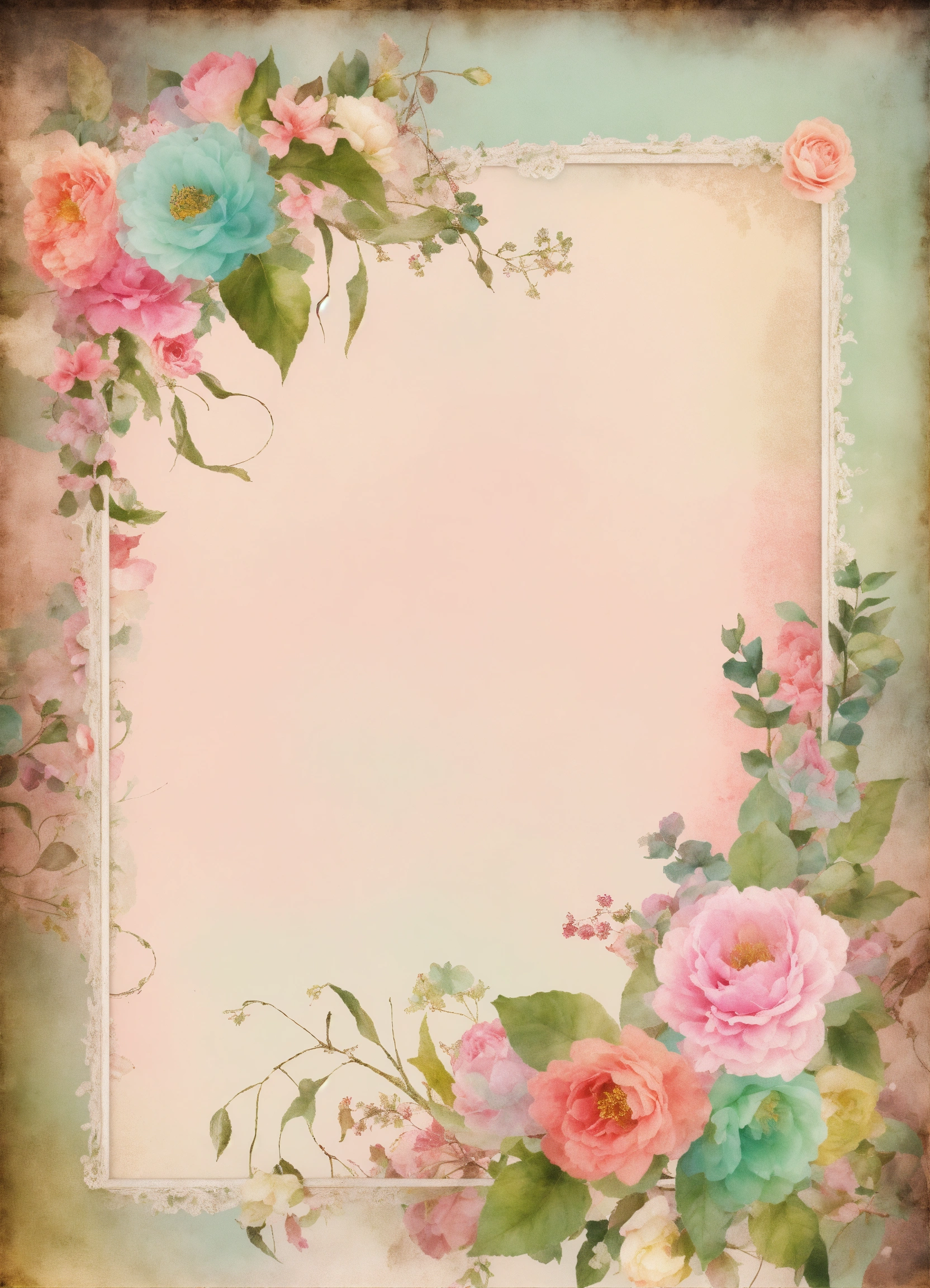 Shabby chic dreamy mist pastel junk journals "generate ten unique wreath frames with a dark floral theme for a junk journal kit. these frames should be printable and suitable for use in grunge-style scrapbooking projects. each frame should feature retro flower designs and have a vintage feel. ensure that these digital frames are provided as printable, high-resolution files, and can be used for commercial purposes." swirling magical fairytale abstract art style