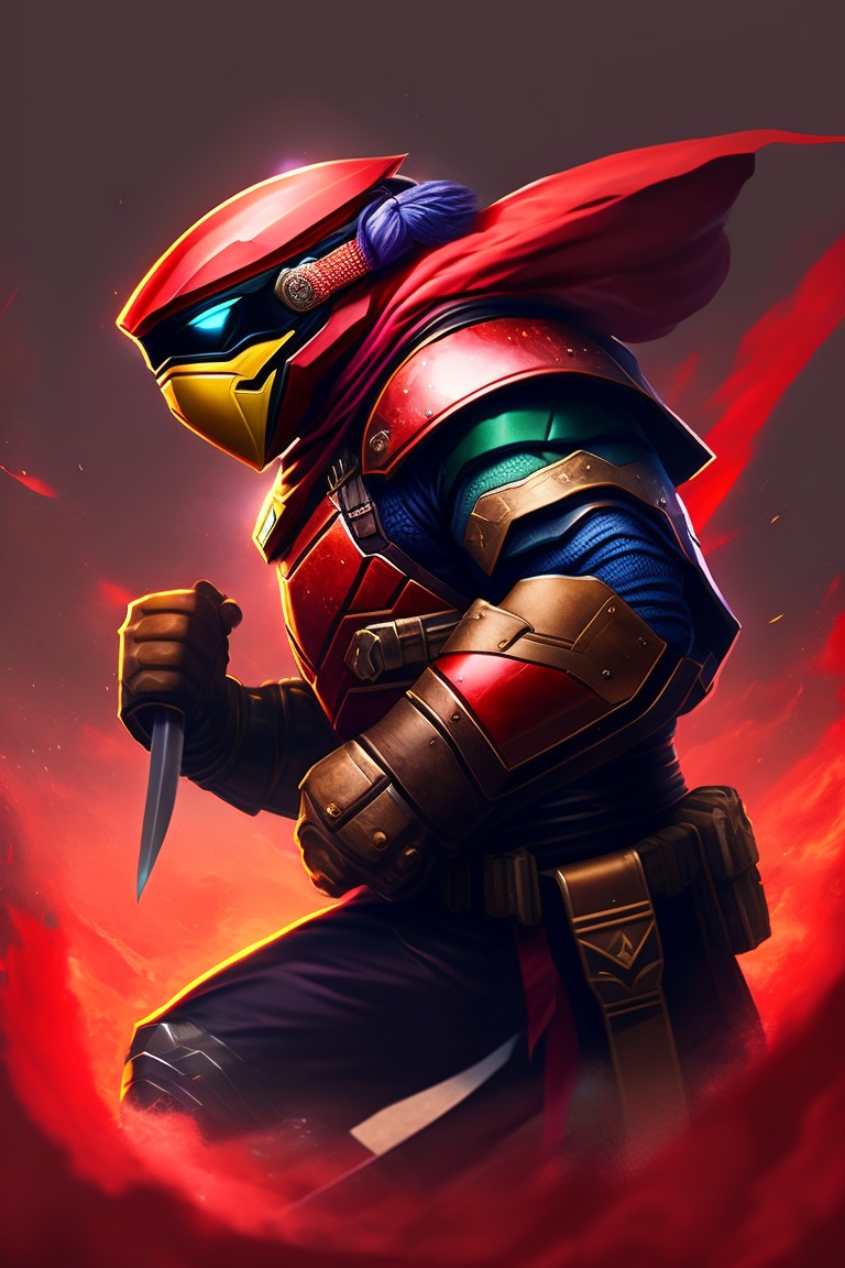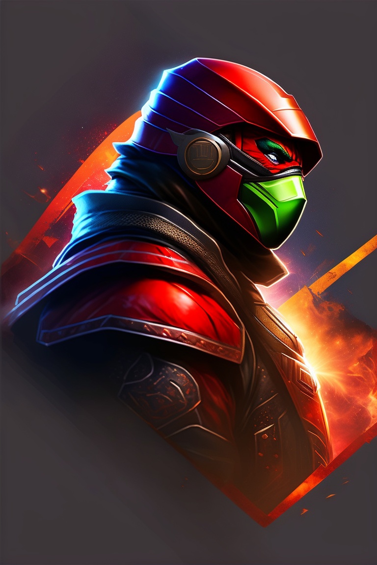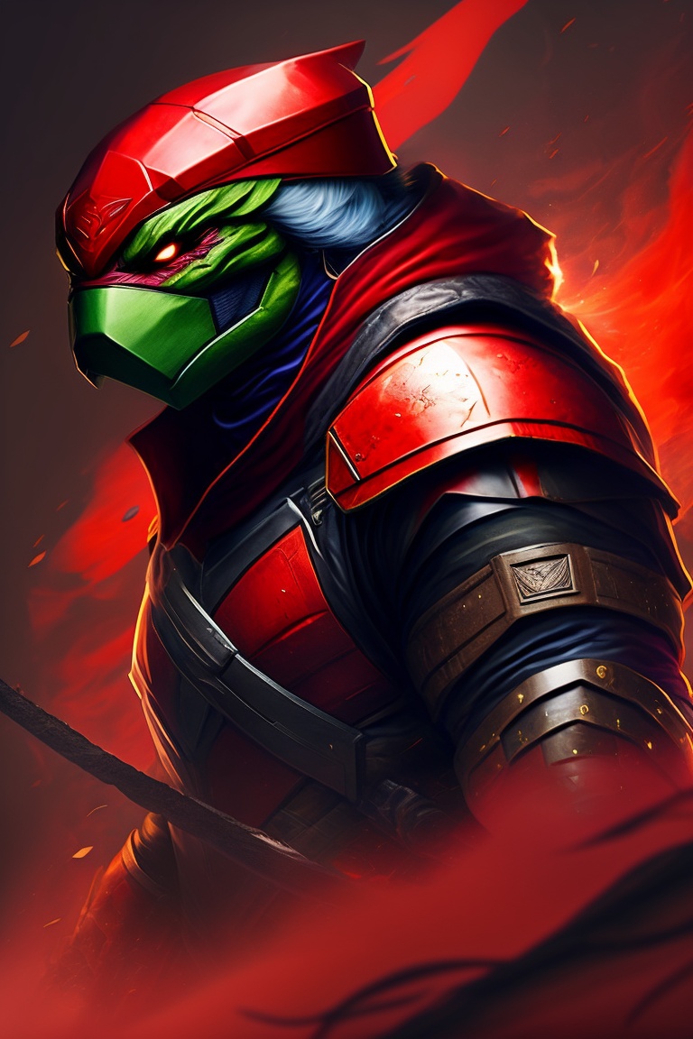 Red ninja turtle fused with scorpion mortal kombat with exploding background