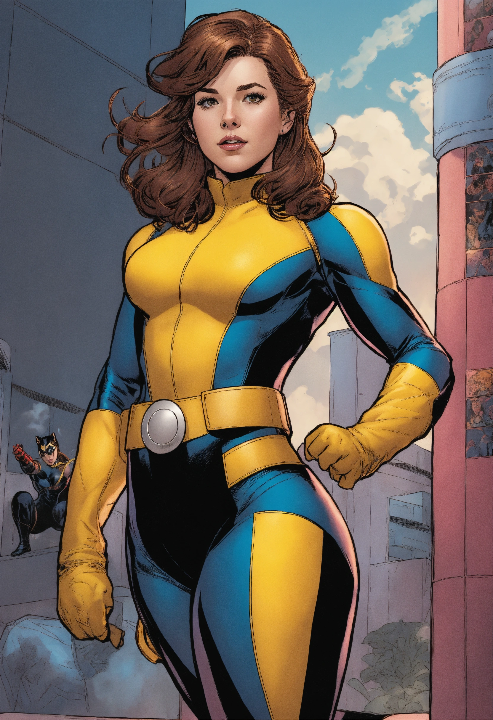 Kitty pryde from marvel comics wearing her superhero costume, she looks like a live action actress in a movie