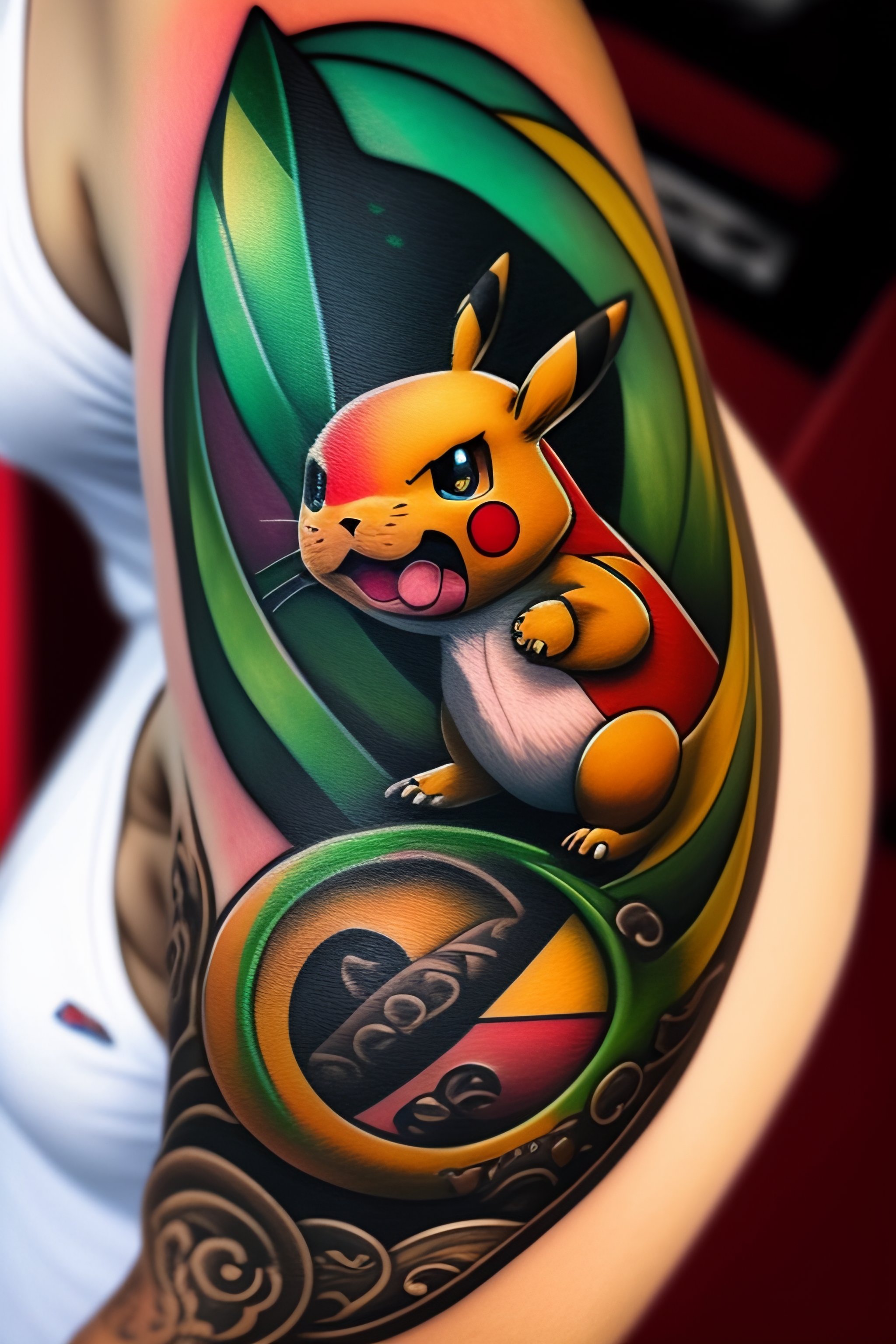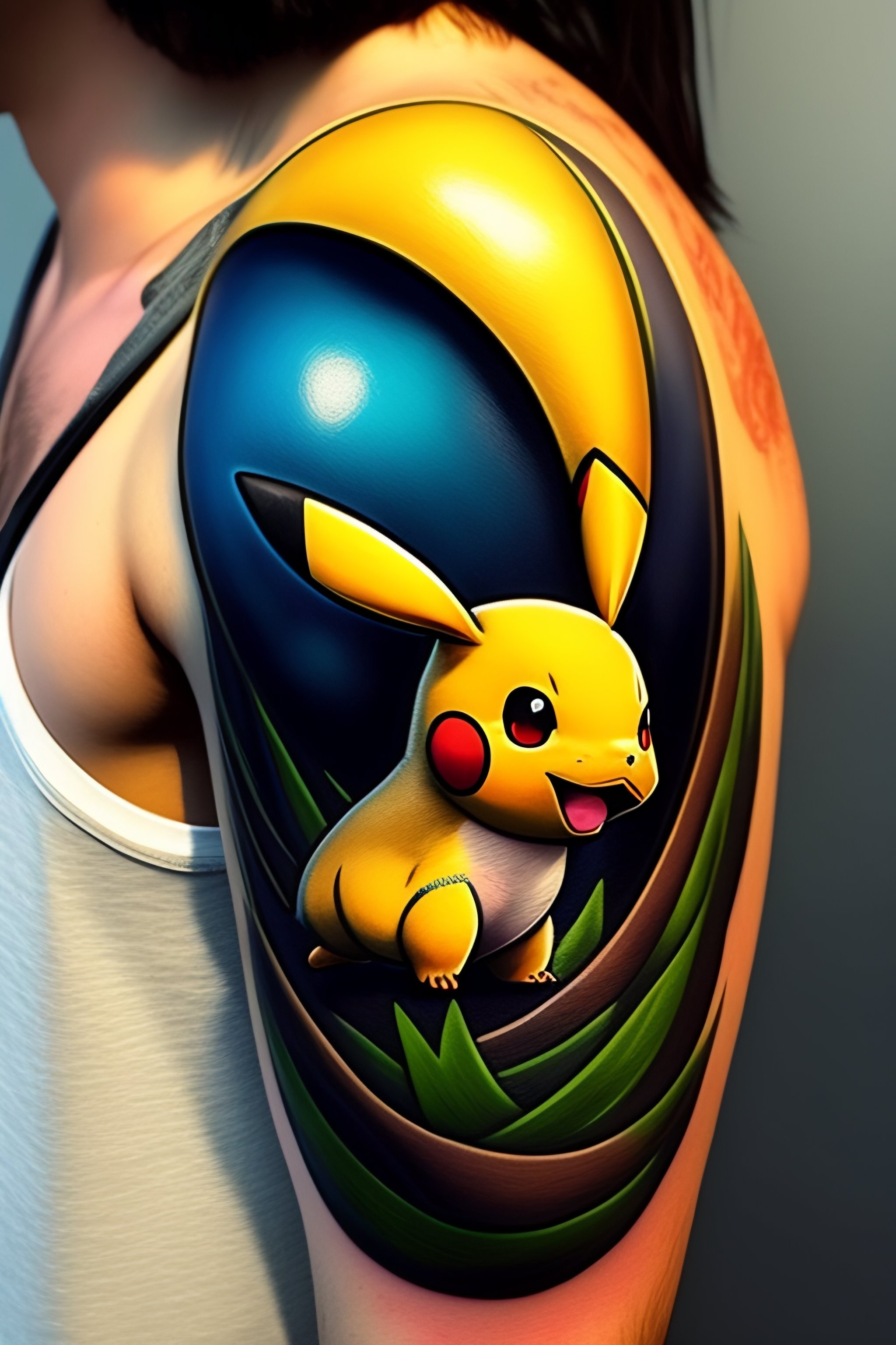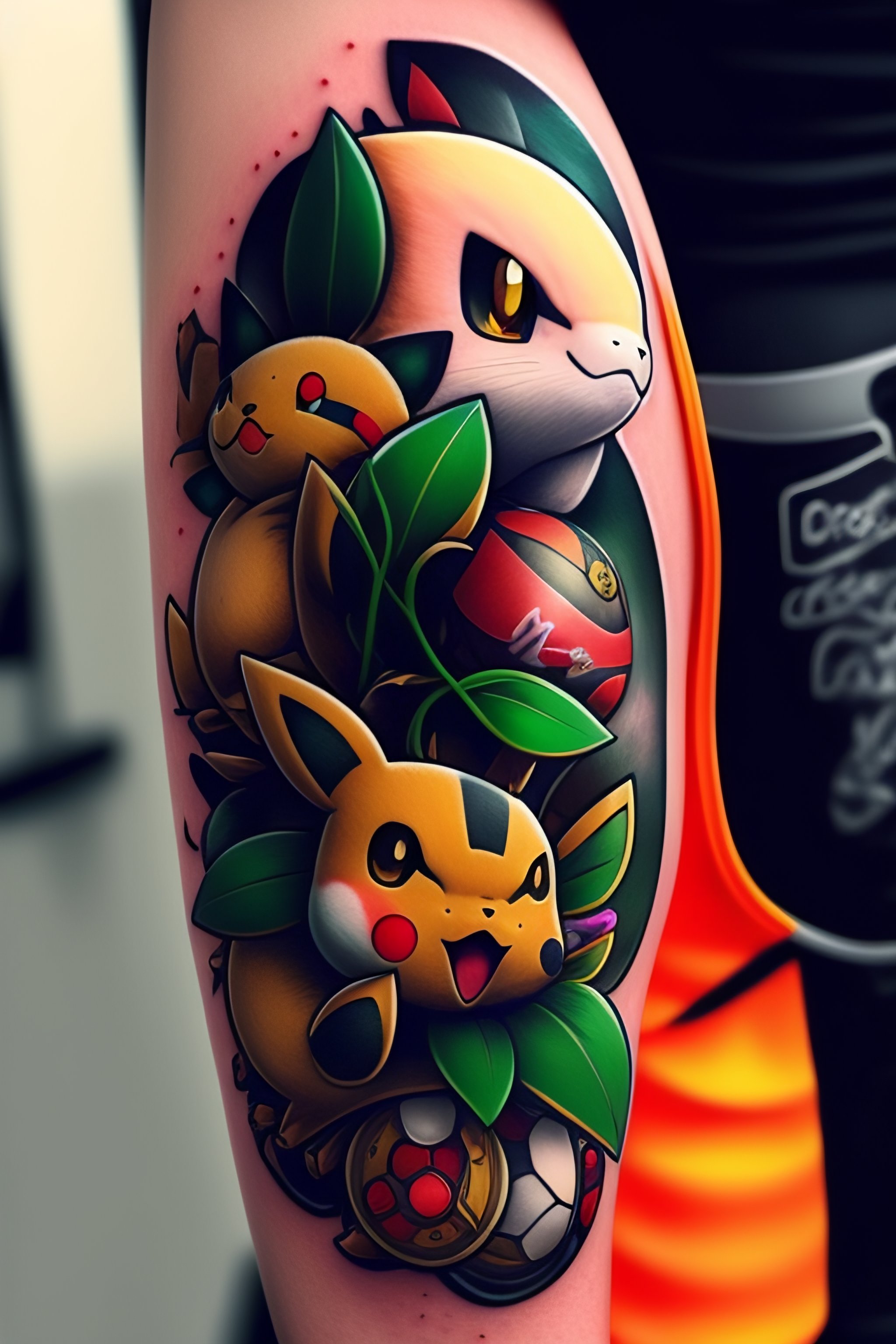 Pokemon themed design of a full arm tattoo