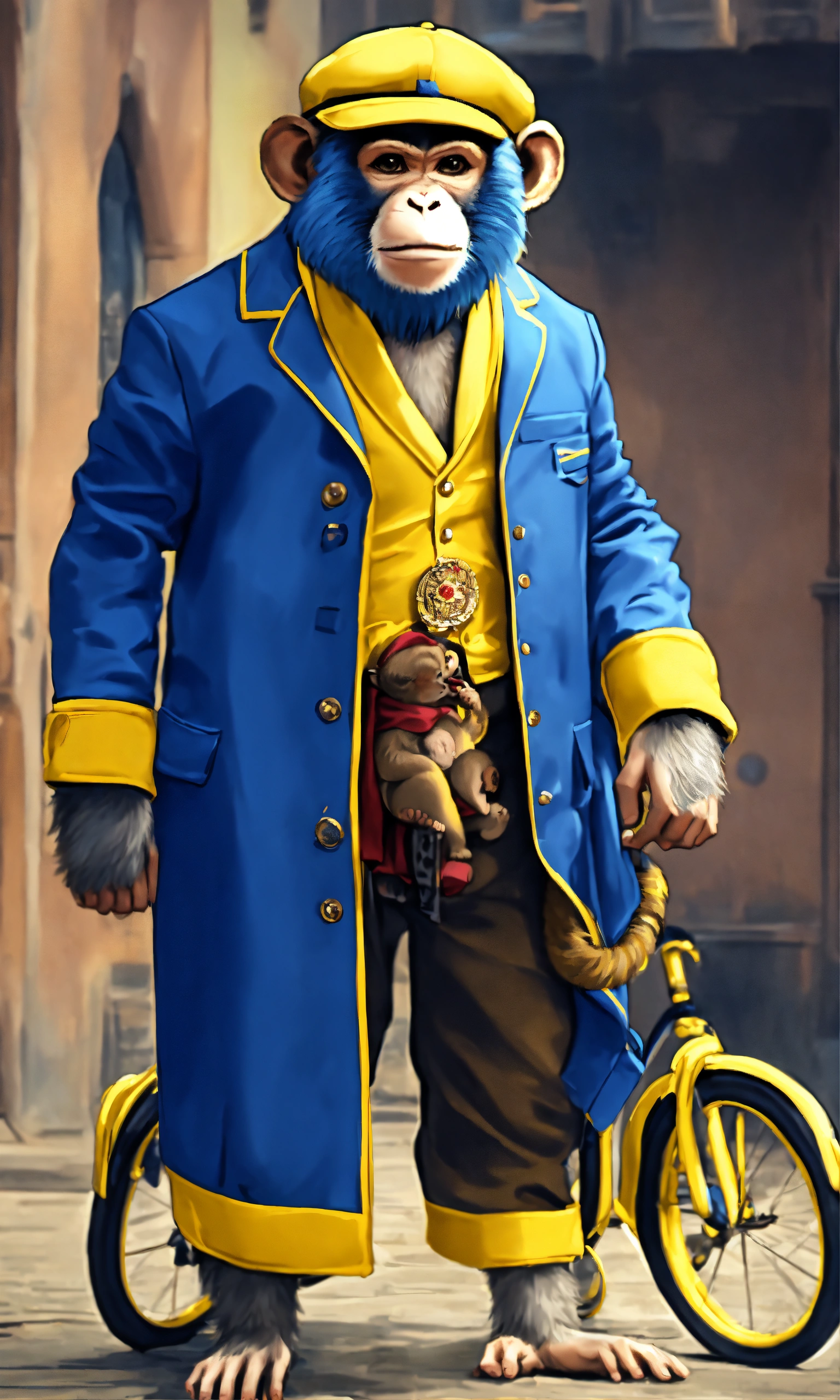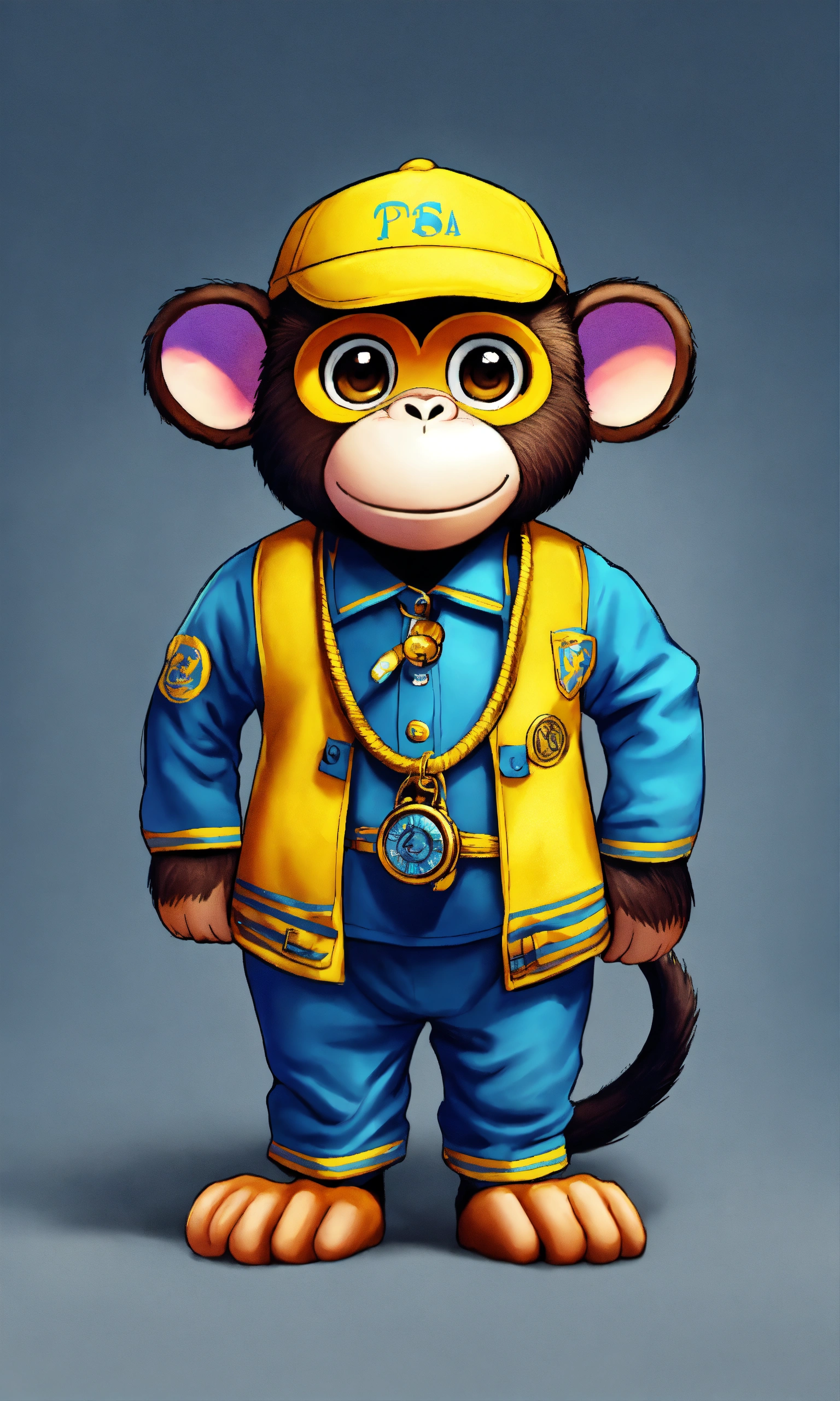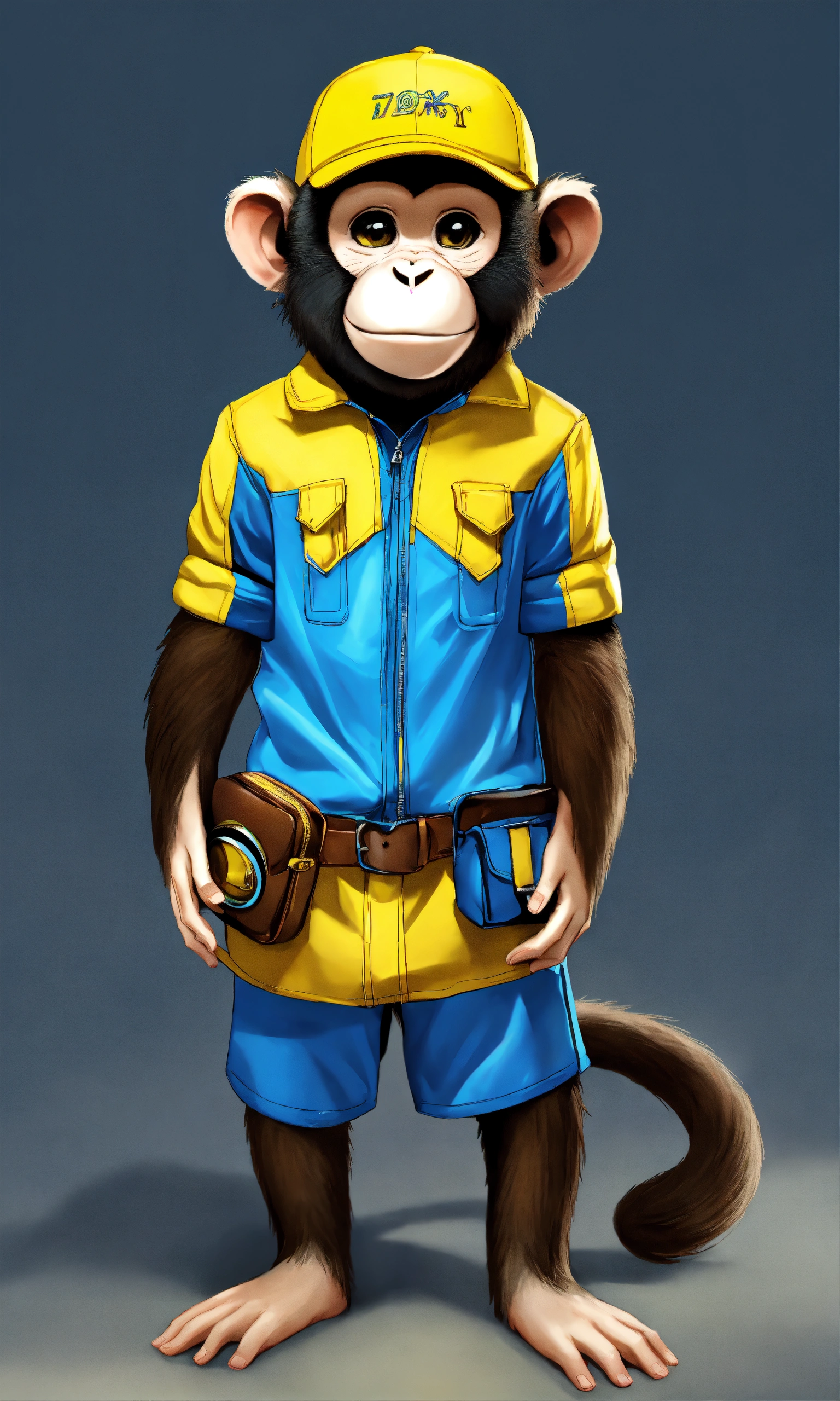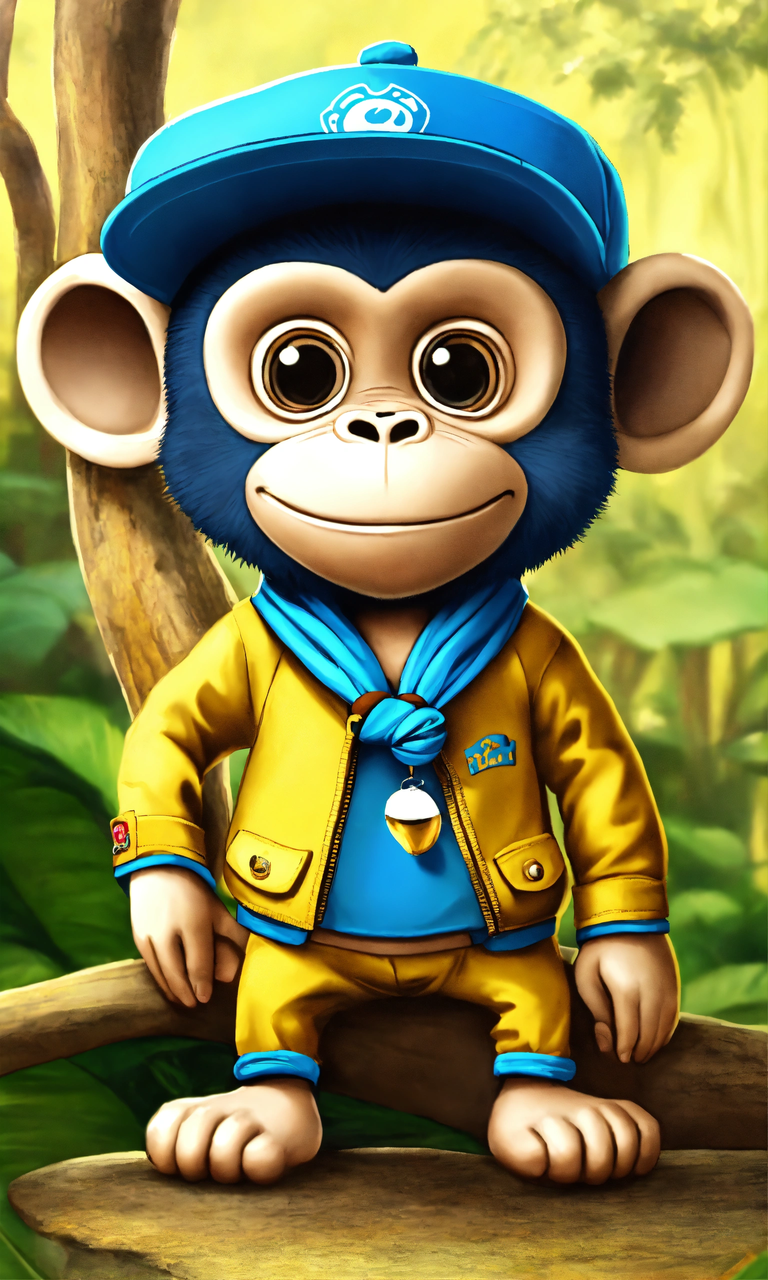 Cartoon monkey 3rd with human clothes use the monkey with the yellow and blue cap