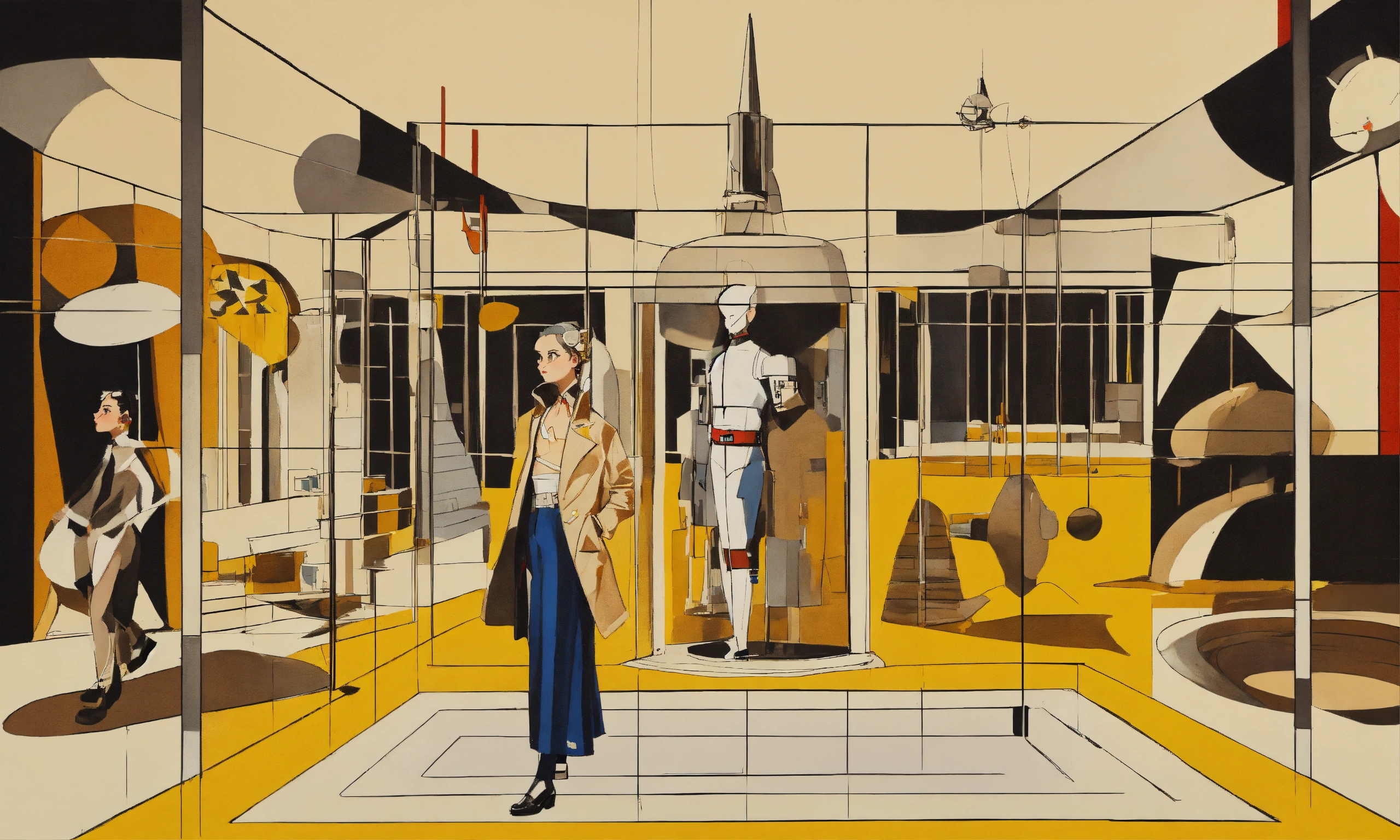 Bauhaus minimal painting, perspective shift structures, stellated ((cartooned)) fine artwork in frame, canvas lettering|figurine surreal amalgamation of limbs, dynamic dancing flow, drawing masterpiece, illustration of black jetsons, boondocks, dream “design rules everything around me” model chola american, pinup, neutral structure and overlap-sheen, cartoon futuristic, (french), twins photo of mixed and matched outfits, minimalism carousel collaged selects, nigo human made, isolated-white-cubic space creole, slate beige black, ink|smoke, surprise highlights, monochrome, sfmoma, hyperspective playboy-funnies
