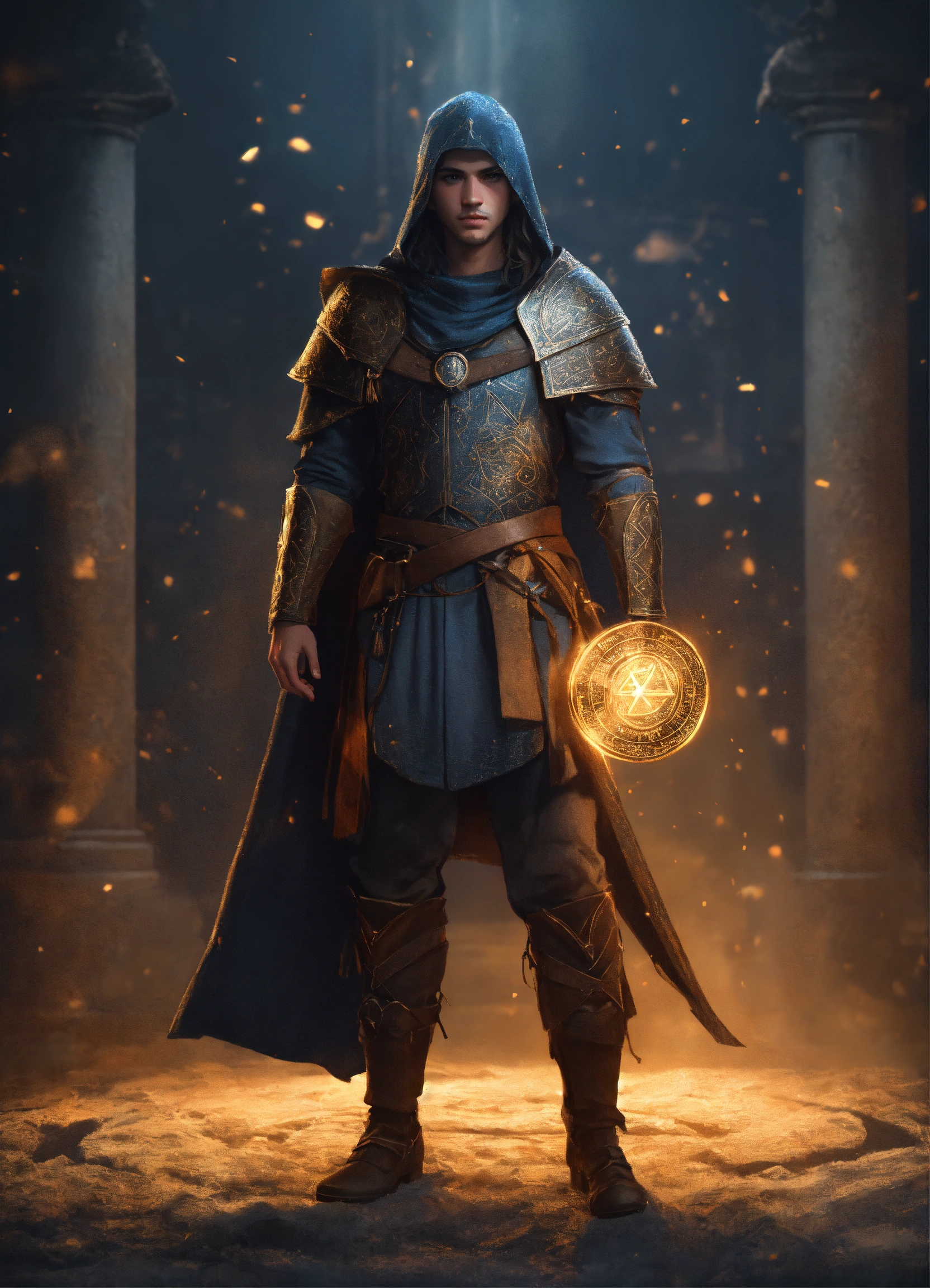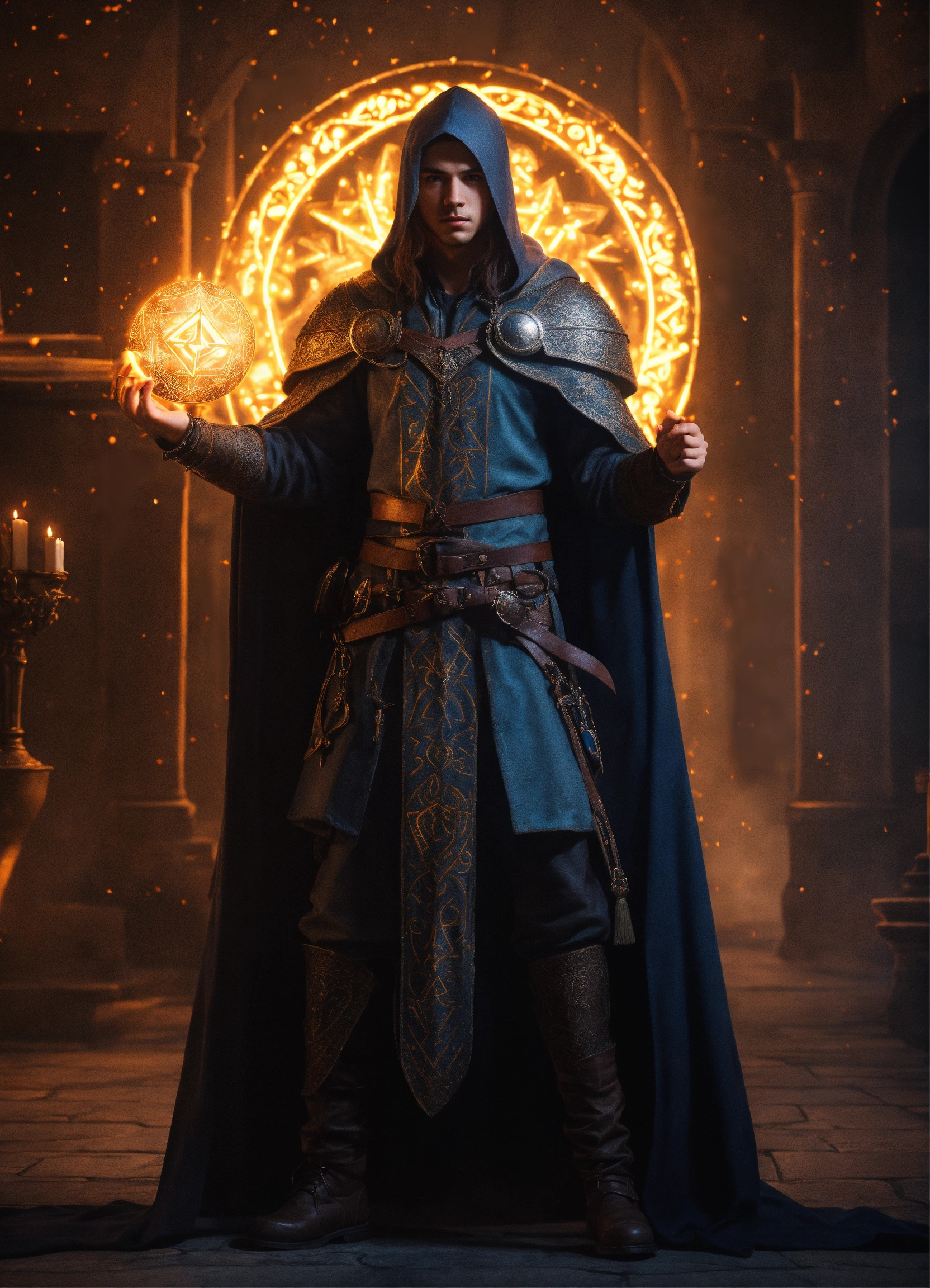 A realistic full body portrait of a medival young rune master, drowing magic rune, mighty magic, neutral background, moody, photorealistic, cinematic scene, super detailed, hyper realistic, bright lights, 8 k