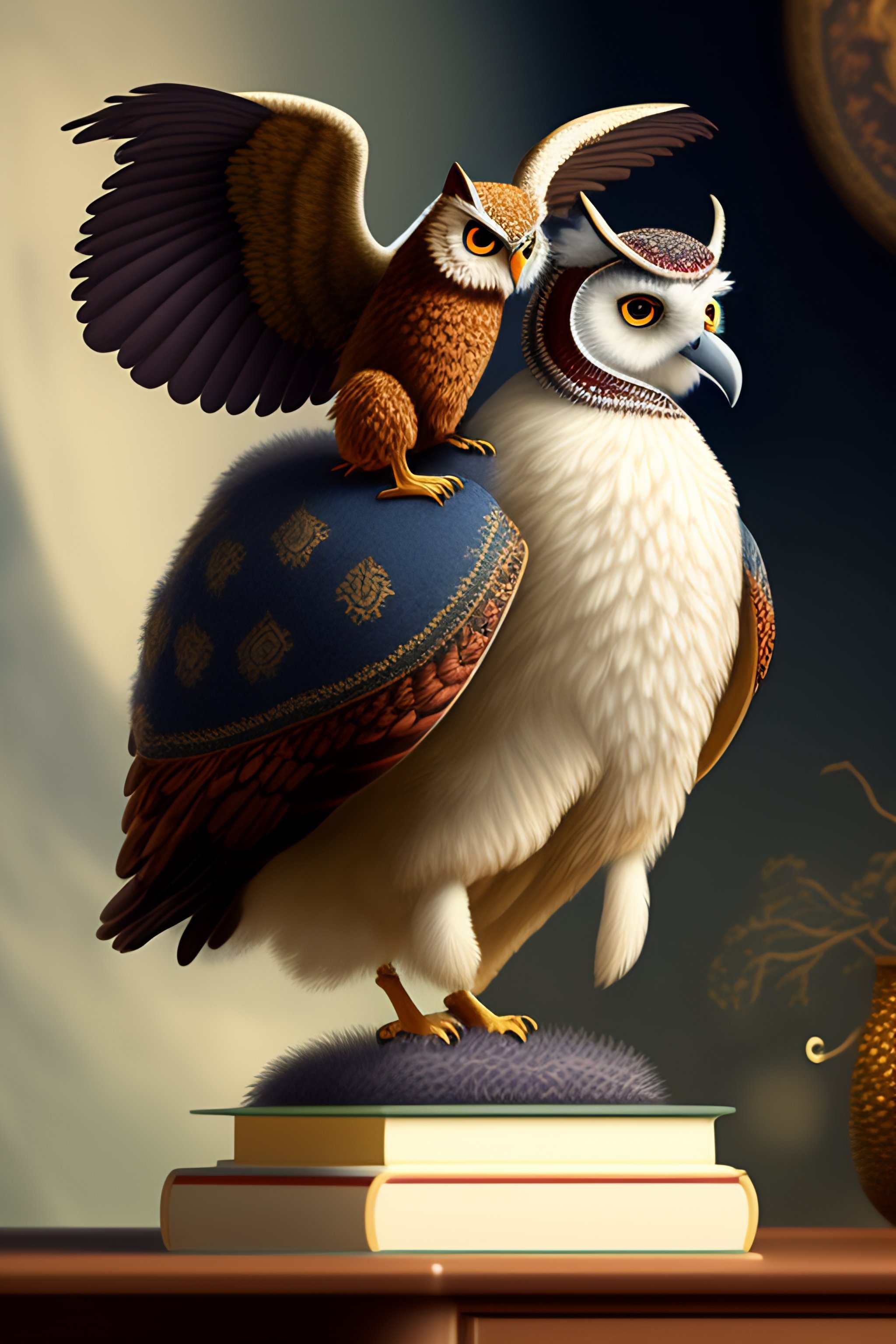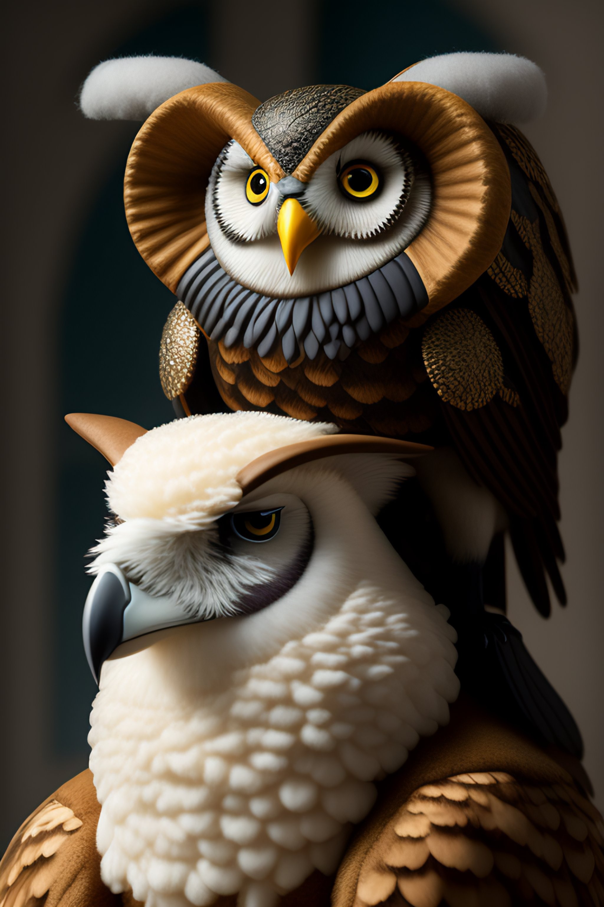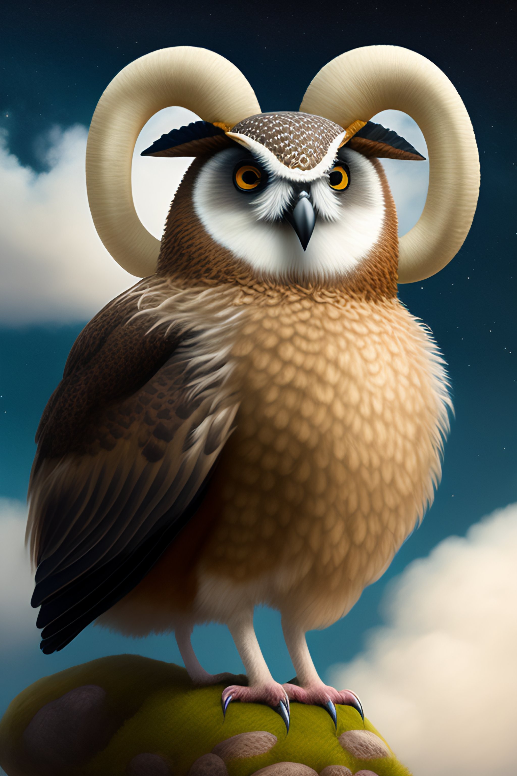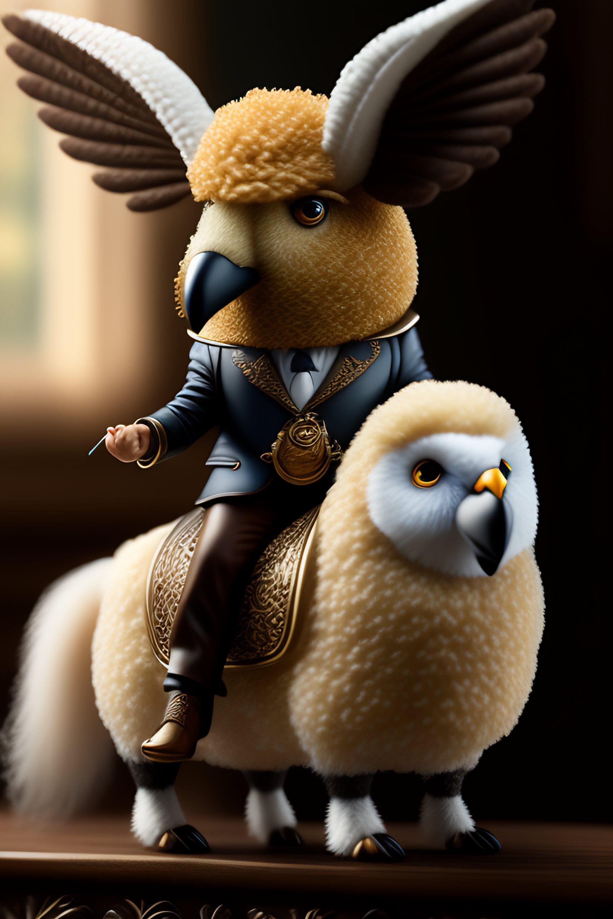 Portrait of an evil mean looking anthropomorphic sheep riding an owl, highly detailed, masterpiece quality
