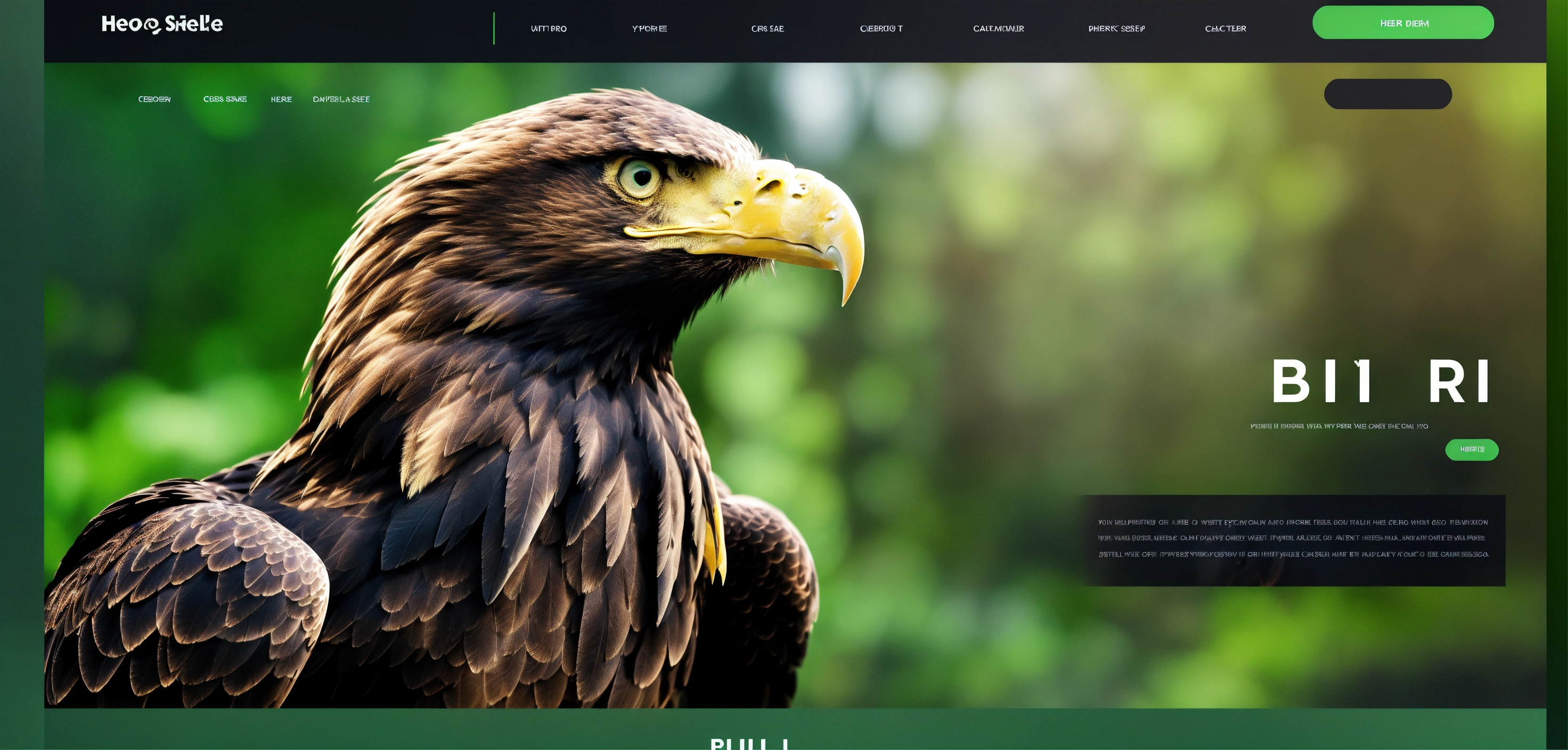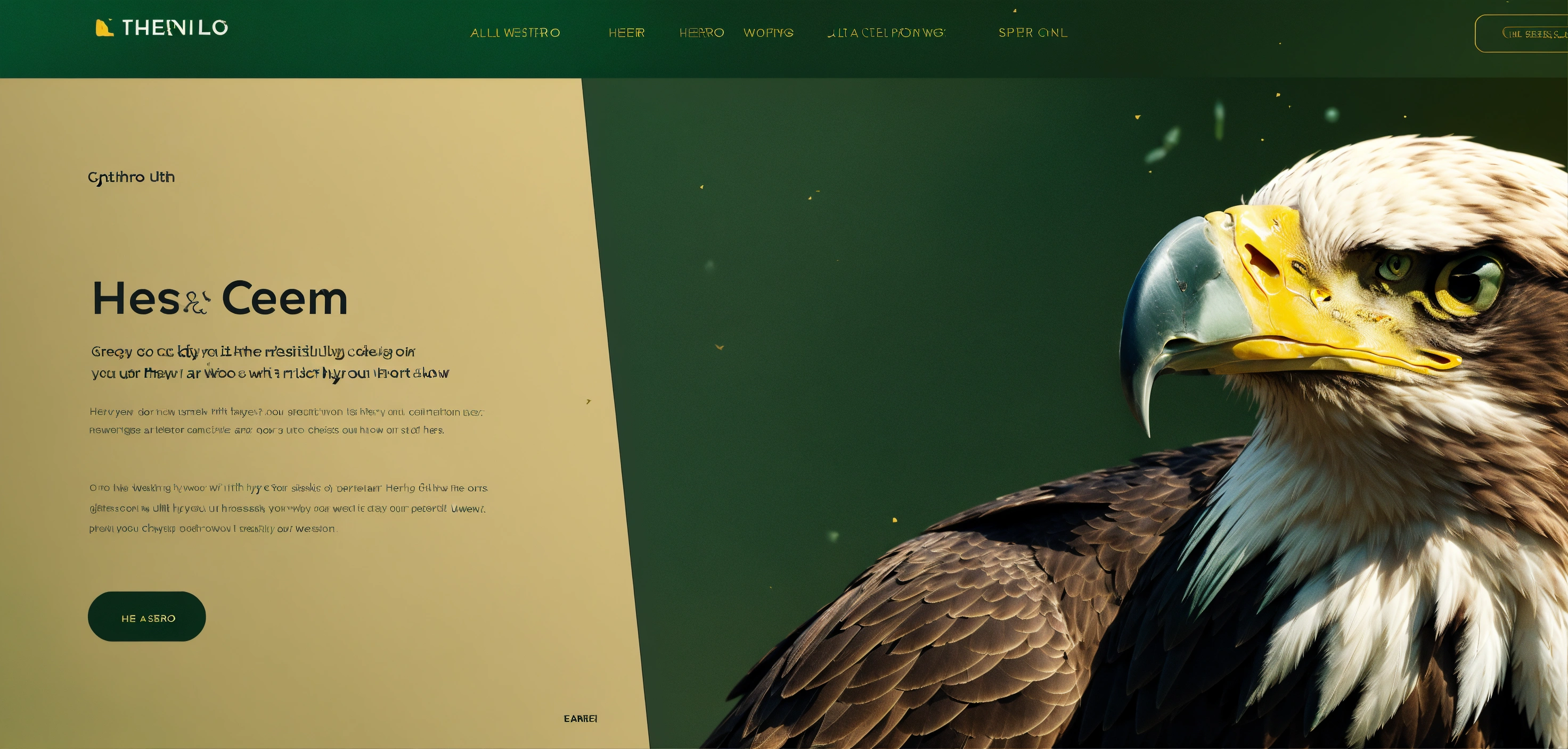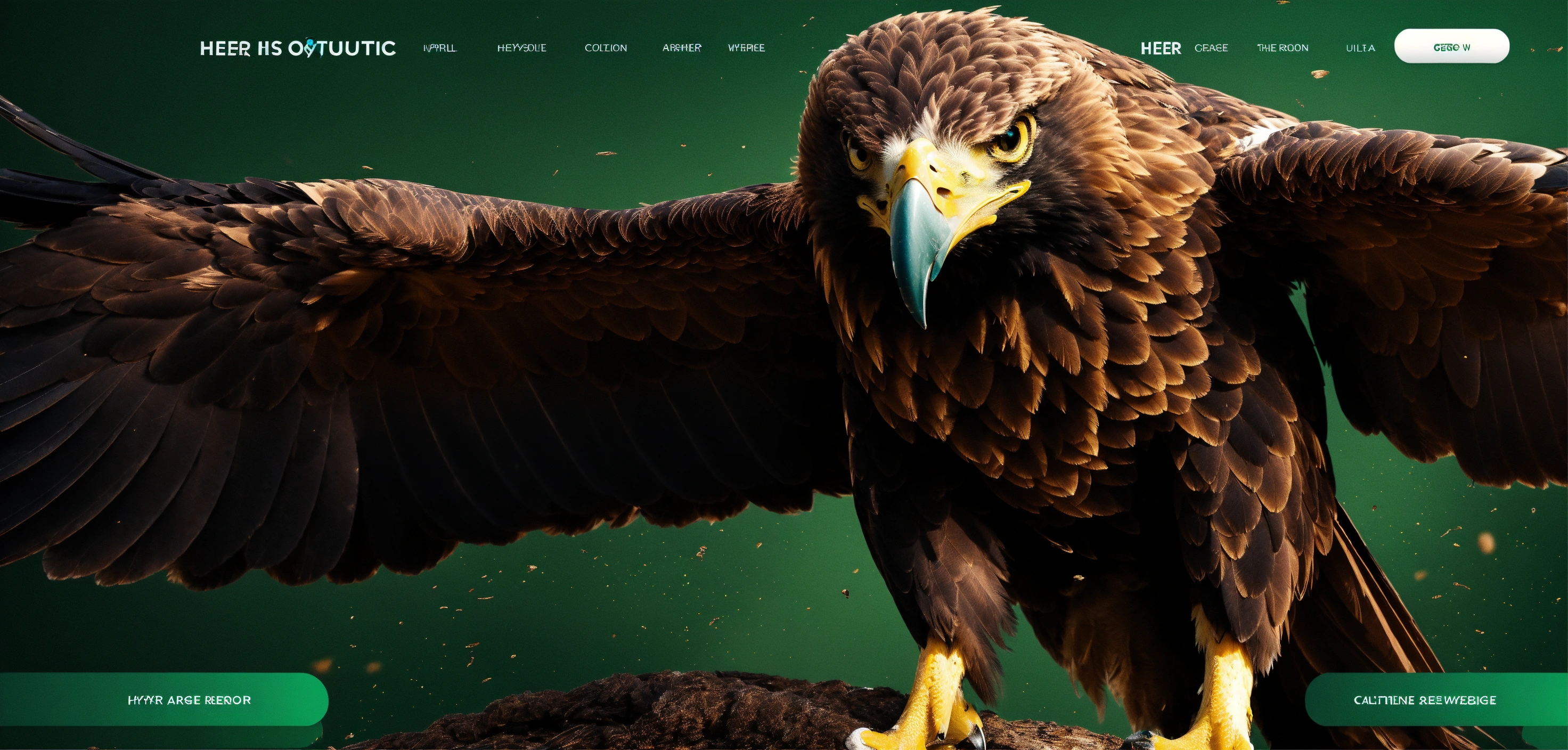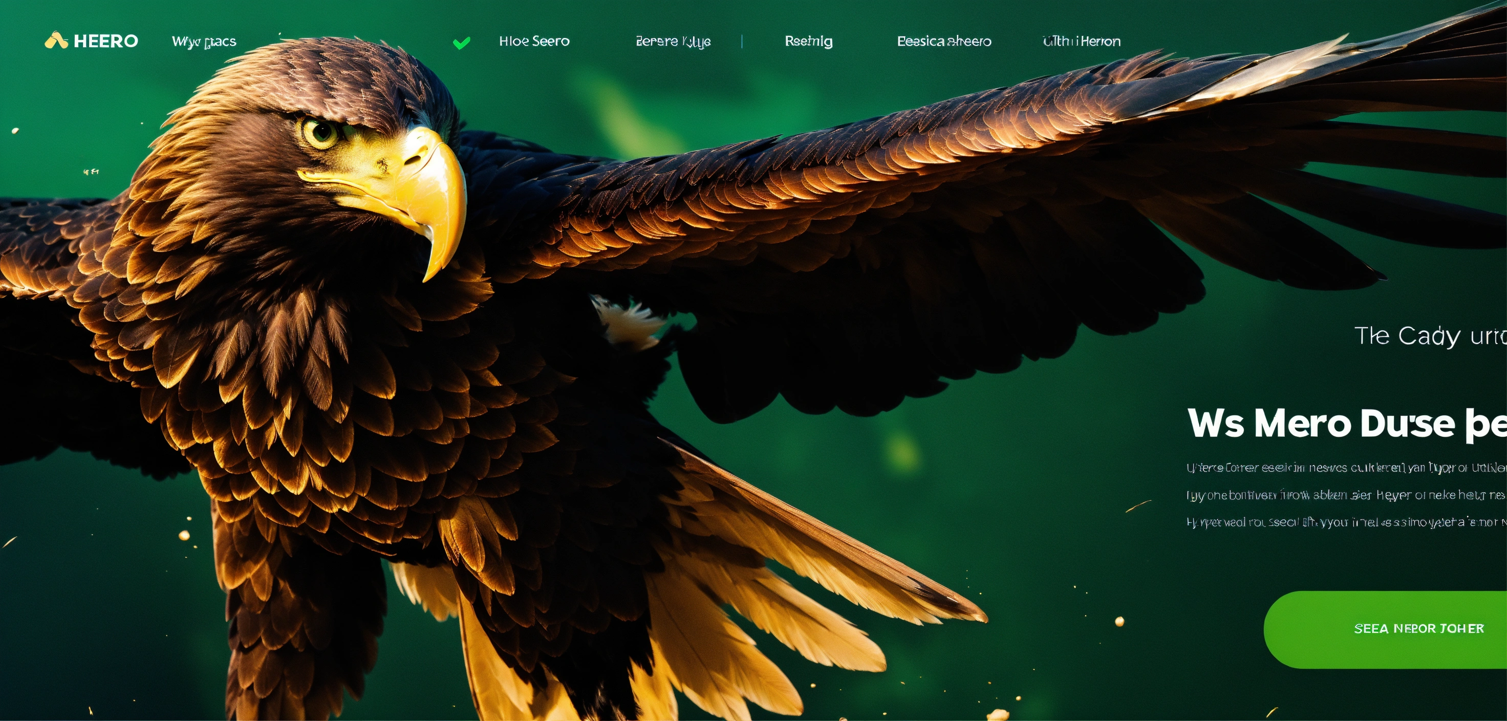 Beautiful landing page website, ui ux, hero section, hyper realistic ultra detailed eagle dark green theme