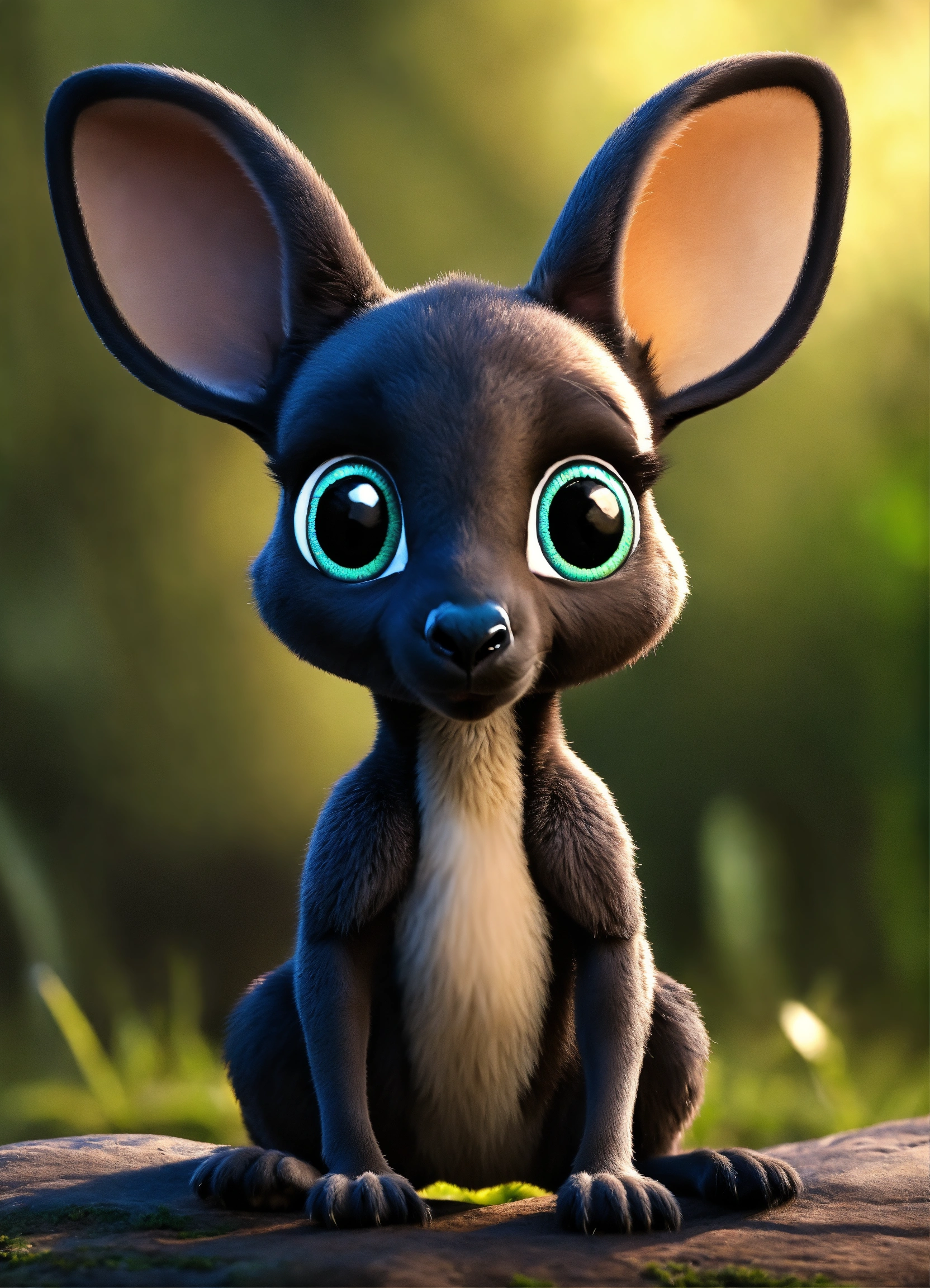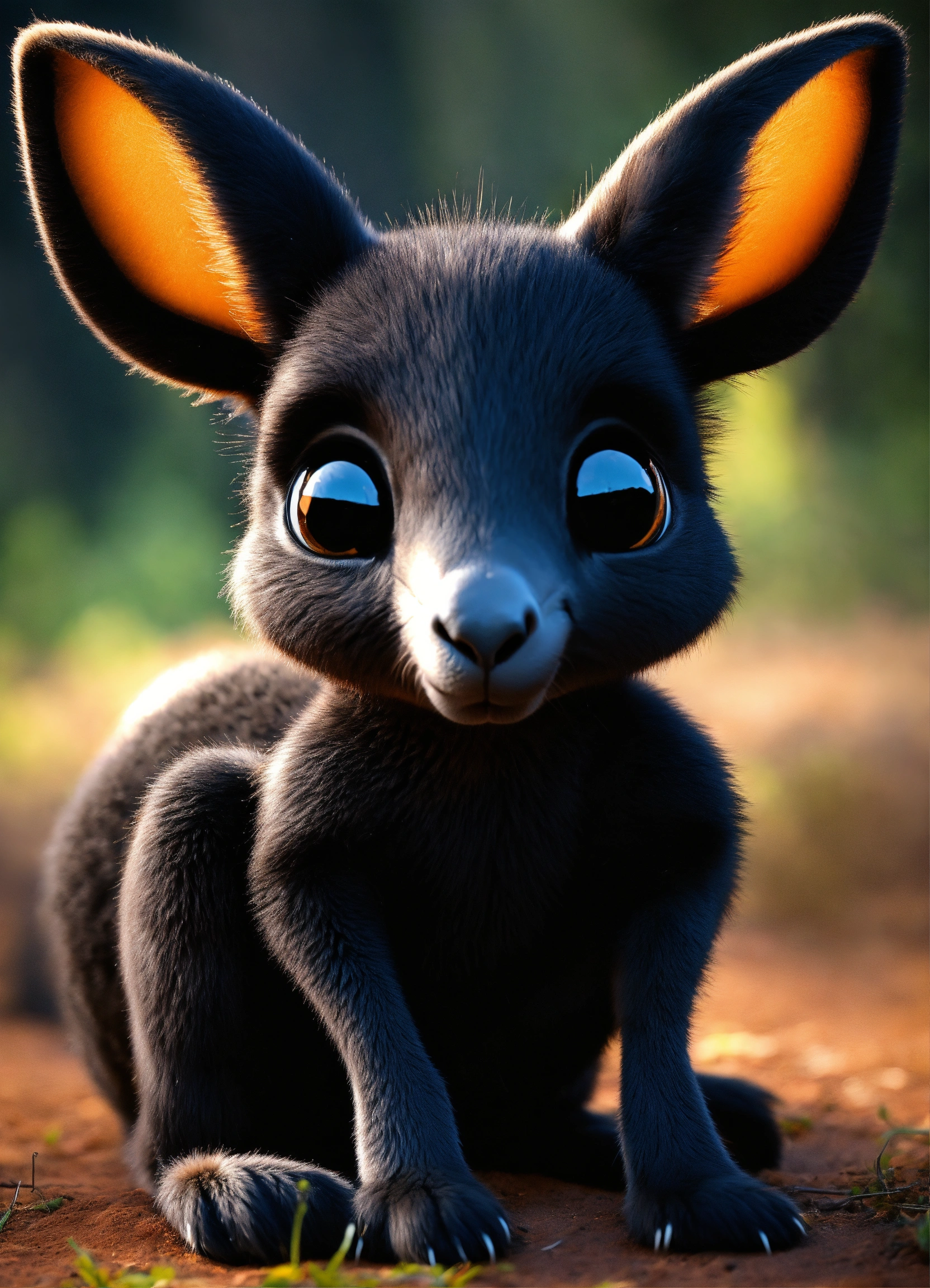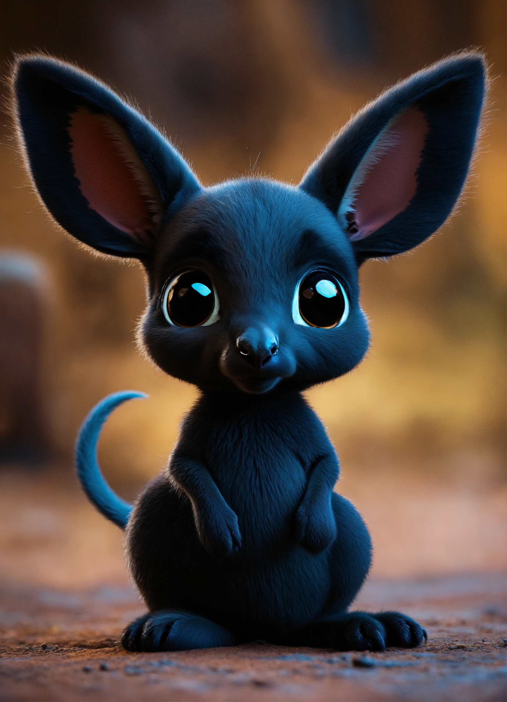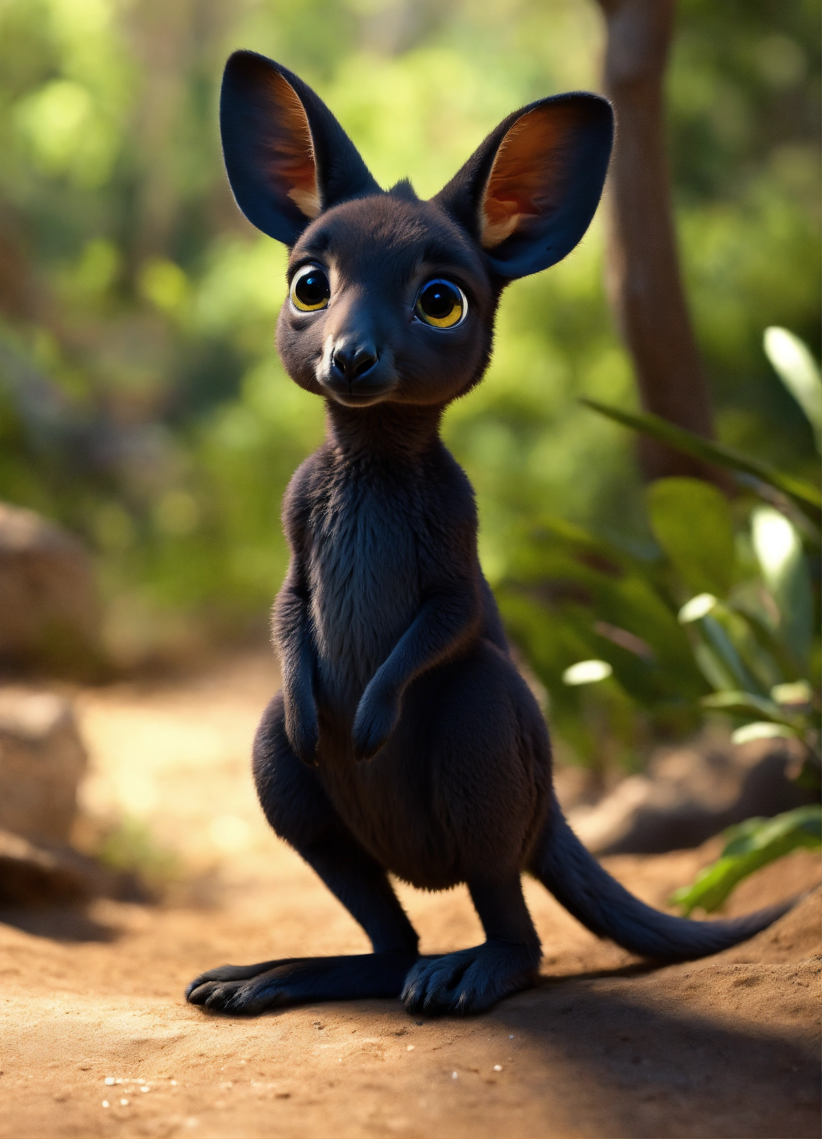 A cute all black baby kangaroo with big eyes