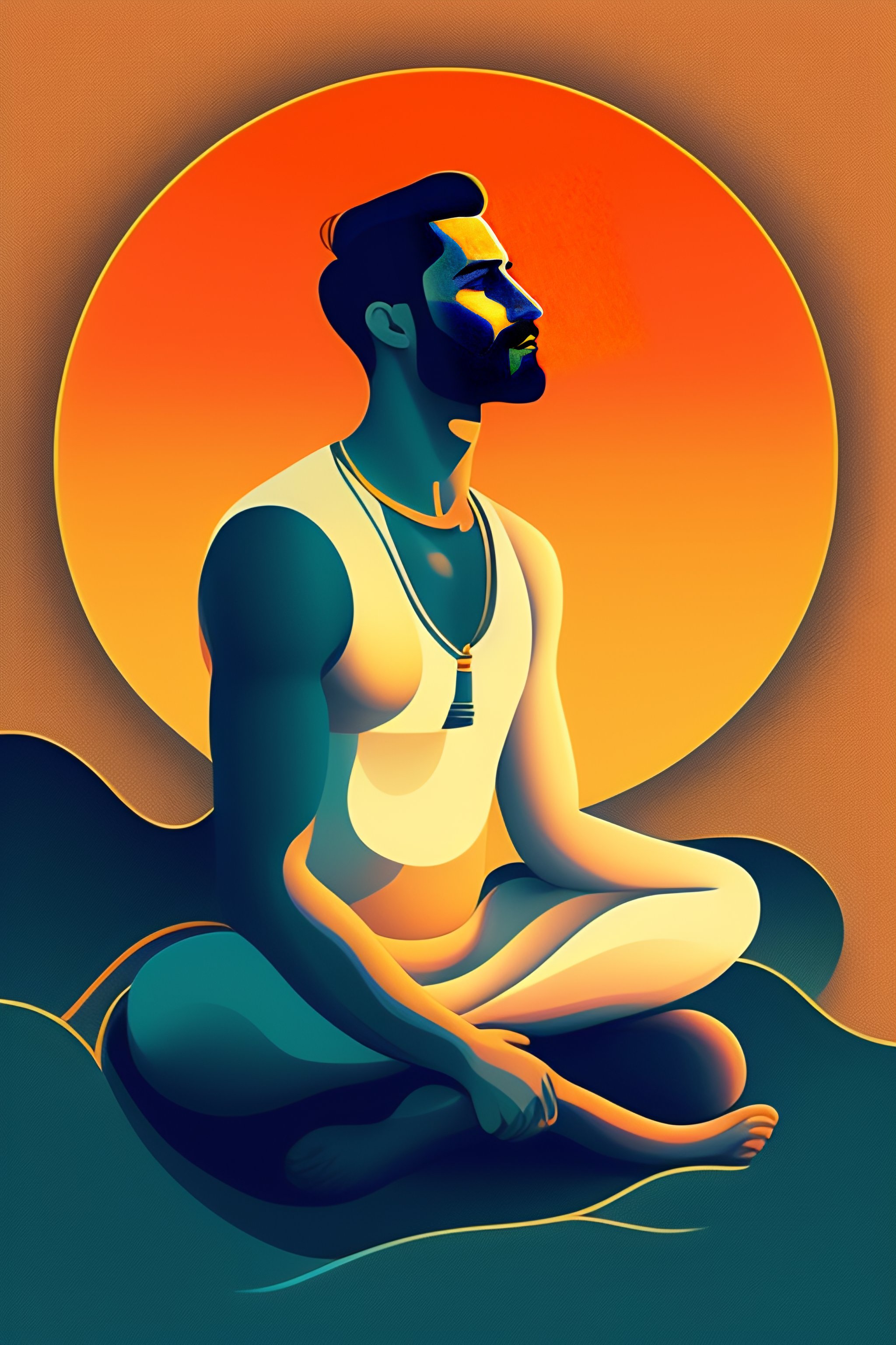 Beautiful painting of man doing pranayama, illustration, highly detailed, simple, smooth and clean vector illustration, no jagged lines, vector art, smooth, artstation