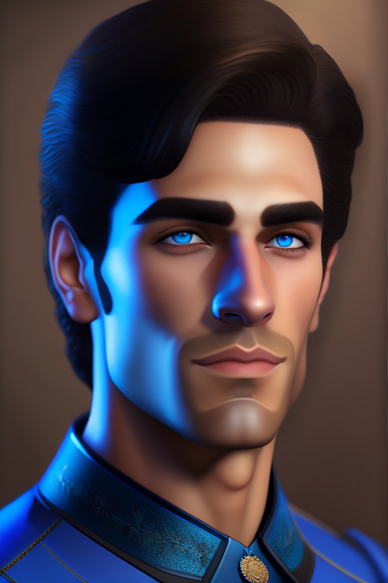dark hair and blue eyes