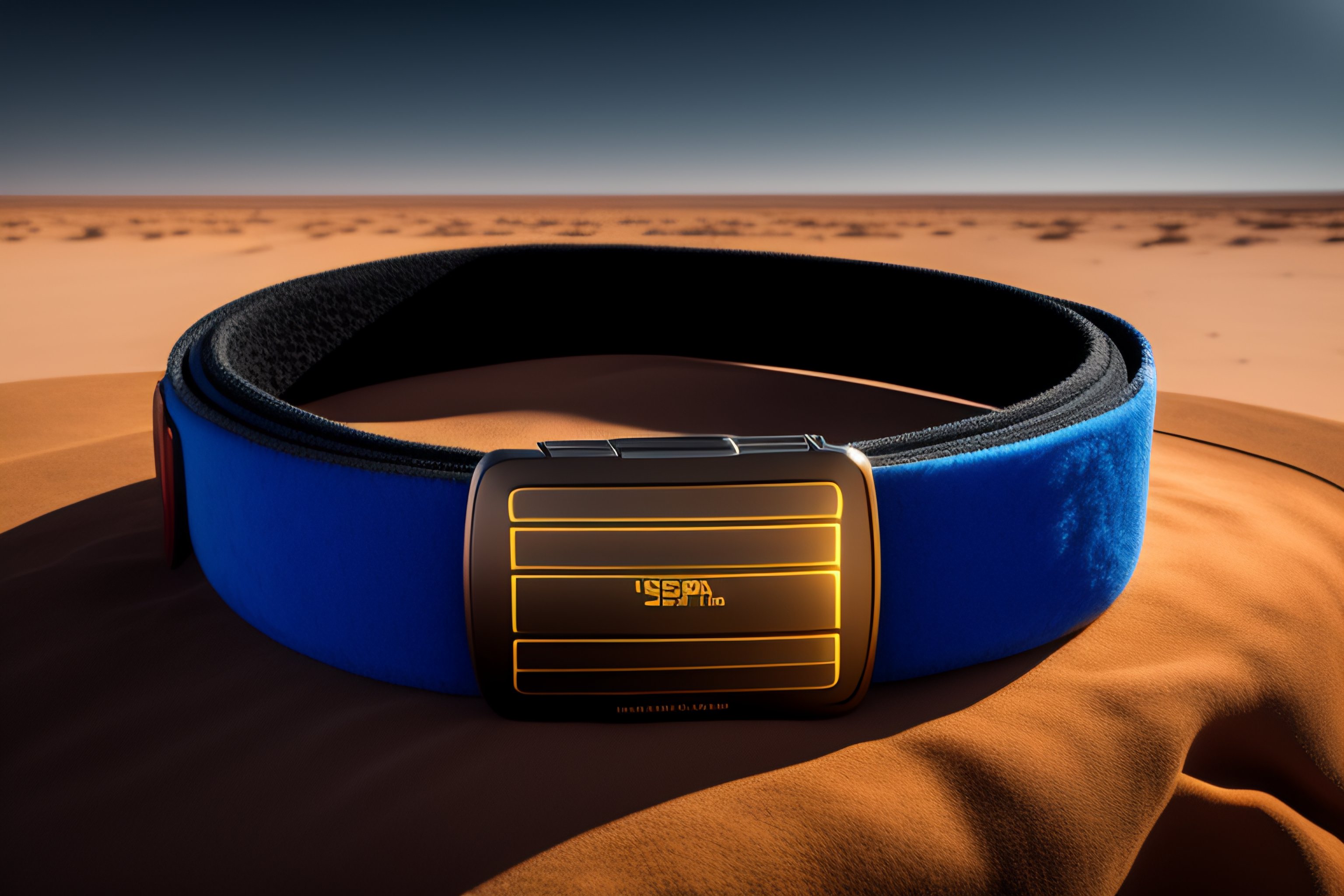 Product photography of a science fiction belt with personal force field device, a force-field generating sci-fi belt